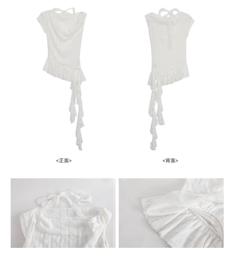 달콤한 스타일 화이트 나비 매듭 스트랩 허리 수축 슬림해 보이는 튜브탑 조끼 여성 여름 프랑스식 프릴 Chic 맨위
