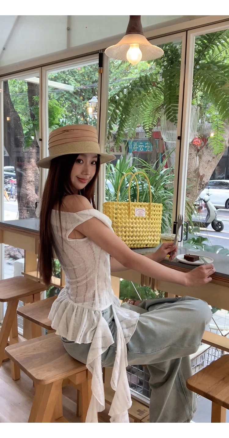 한 부서 프릴 긴팔 오픈 가디건 여성 봄 착용 가져 가라. 인사이드 가져 가라. 튜브탑 맨위 다용도 연령 감소 순수한 욕망 투피스 슈트