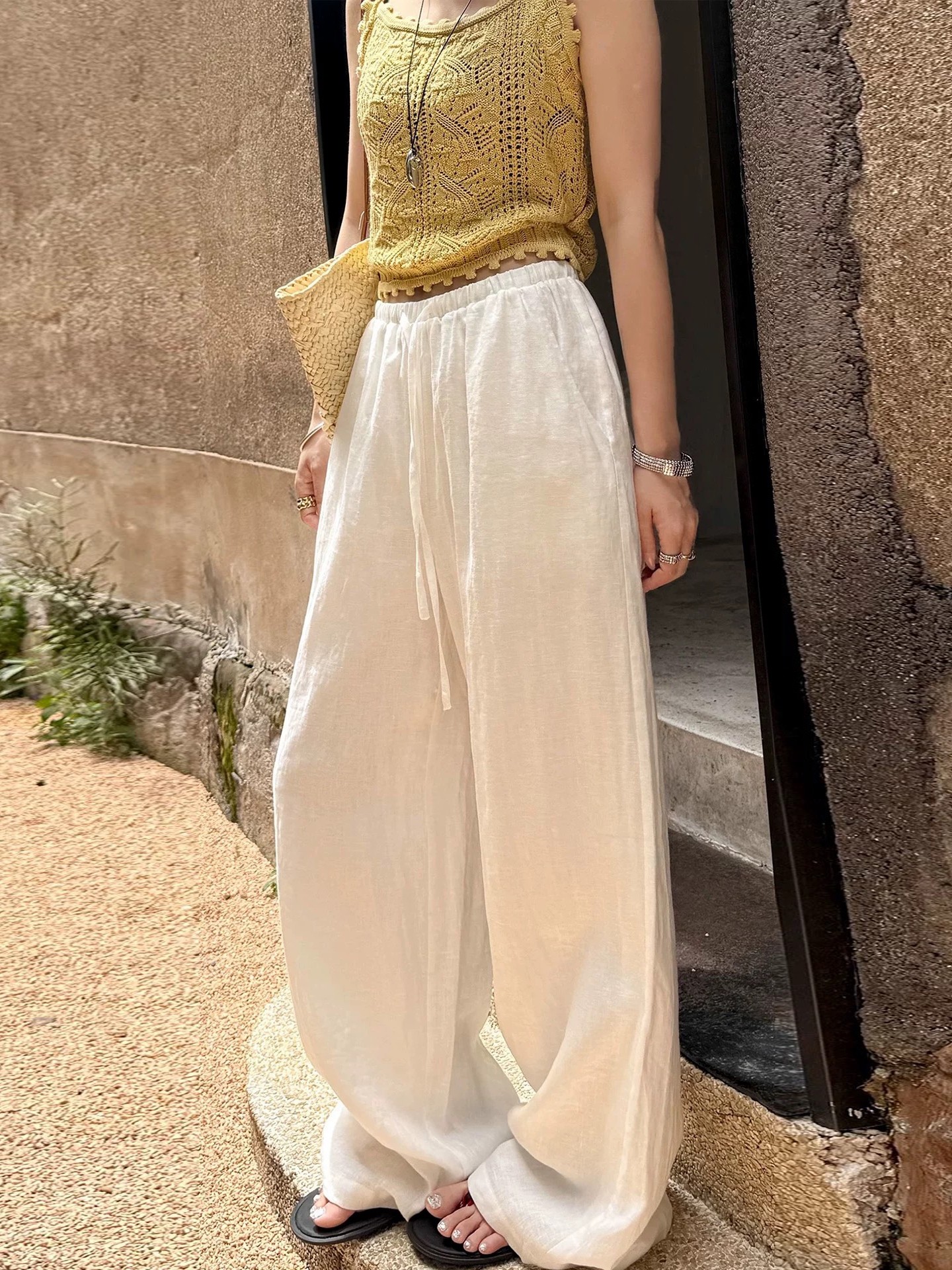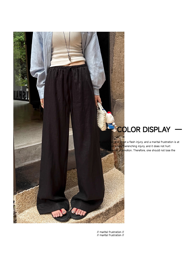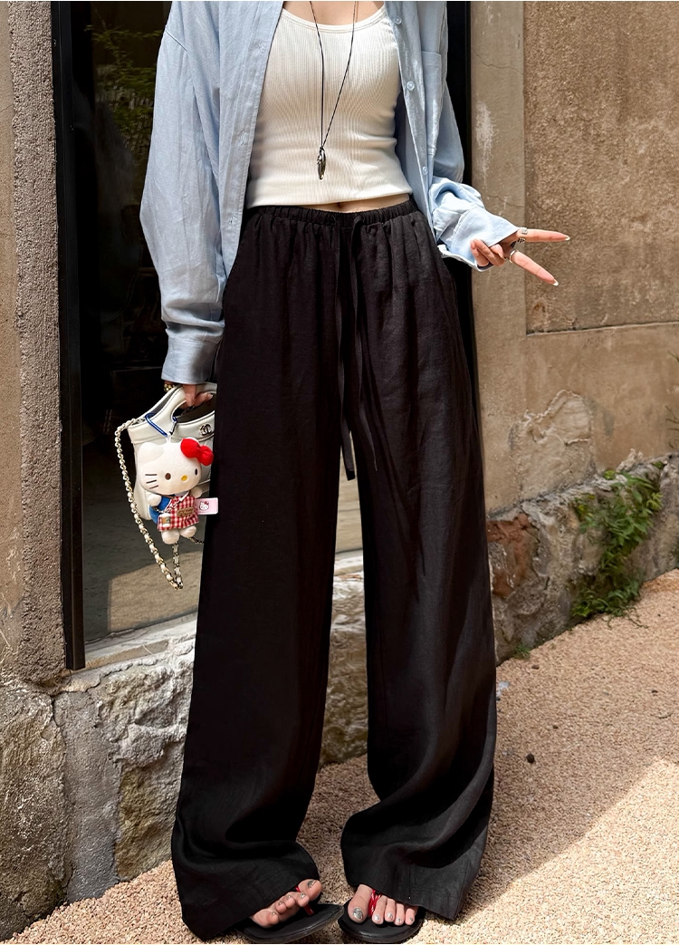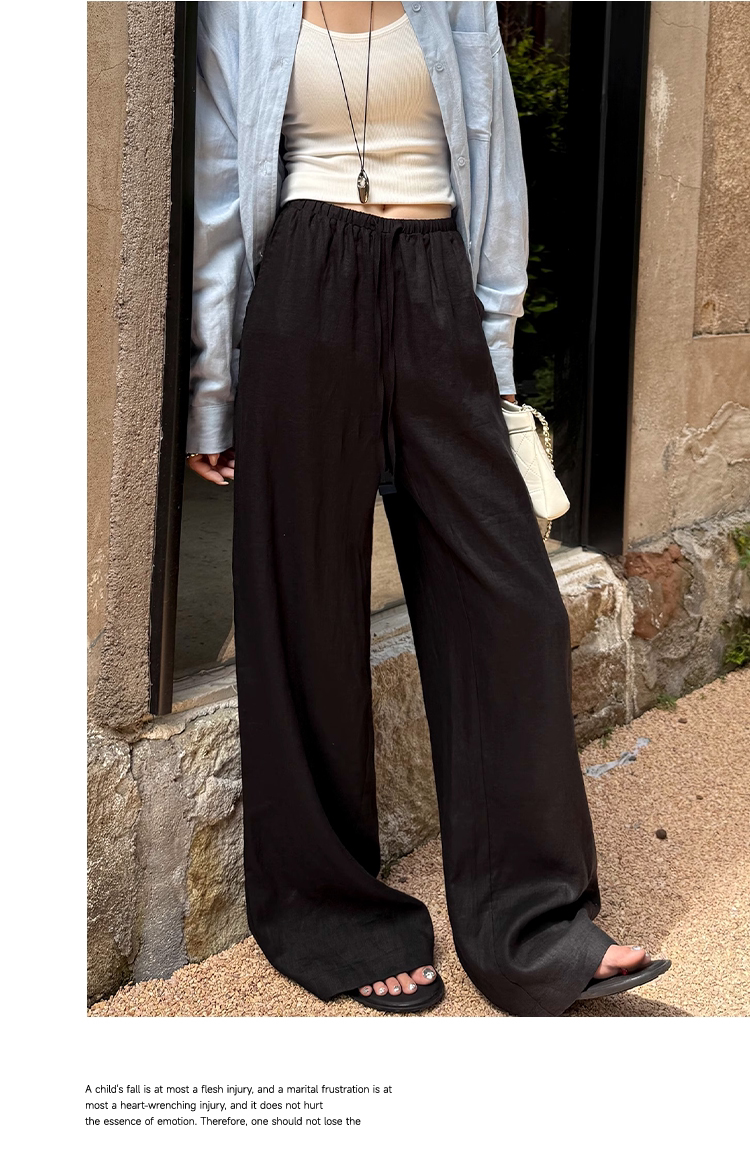 오래된 돈 바람 느긋한 마 재료 화이트 바지 여름 얇은 루즈핏 캐주얼 면 린넨 리 아마 센스 얼음 실크 와이드 레그 팬츠