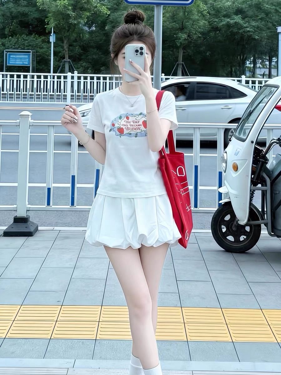화이트 반팔 티셔츠 여성 여름 만화 프린트 몸매 가꾸기 슬림해 보이는 작은 대중 디자인 센스 긍정적 인 어깨 의류 트렌디