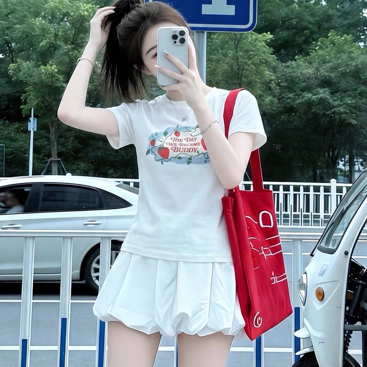 화이트 만화 프린트 반팔 티셔츠 여성 짧은 디자인 센스 아름다운 자이언트 잘 생긴 ~ 중 작은 맨위