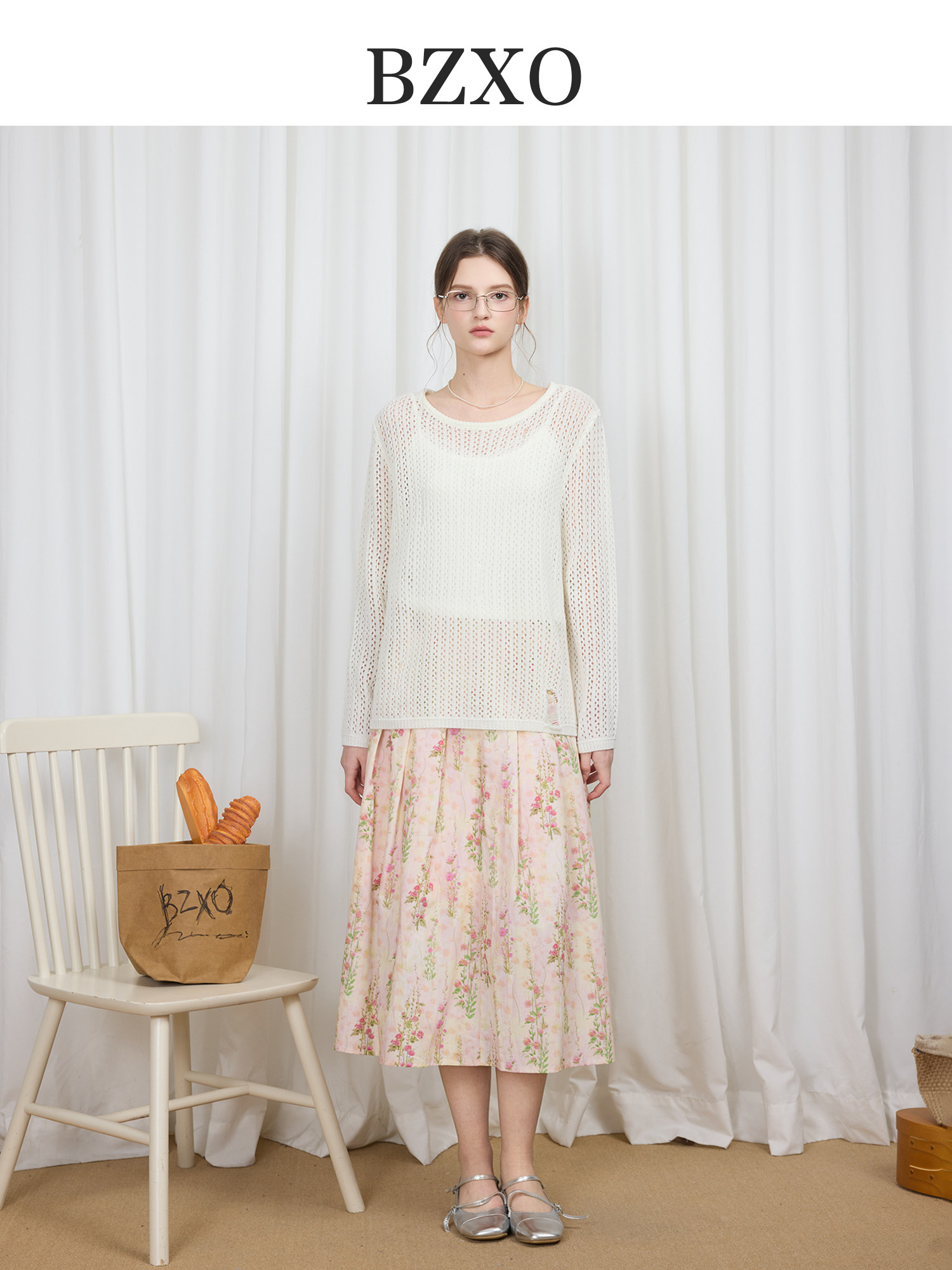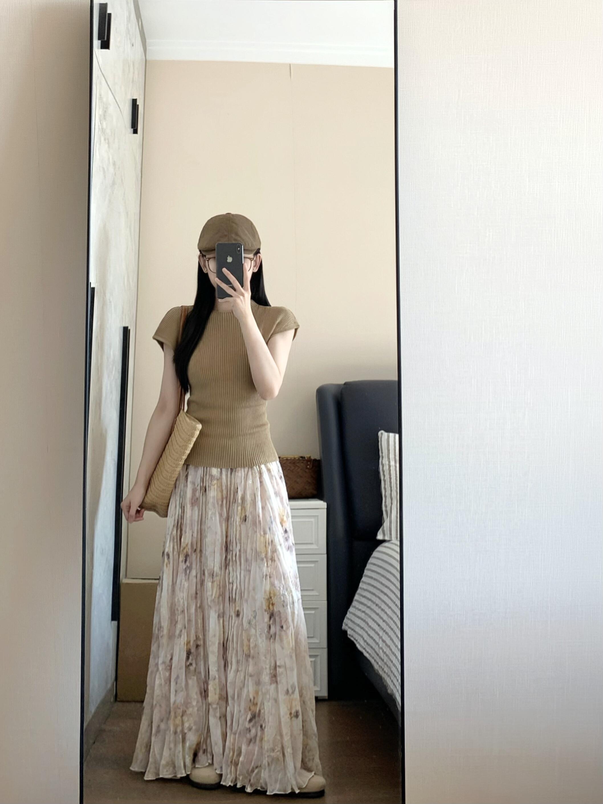 정원 실루엣 플리츠 꽃무늬 반신 스커트 여성 여름 디자인 센스 플리츠 스커트