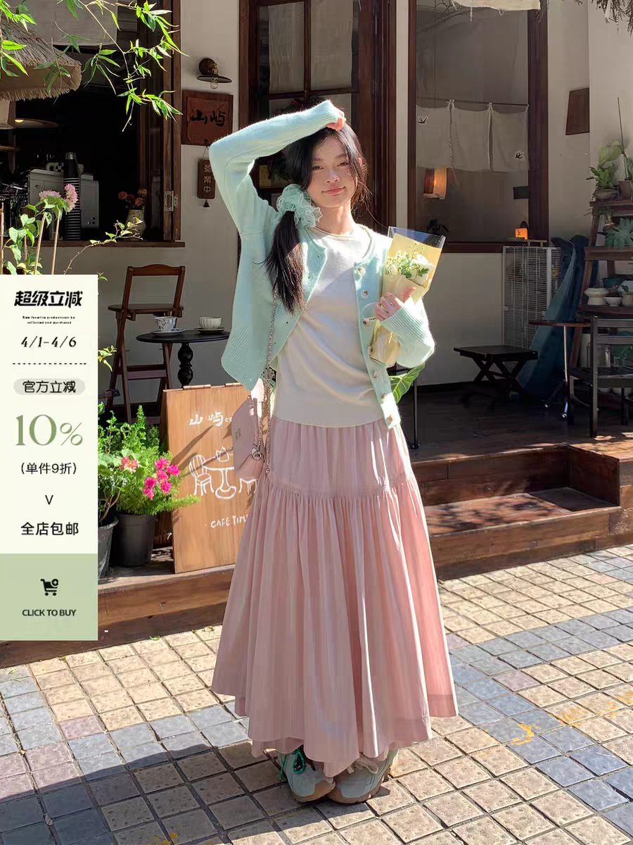 봄 예술 건강 밝은 착용 가져 가라. 이른 봄 아름다운 세트 여성 봄 작은 키 반신 스커트 2026 슈퍼 화재 전체 집합