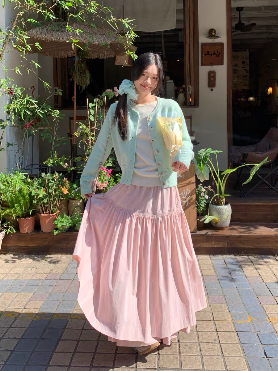 박하 녹색 스웨터 오픈 가디건 레이스 케이크 슬립 여성 드레스 봄 여름 새로운