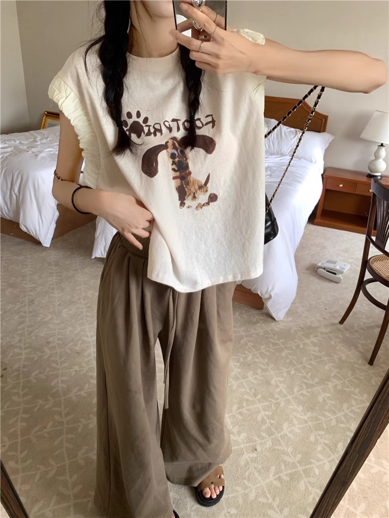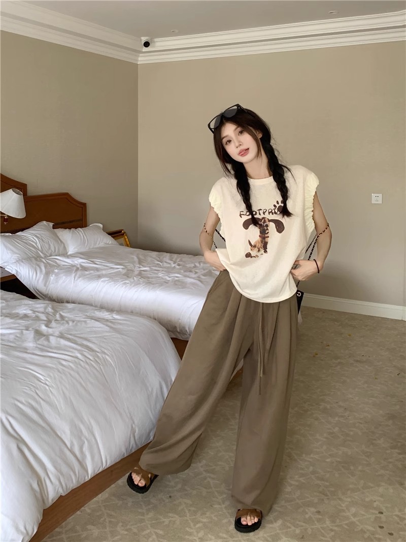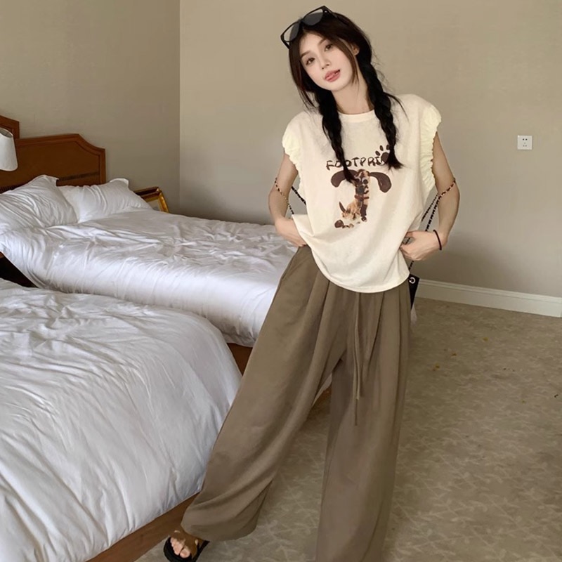 섬 여행 착용 가져 가라. 느슨함 센스 여름 와이드 레그 팬츠 세트 여성 가정 서비스 투피스 세트 패션 품격 휴가 바람