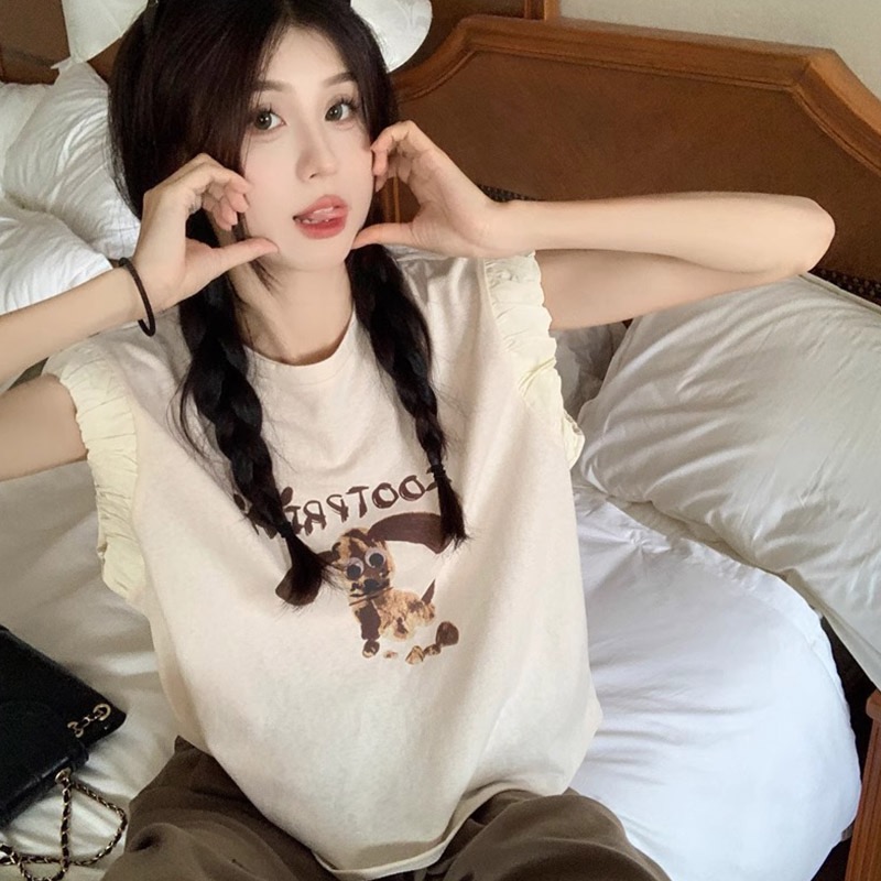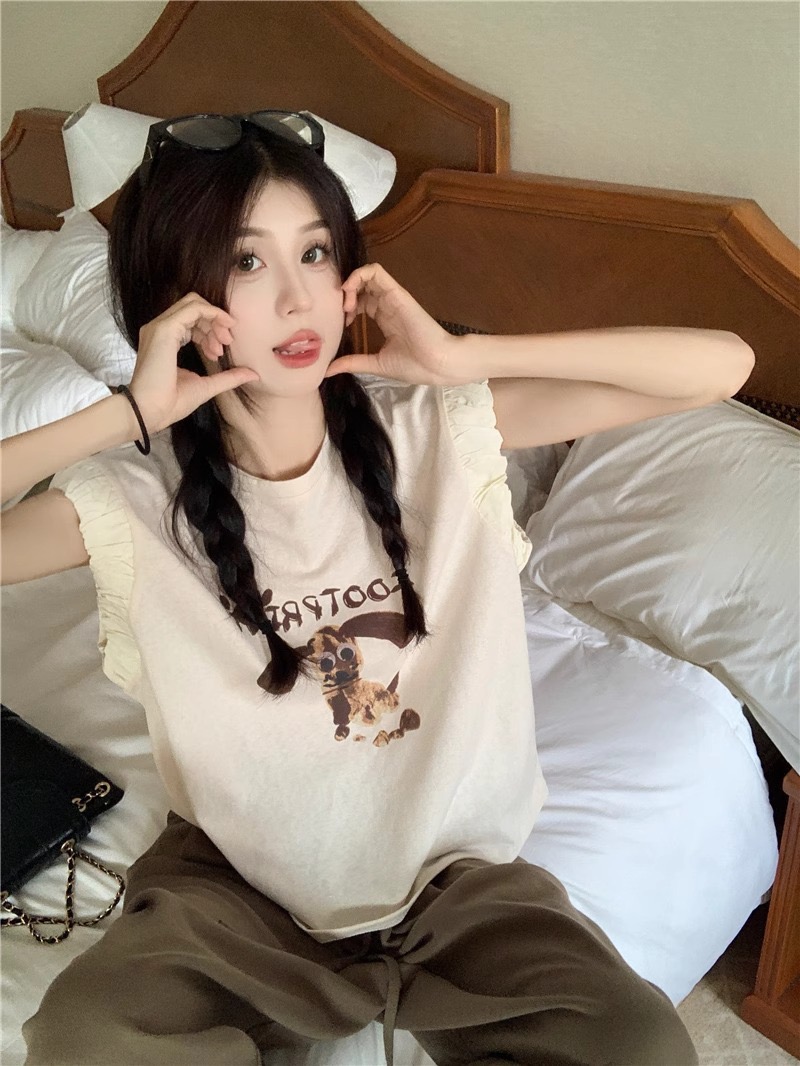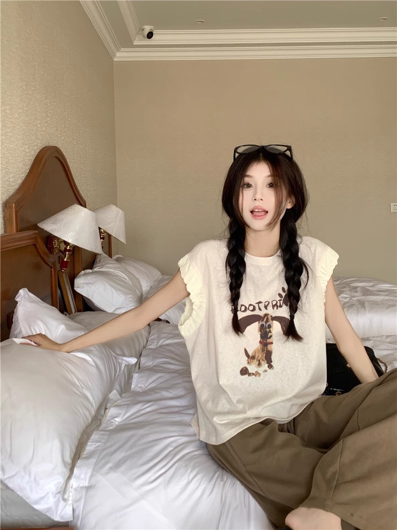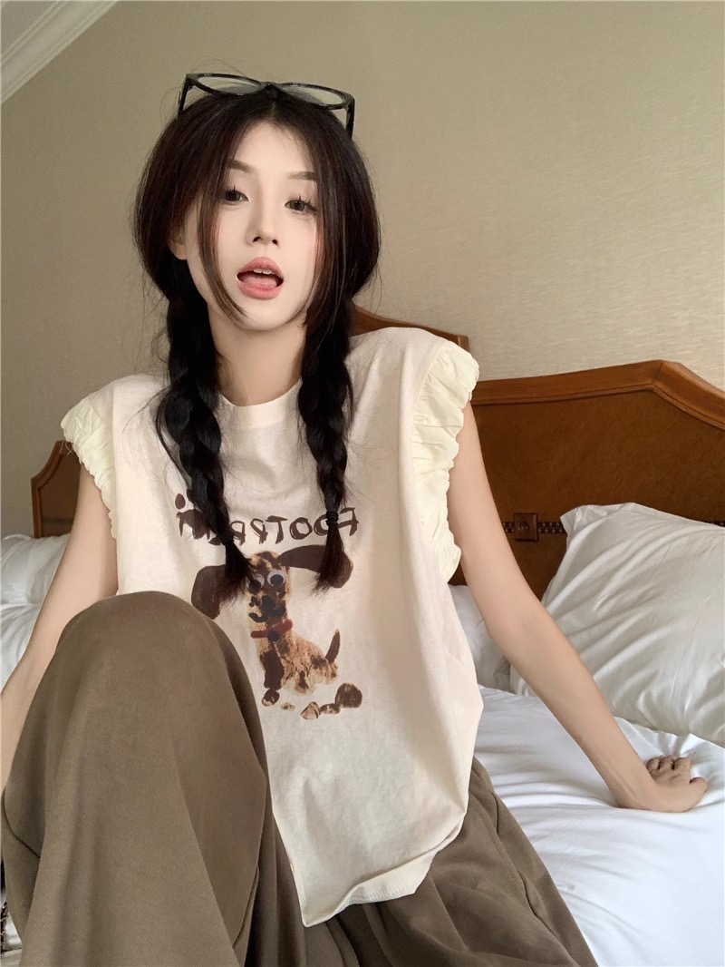 패션 디자인 프릴 단색 민소매 조끼 여성 여름 2025 새로운 면 센스 루즈핏 슬림해 보이는 슬립 맨위