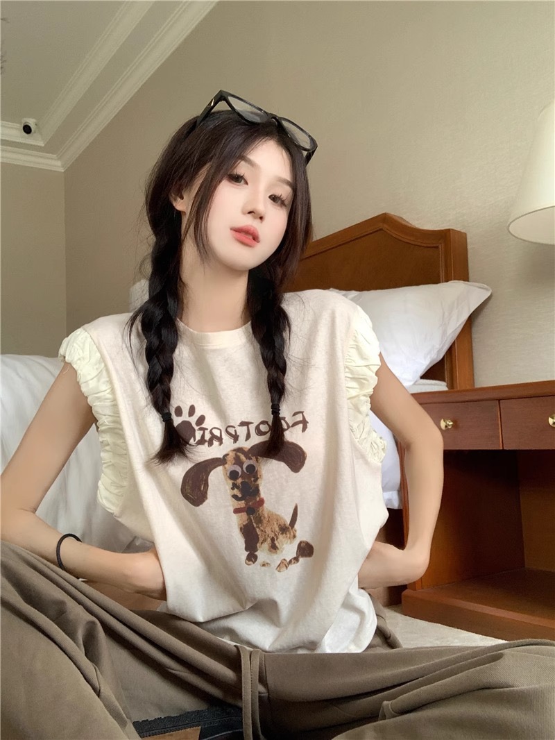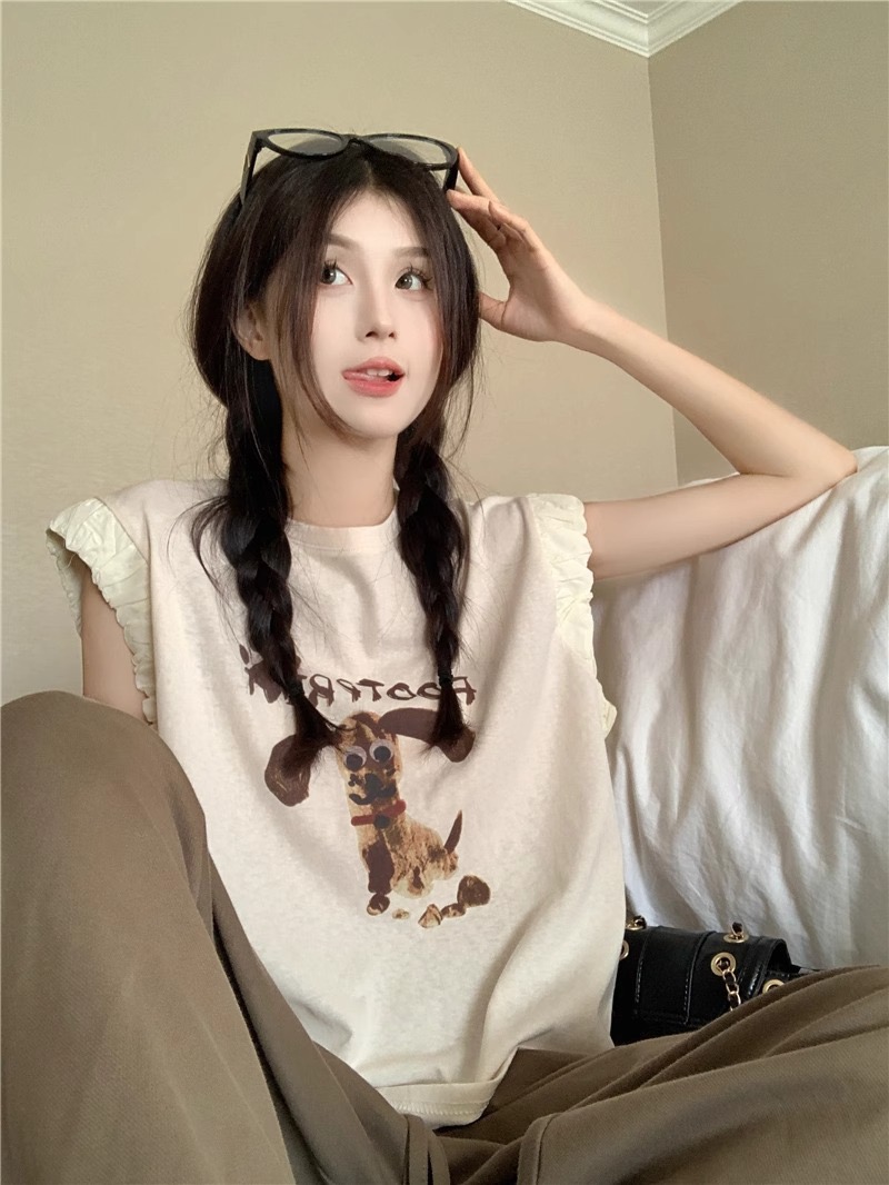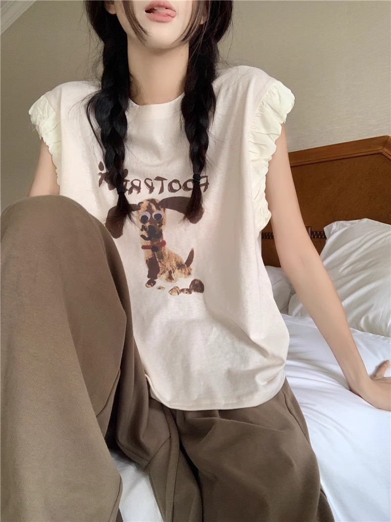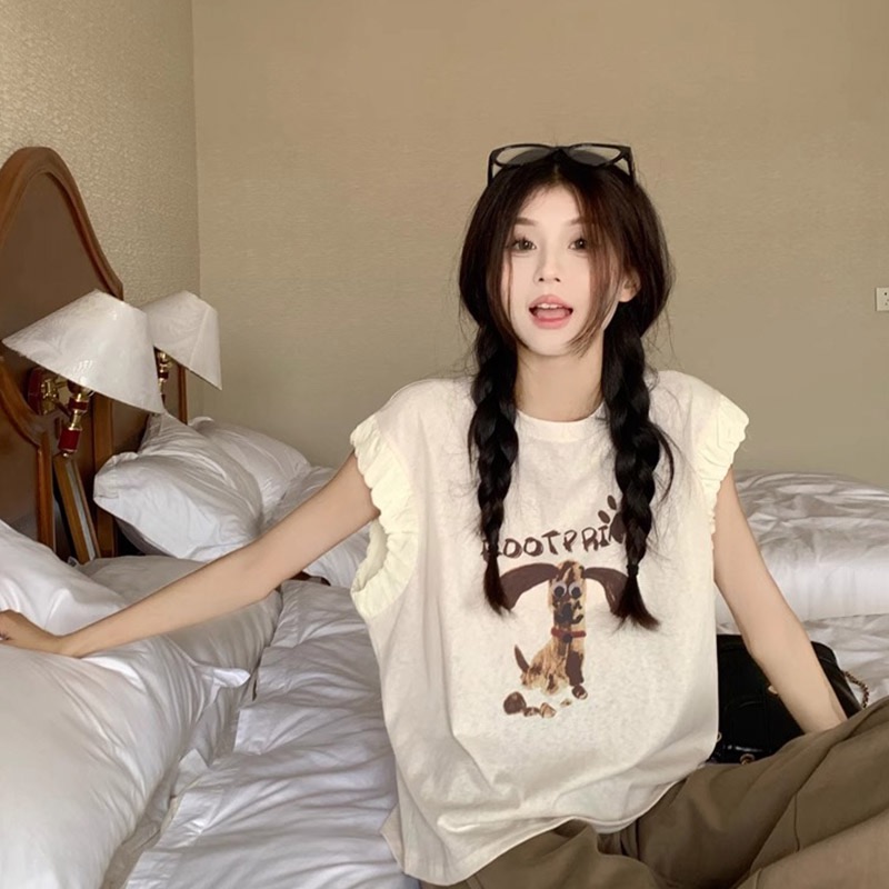 패션 디자인 프릴 단색 민소매 조끼 여성 여름 2025 새로운 면 센스 루즈핏 슬림해 보이는 슬립 맨위