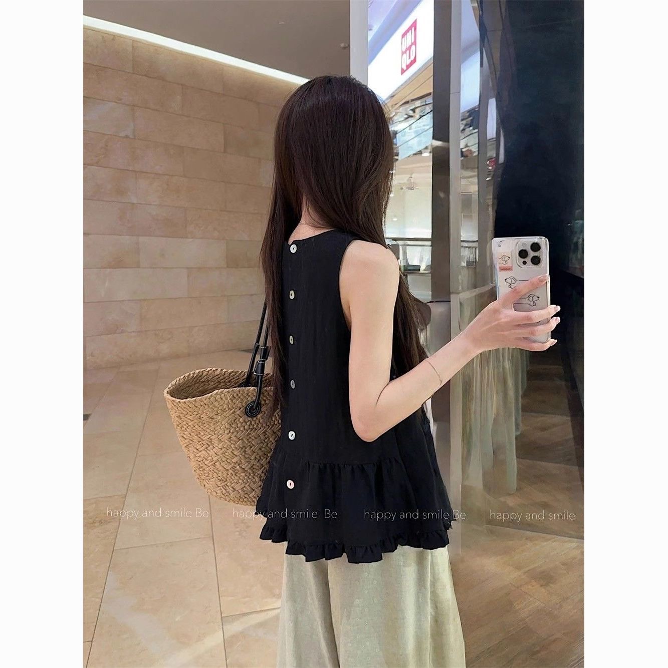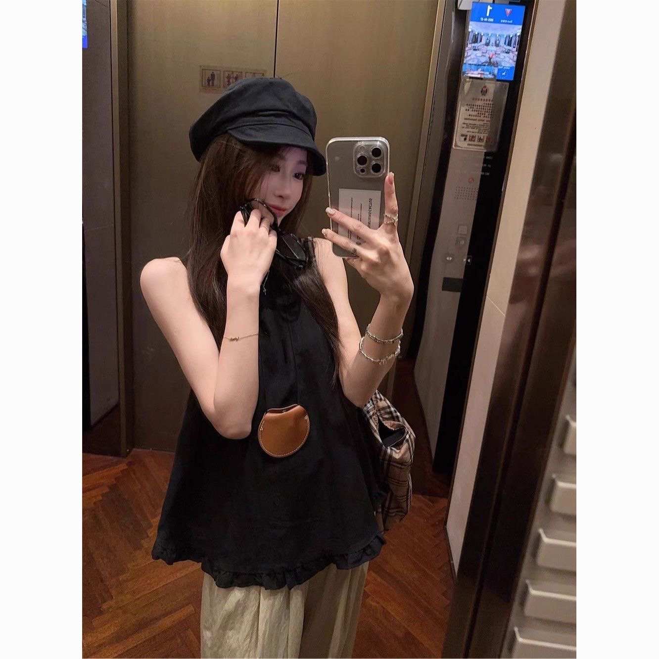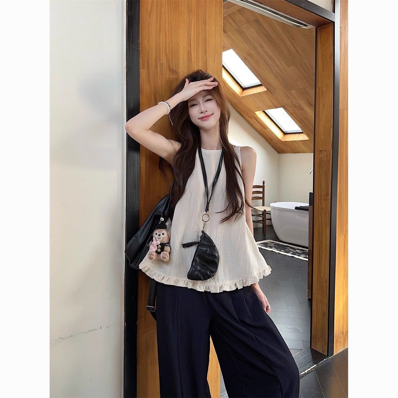 패션 디자인 프릴 단색 민소매 조끼 여성 여름 2025 새로운 면 센스 루즈핏 슬림해 보이는 슬립 맨위