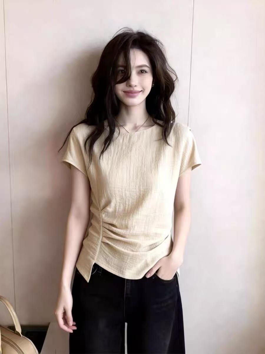 프랑스식 프릴 화이트 반팔 여성 셔츠 프릴 밑단 허리 수축 부드러운 바람 출퇴근 다용도 슬림해 보이는 맨위
