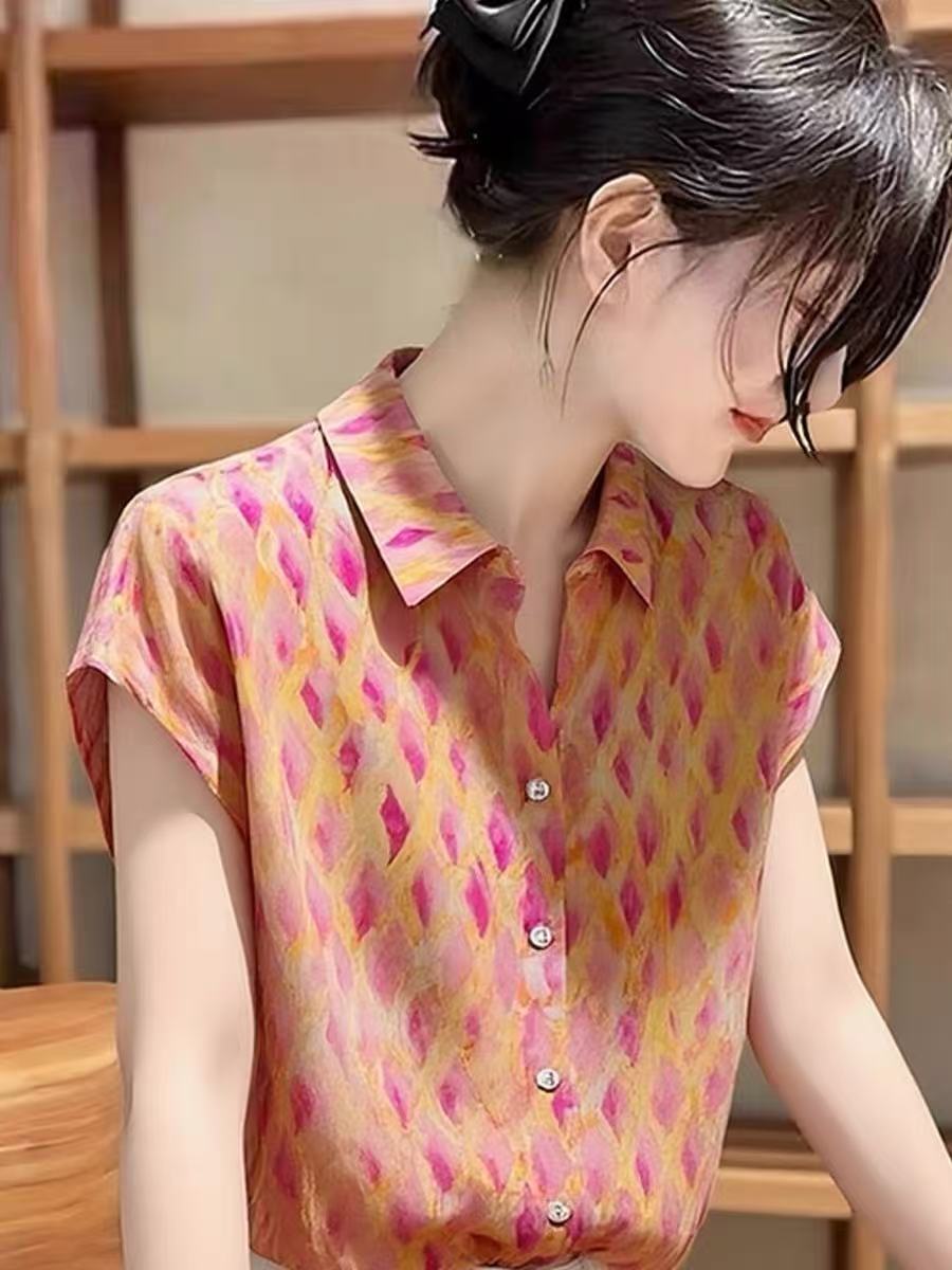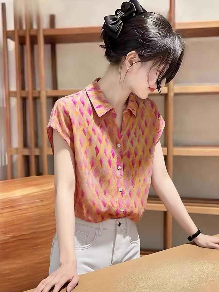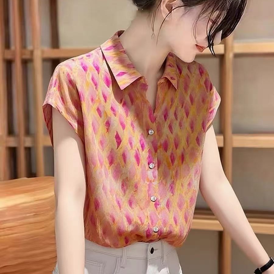 패션 고급 센스 프린트 폴로 칼라 반팔 티셔츠 여성 2026 여름 새로운 루즈핏 Chic 연령 감소 다용도 맨위
