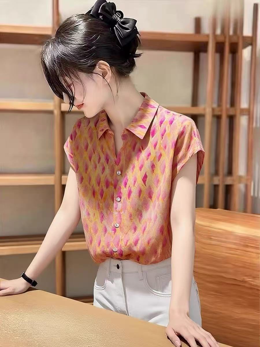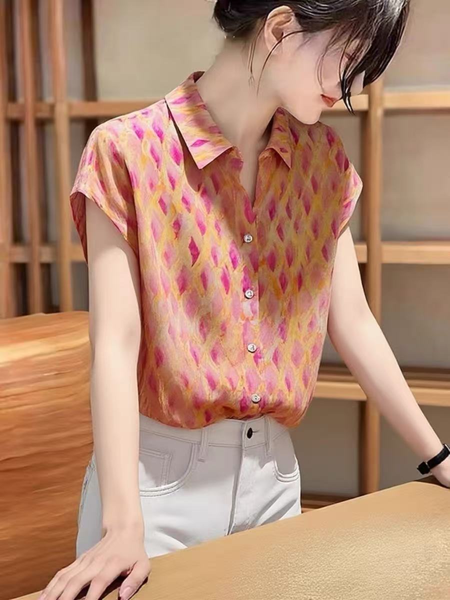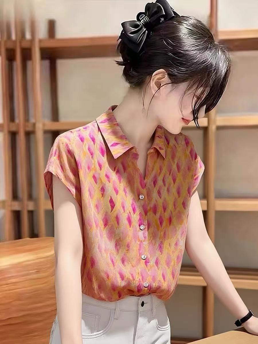 패션 고급 센스 프린트 폴로 칼라 반팔 티셔츠 여성 2026 여름 새로운 루즈핏 Chic 연령 감소 다용도 맨위