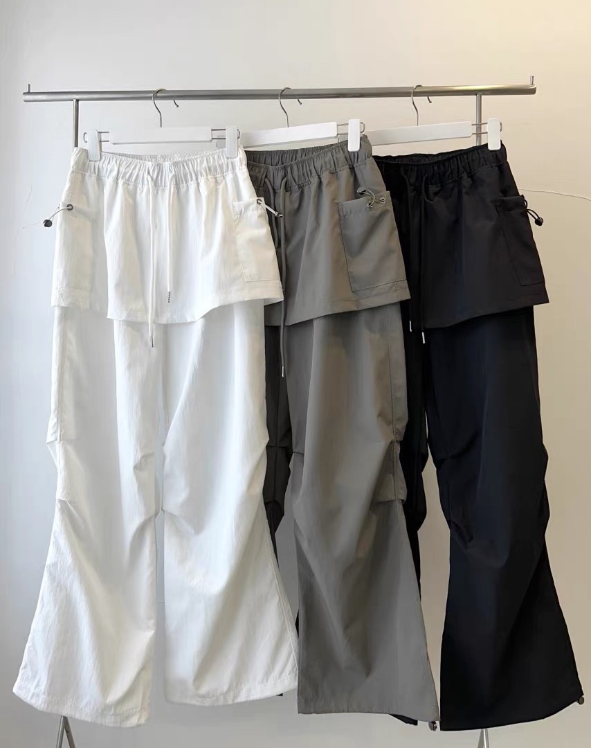 2026 새로운 하이웨이스트 페이크 레이어드 캐주얼 와이드 레그 팬츠 아메리칸 운동 바지 치마바지 디자인 센스 워크웨어 팬츠