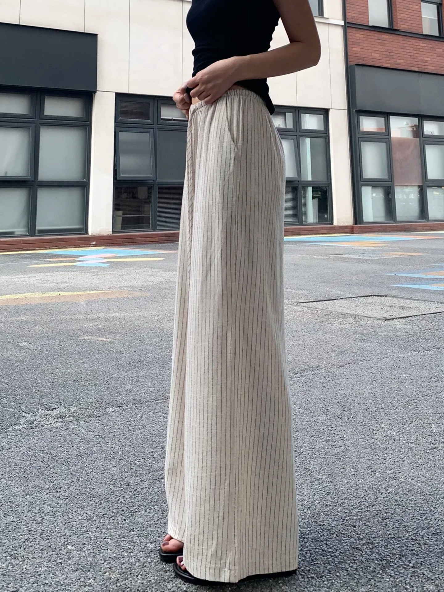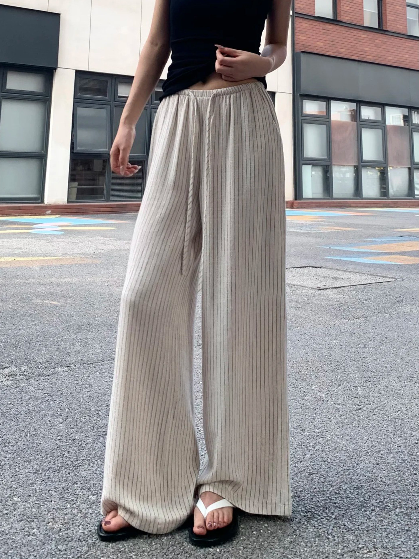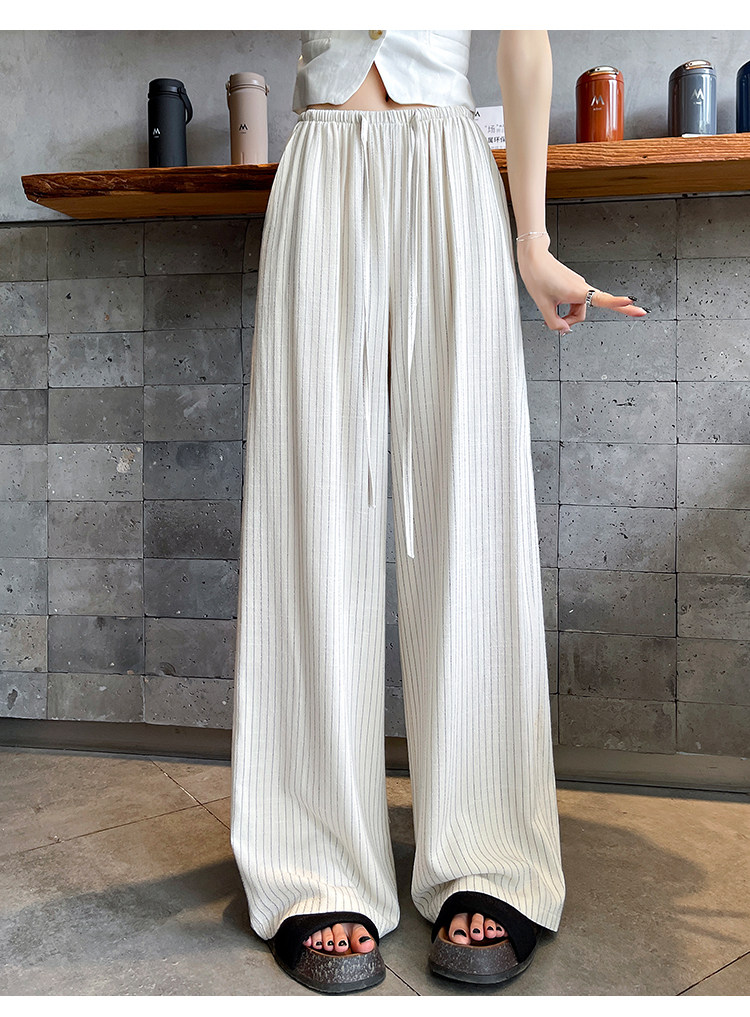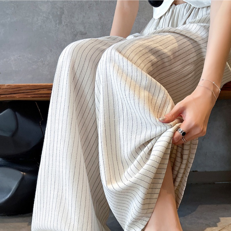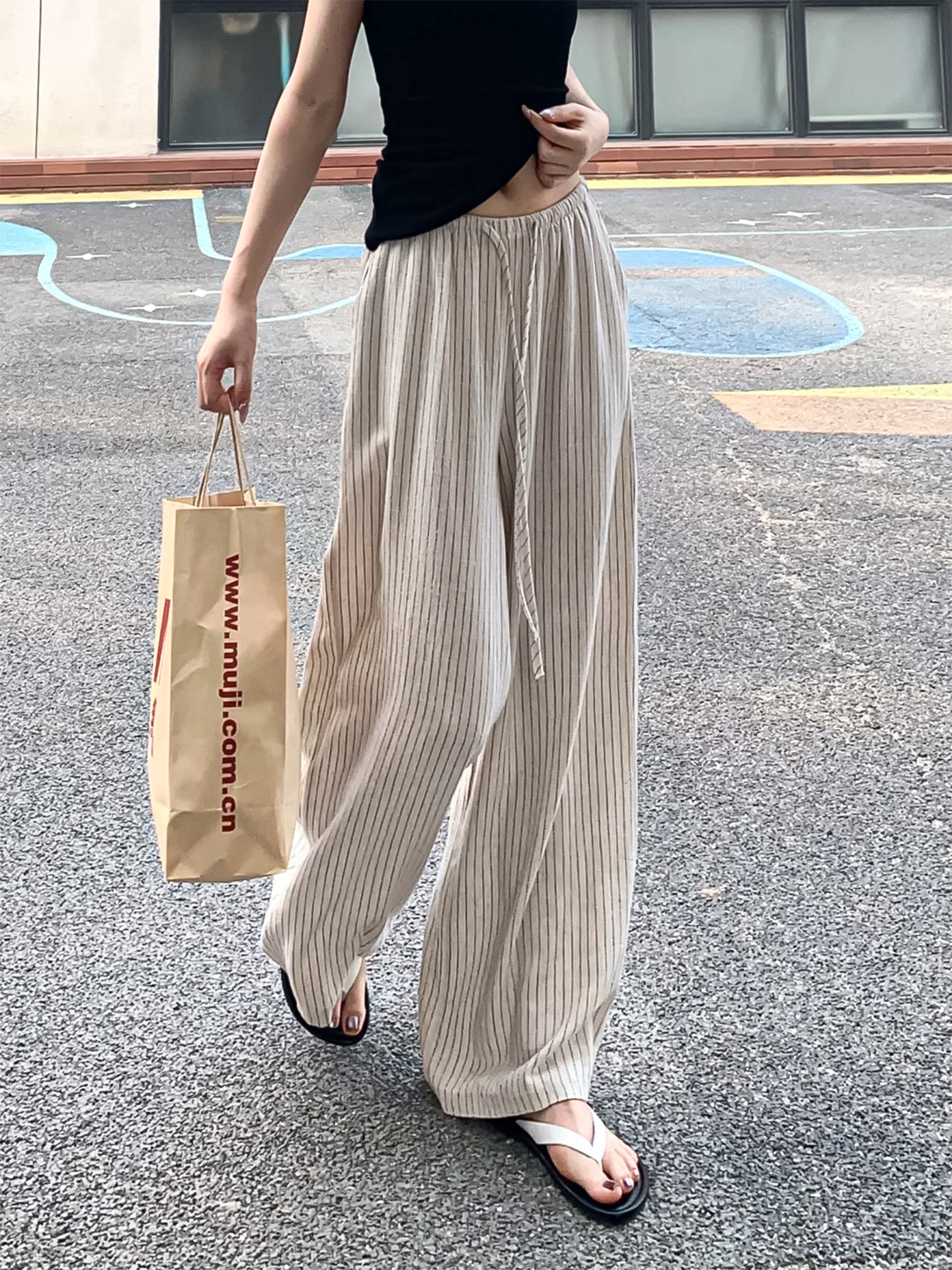 오래된 돈 바람 느긋한 마 재료 화이트 바지 여름 얇은 루즈핏 캐주얼 면 린넨 리 아마 센스 얼음 실크 와이드 레그 팬츠