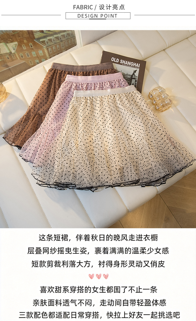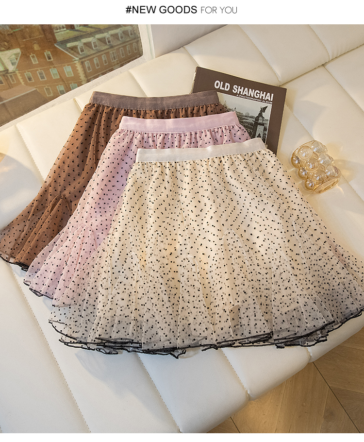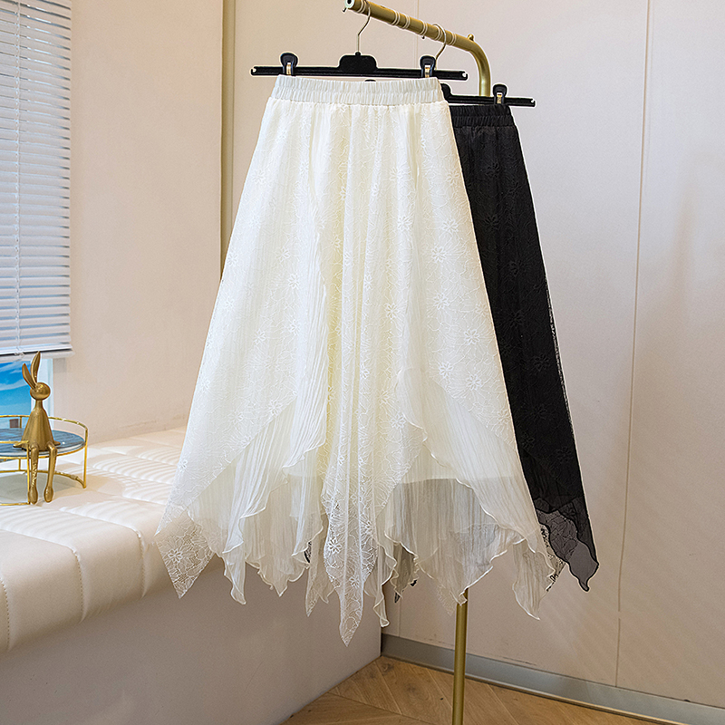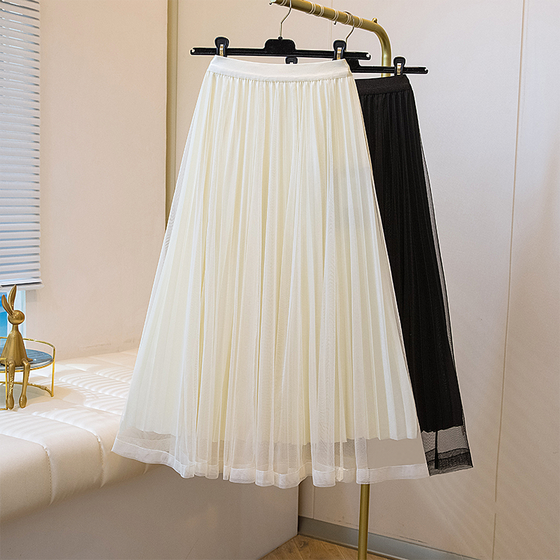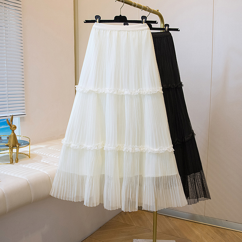 실사 빅 사이즈 여성 의류 여름 새로운 연령 감소 루즈핏 슬림해 보이는 도루 센스 망사 플리츠 반신 스커트 양성 및 음성 둘 착용