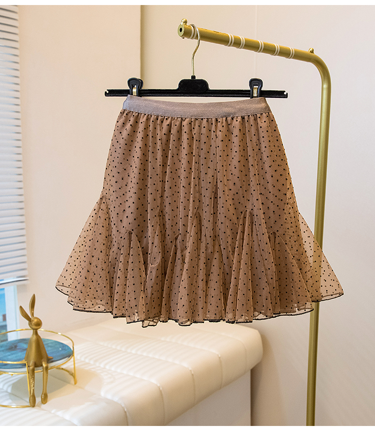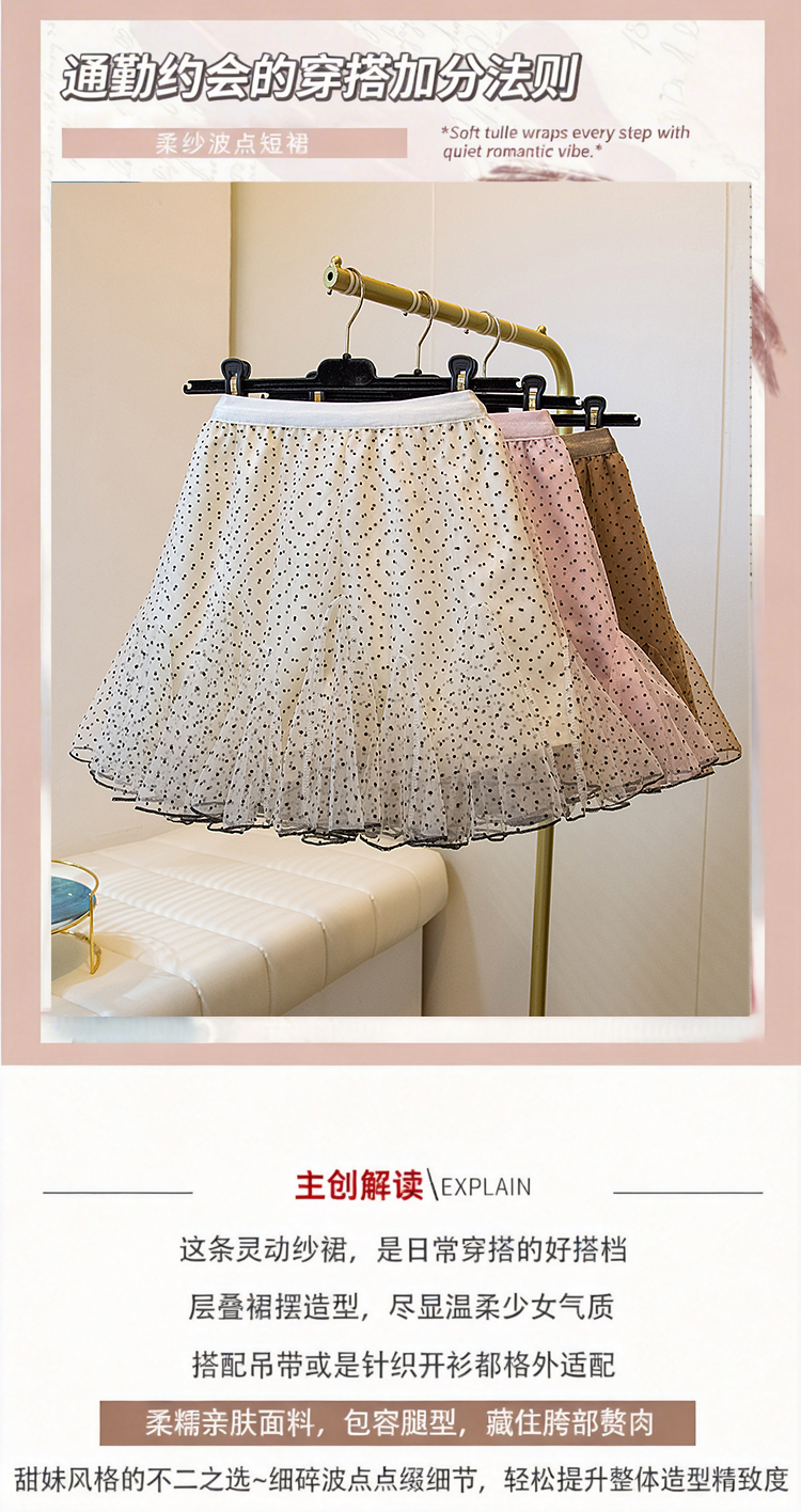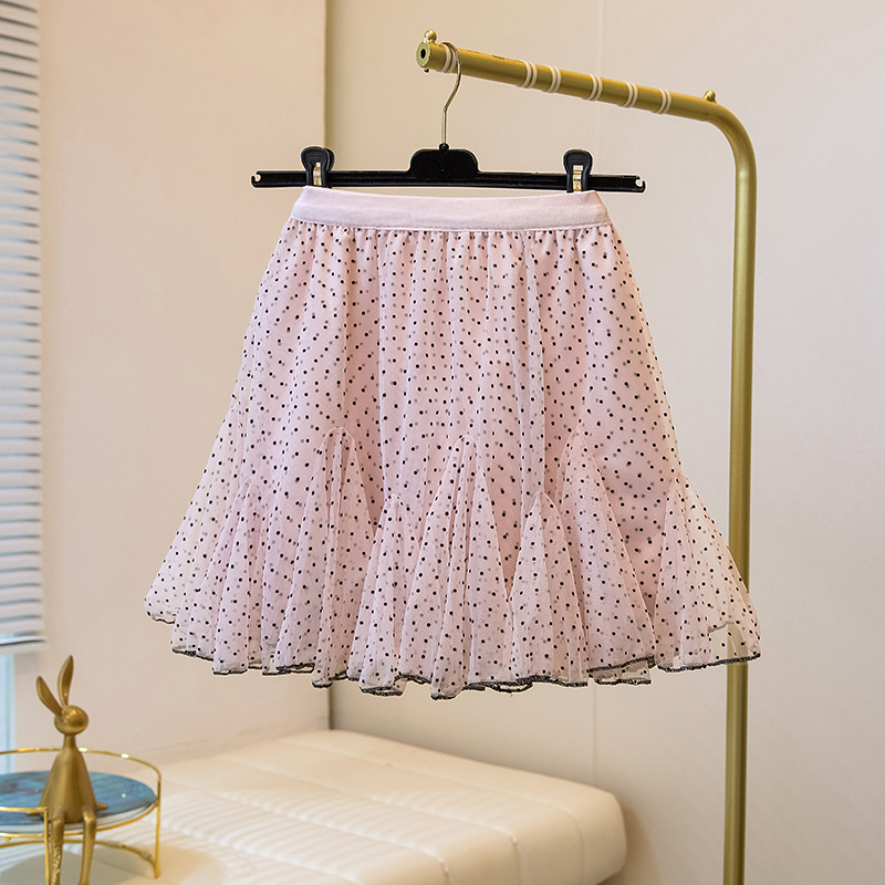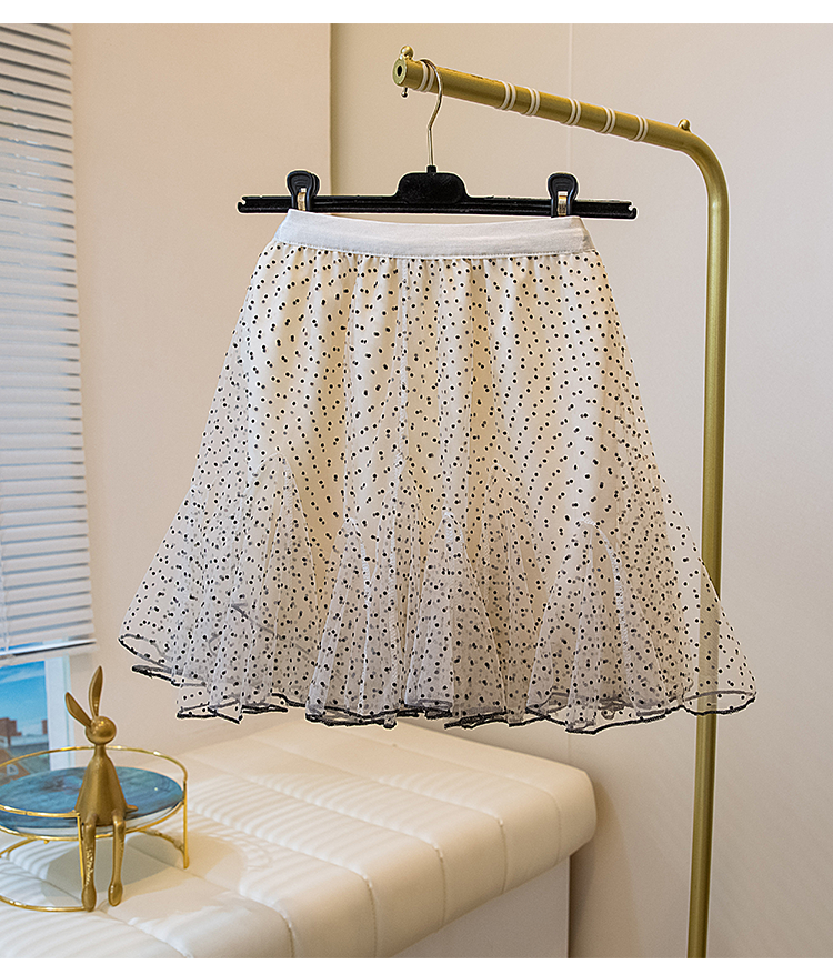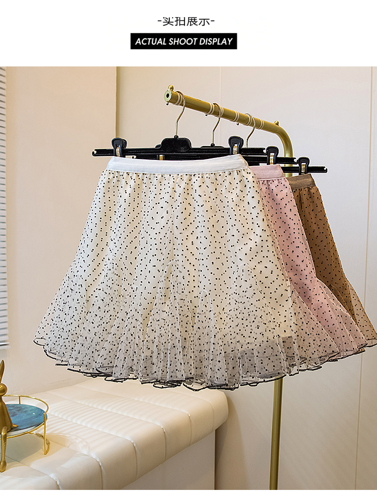 실사 여름 새로운 망사 패치워크 퍼프 스커트 빅 사이즈 여성 의류 반신 스커트