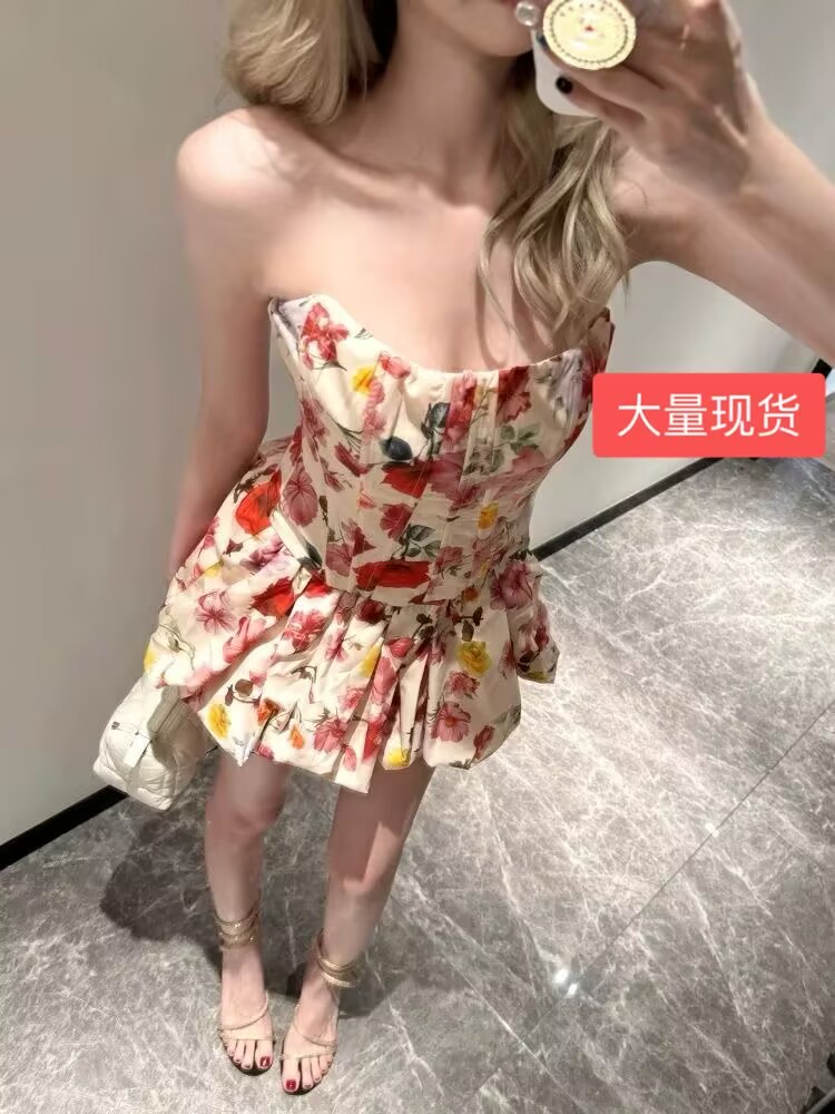 프랑스식 순수한 욕망 바람 품격 꽃무늬 세트 드레스 섹시함 몸매 가꾸기 튜브탑 맨위 슬림해 보이는 퍼프 반신 스커트 투피스 세트