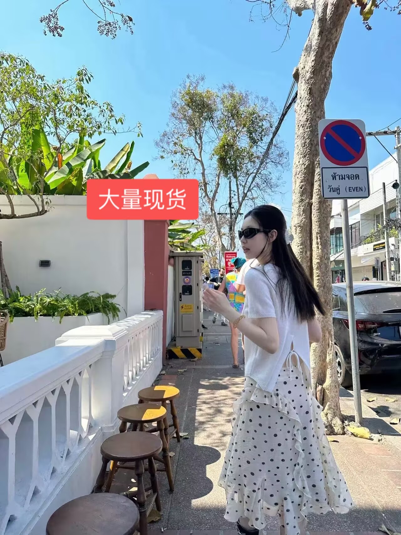 도트 무늬 비스듬한 어깨 프릴 세트 여성 여름 새로운 고급 센스 달콤한 핫걸 몸매 가꾸기 슬림해 보이는 아름다운 투피스 세트