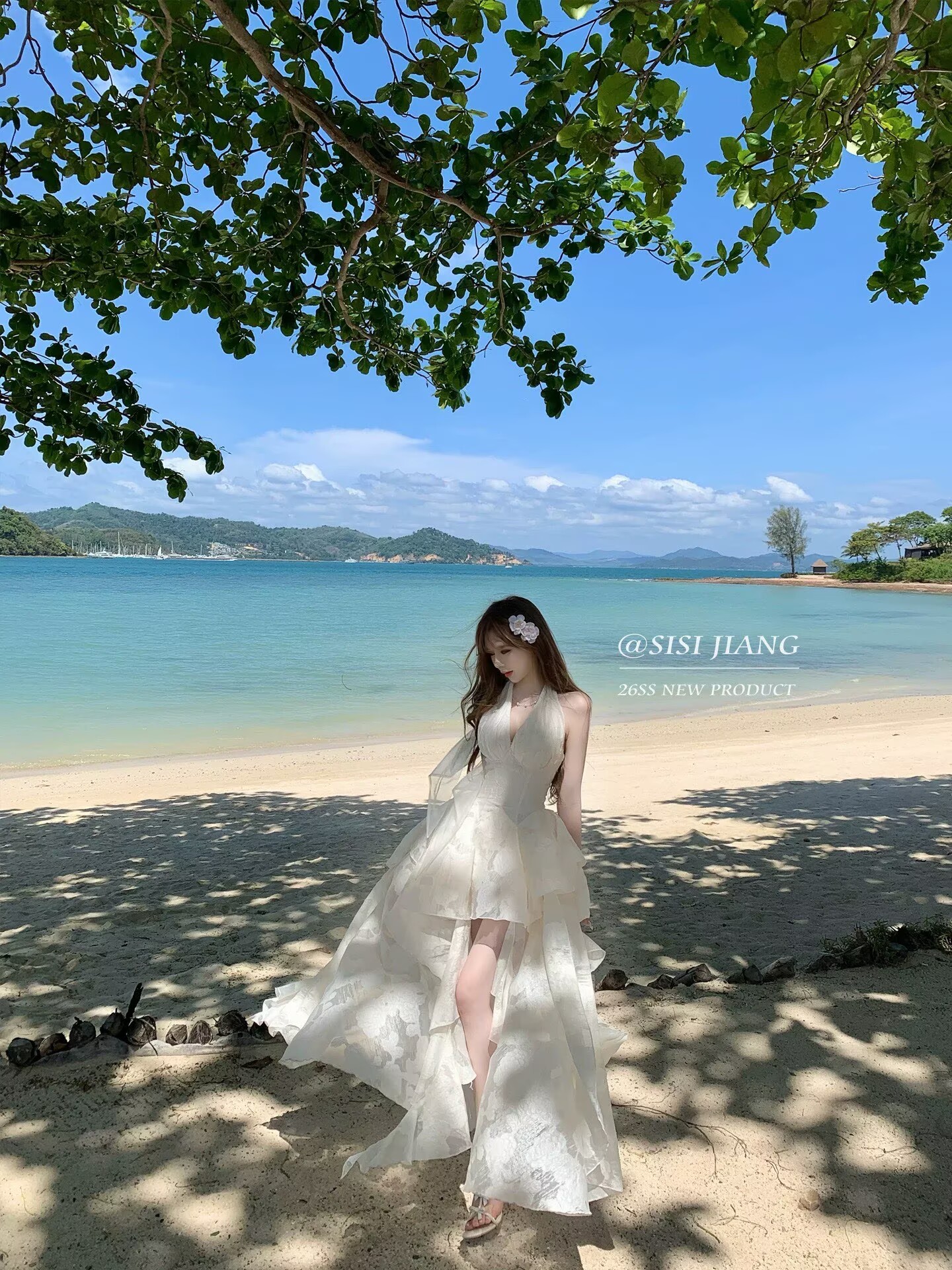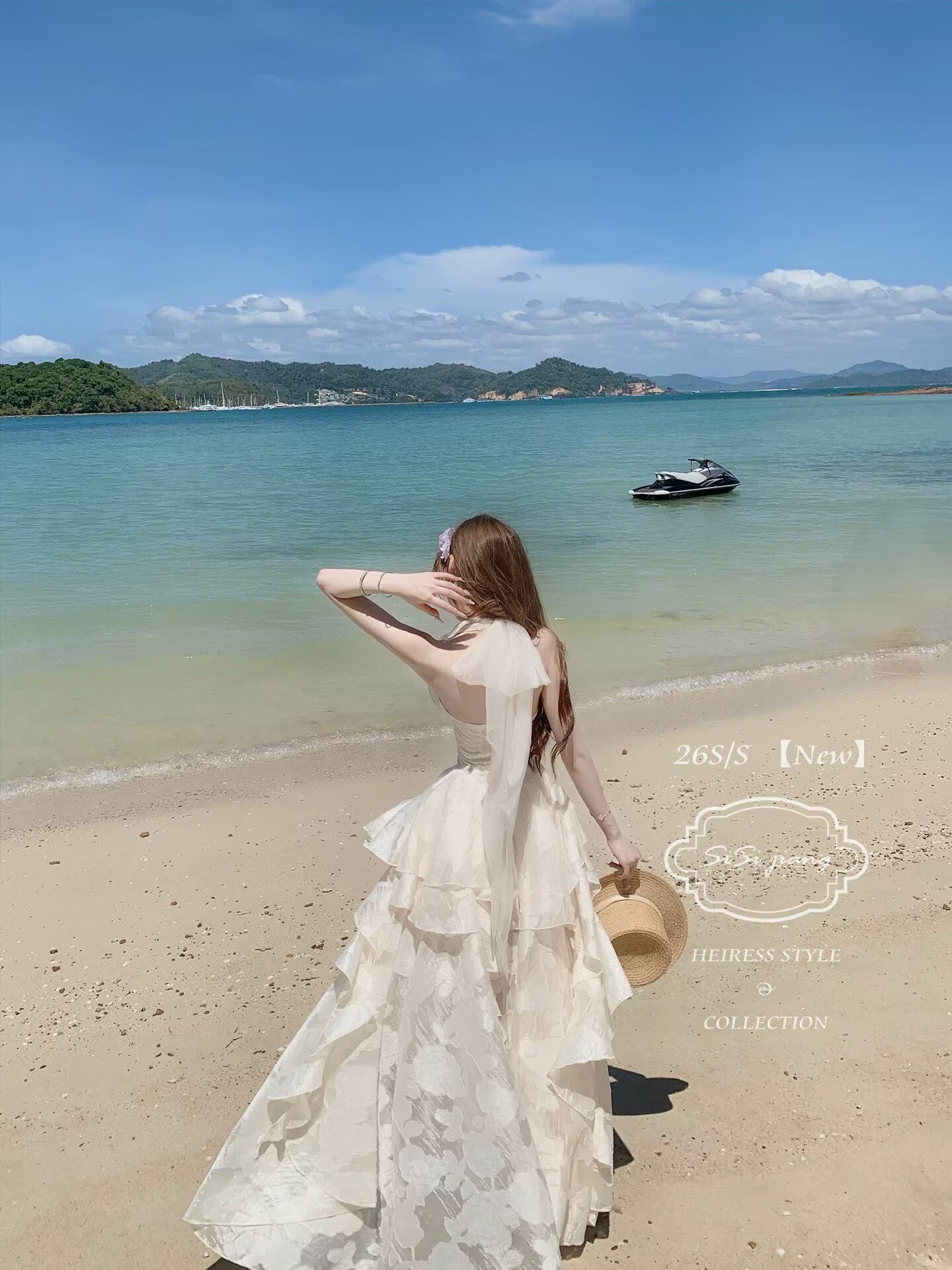 초기 꿈 pokemeng 한여름 꽃 행침 목 백리스 대 치마 자카드 헤일로 염색 꽃무늬 휴가 드레스