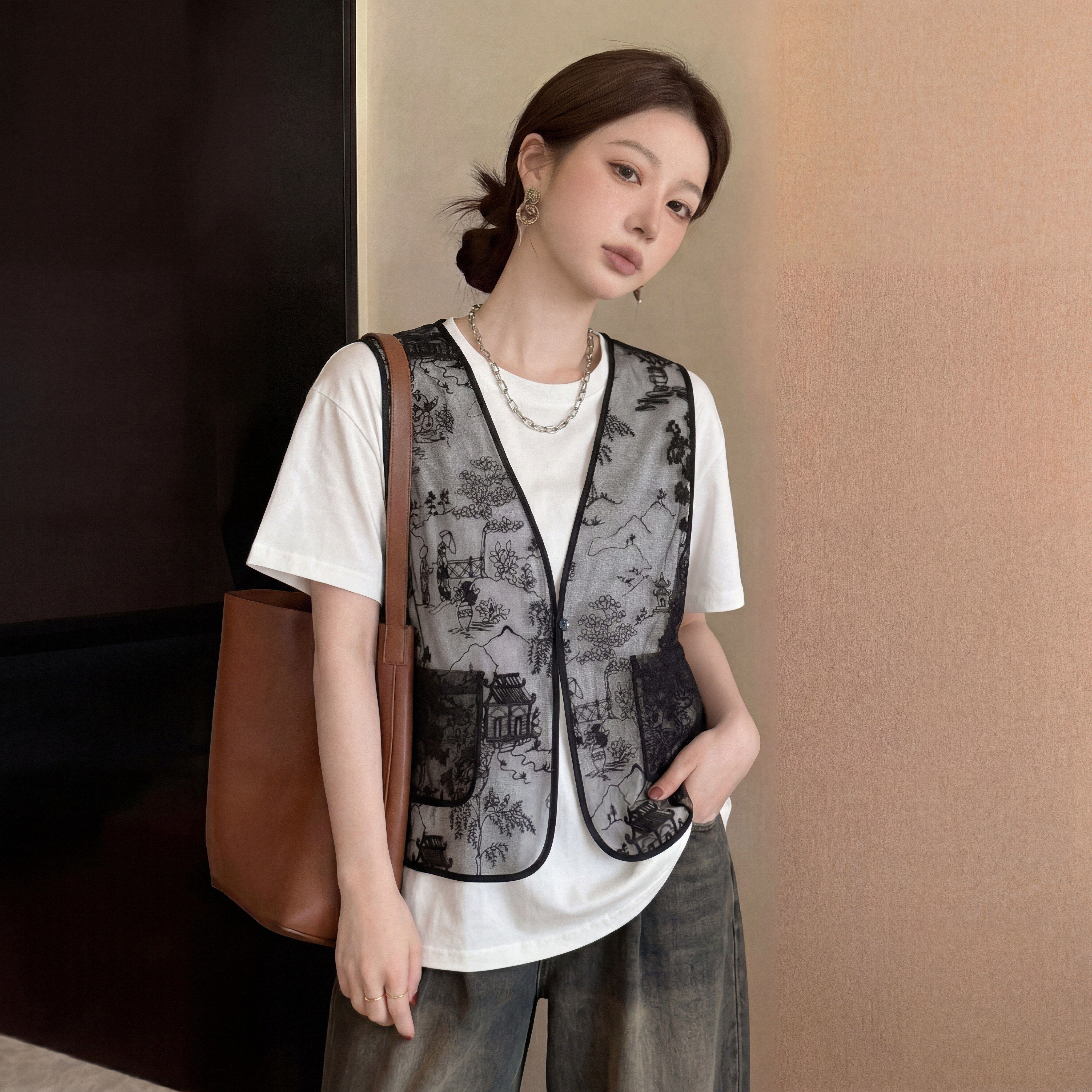 실사 빅 사이즈 지방 mm 새로운 디자인 센스 패치워크 달콤한 스타일 미니멀리즘 조끼 슬립 슬림해 보이는 표지 고기 맨위 여성