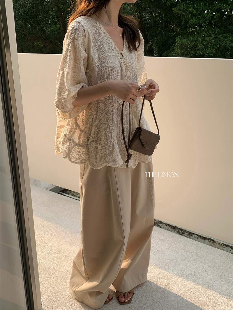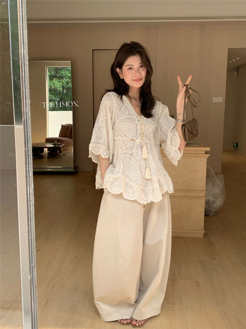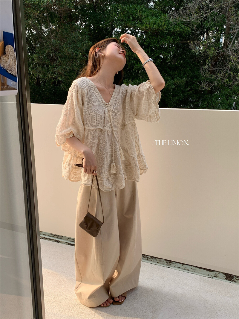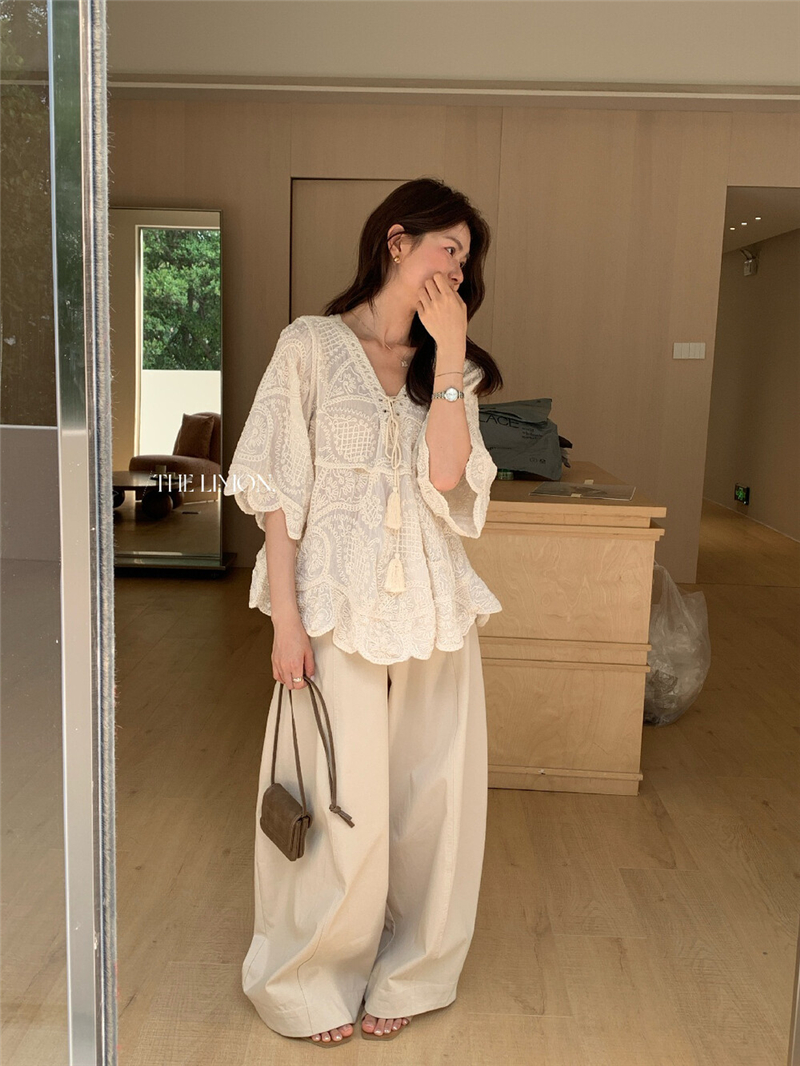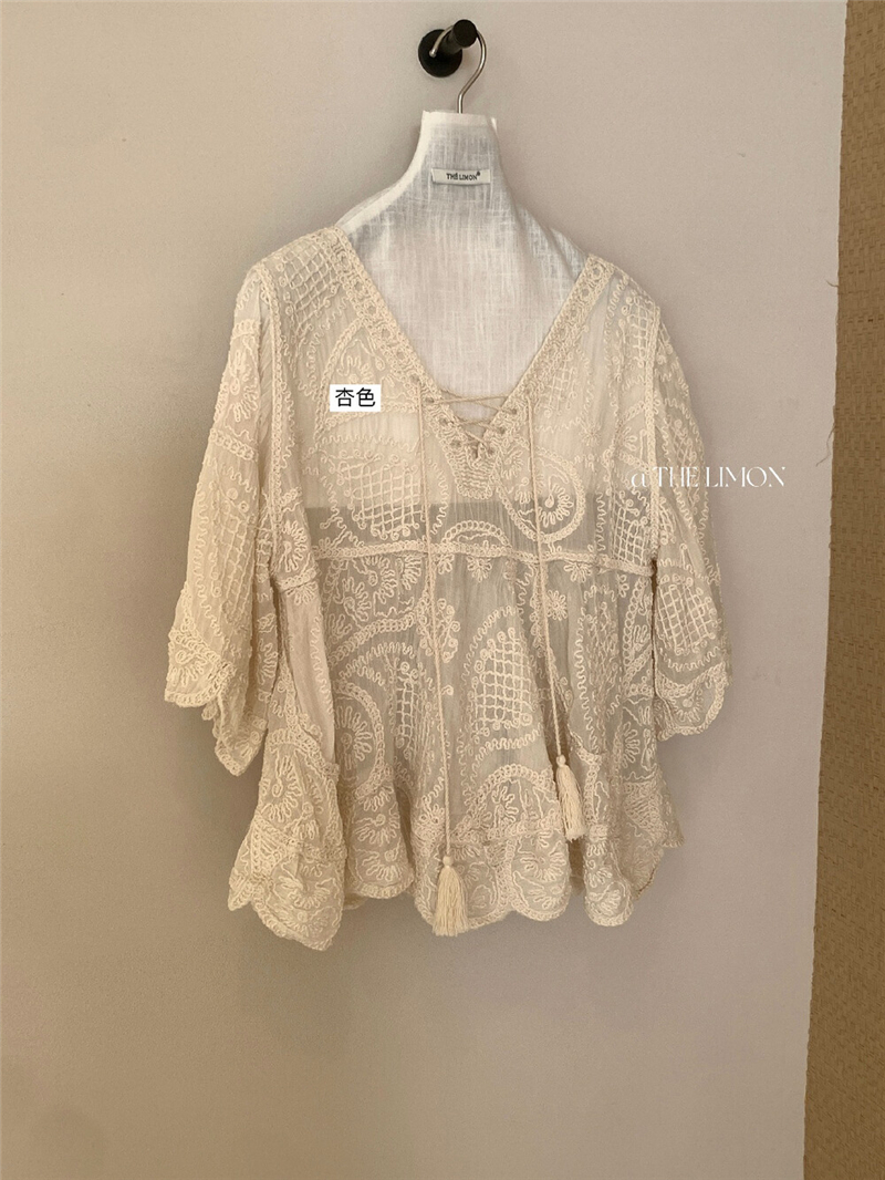 Mingyan 아름다움 대 주요 추진력 높은 품질 전체 점수 모델링 고대 조기 달콤한 자매 분위기 자수 비스듬한 어깨 레이스 작은 셔츠