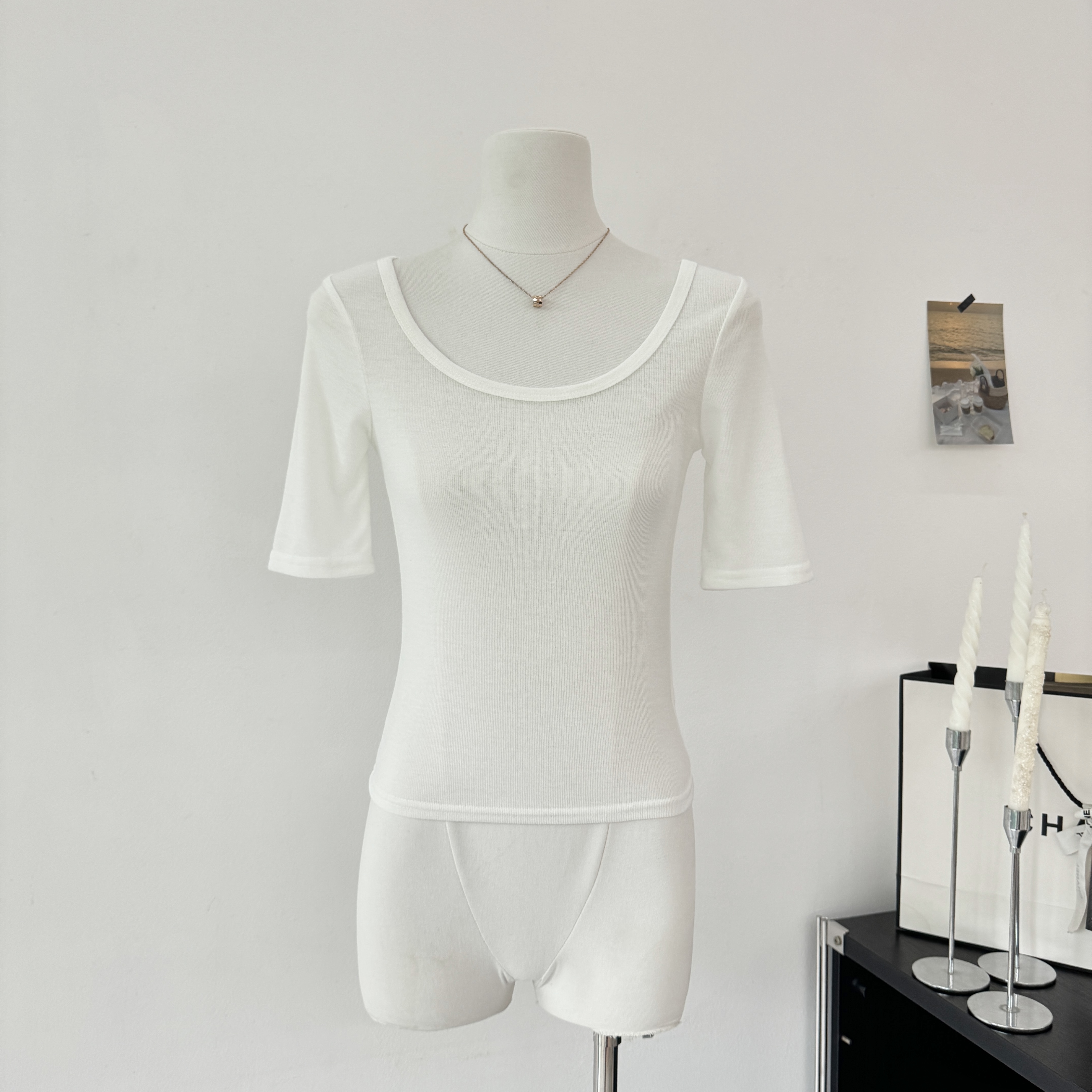 e go studio 주간 실크 양모 대 u 칼라 슬림해 보이는 다용도 중간 소매 티셔츠 여성 의류 몸매 가꾸기 슬림해 보이는 다용도 맨위