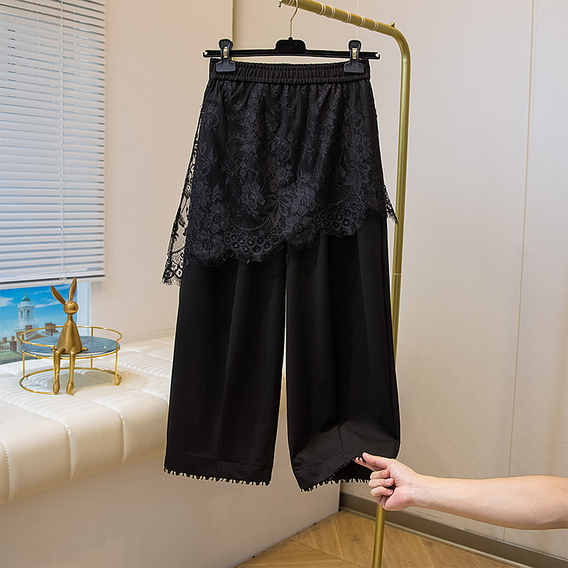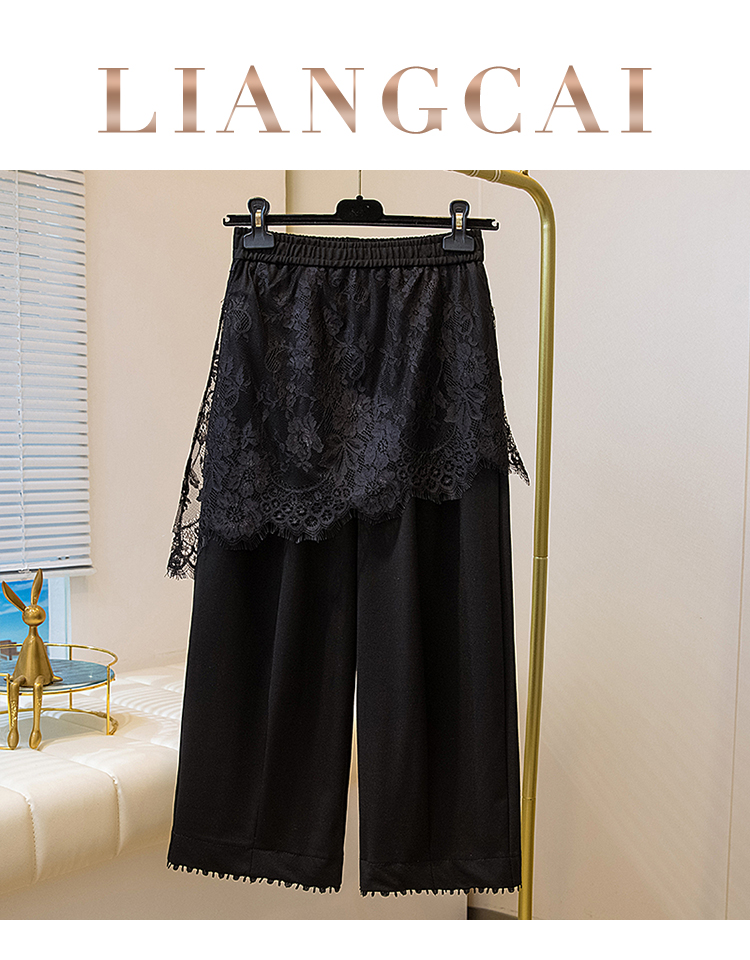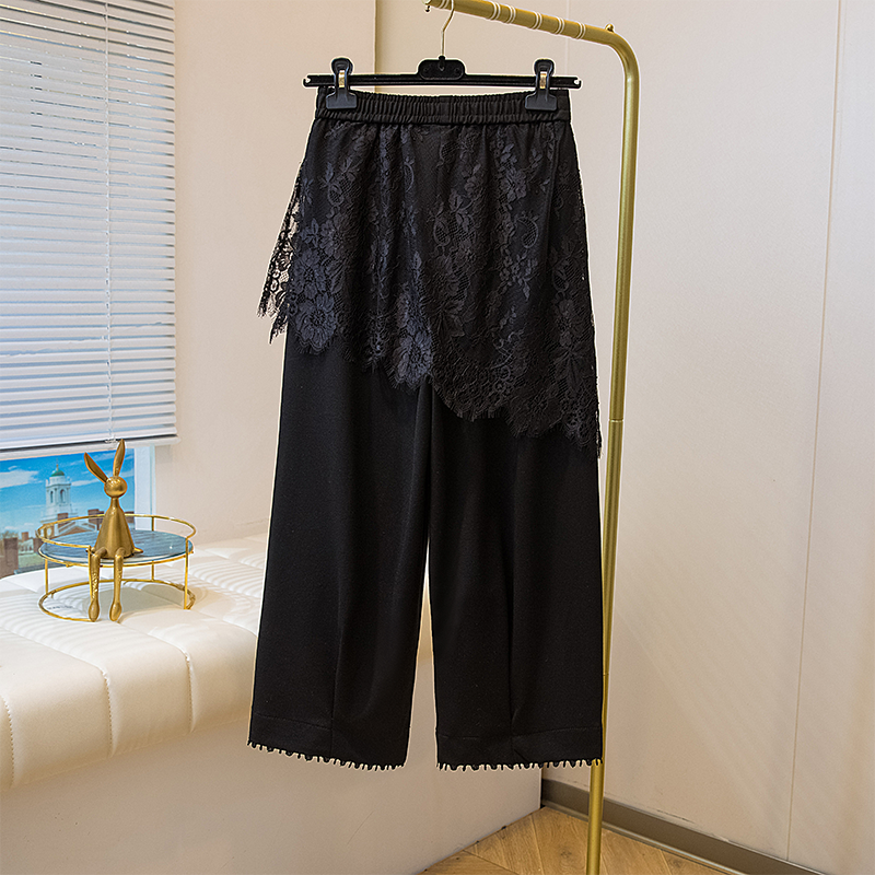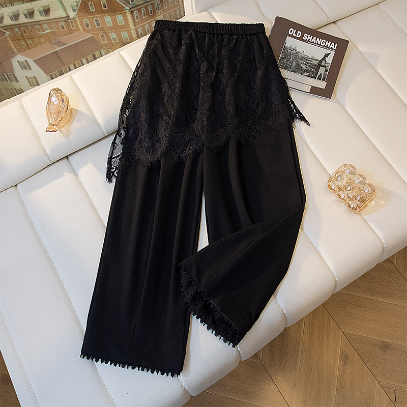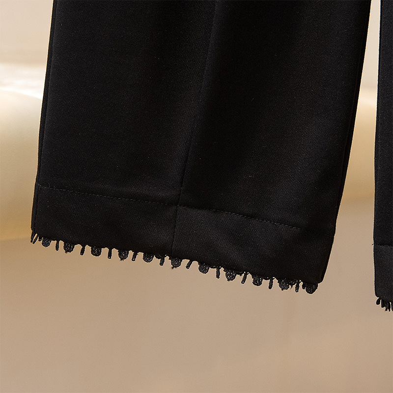 작은 키 검정색 레이스 캐주얼 바지 여성 2026 봄 새로운 지방 mm 몸매 가꾸기 슬림해 보이는 신축성 9 포인트 스트레이트 팬츠