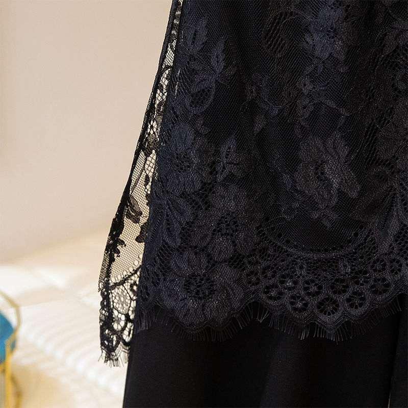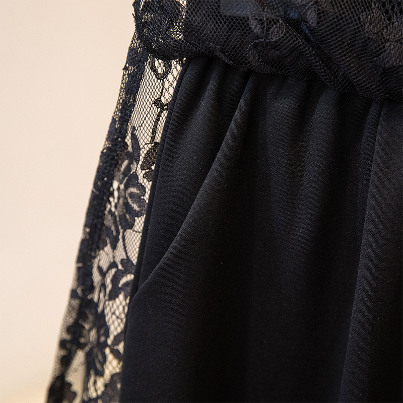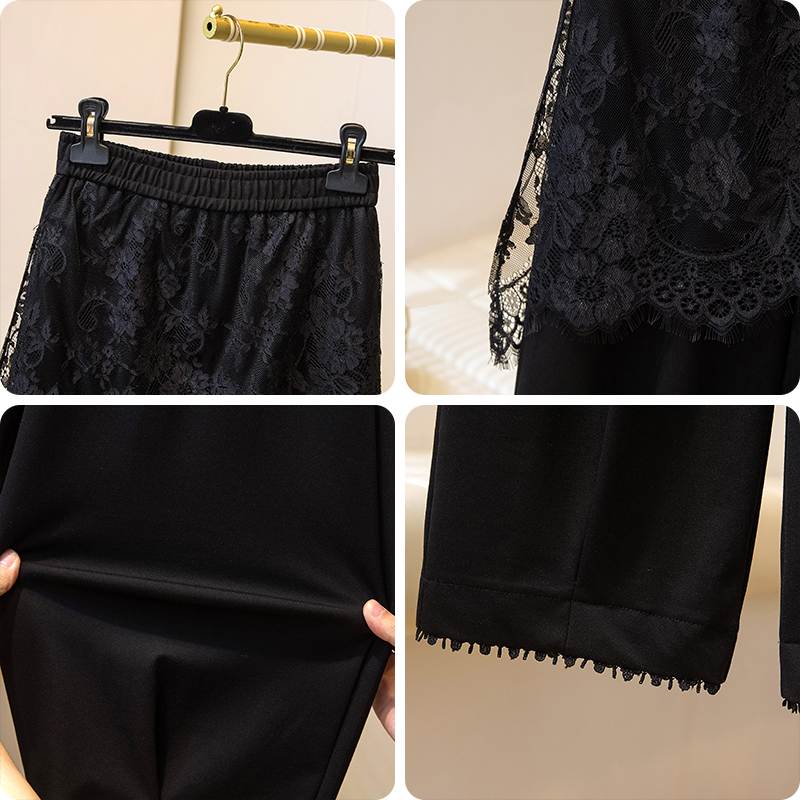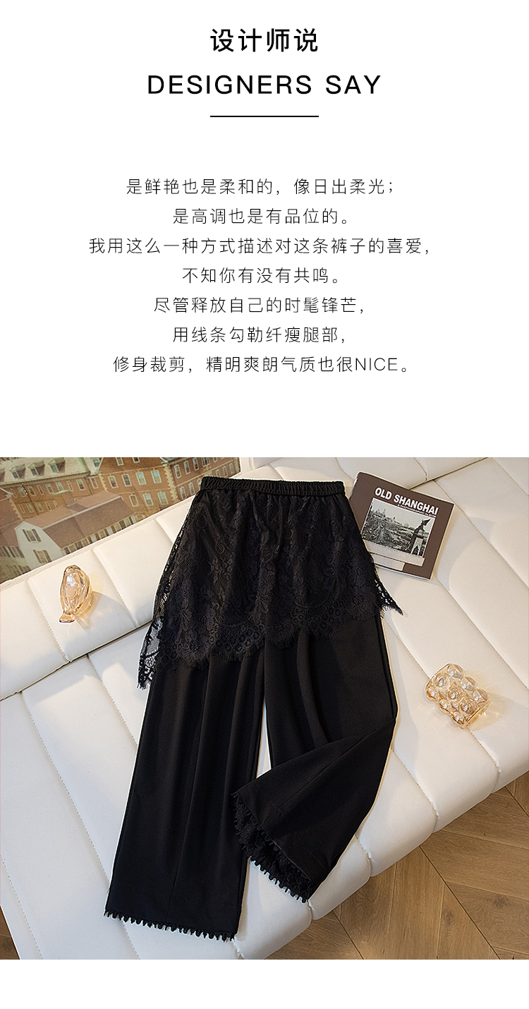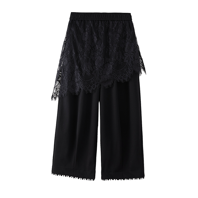 작은 키 검정색 레이스 캐주얼 바지 여성 2026 봄 새로운 지방 mm 몸매 가꾸기 슬림해 보이는 신축성 9 포인트 스트레이트 팬츠