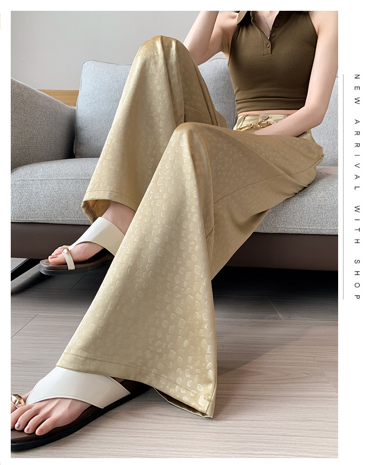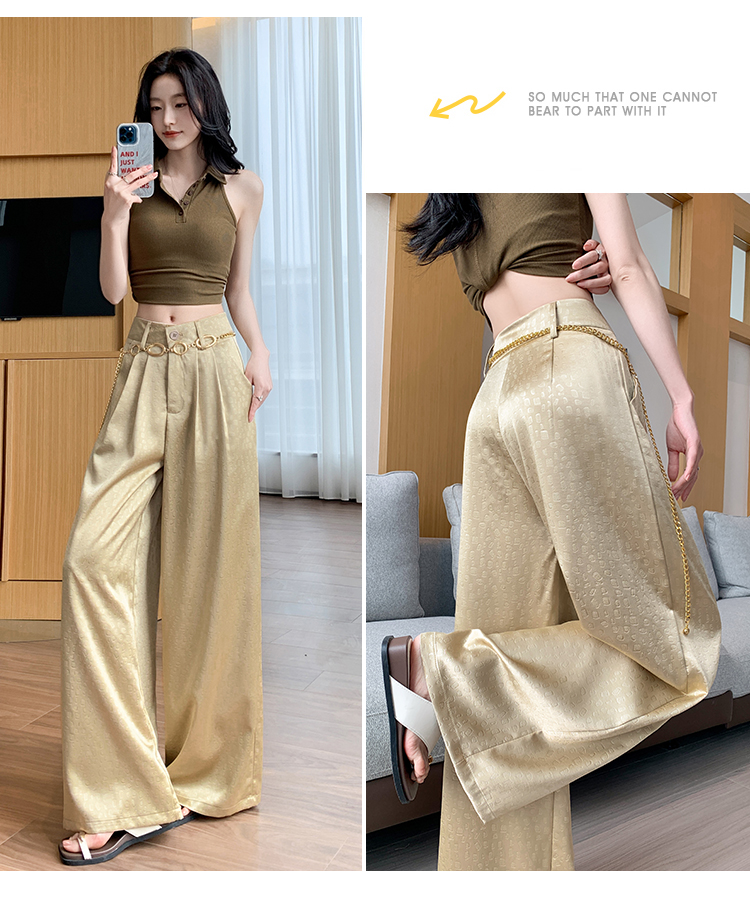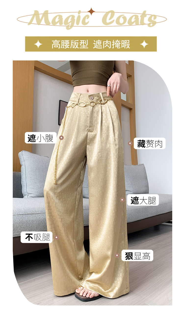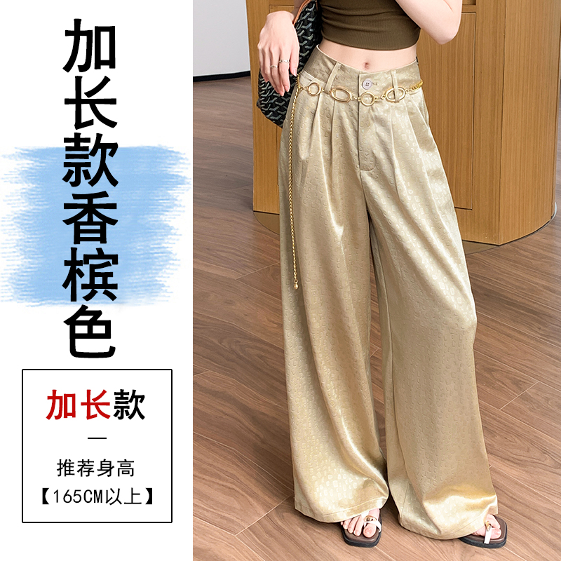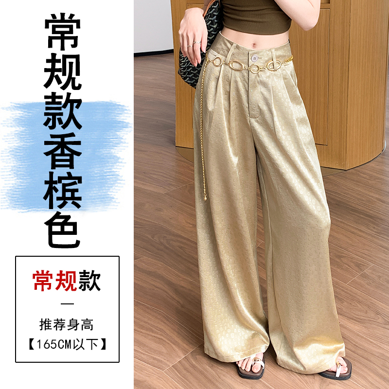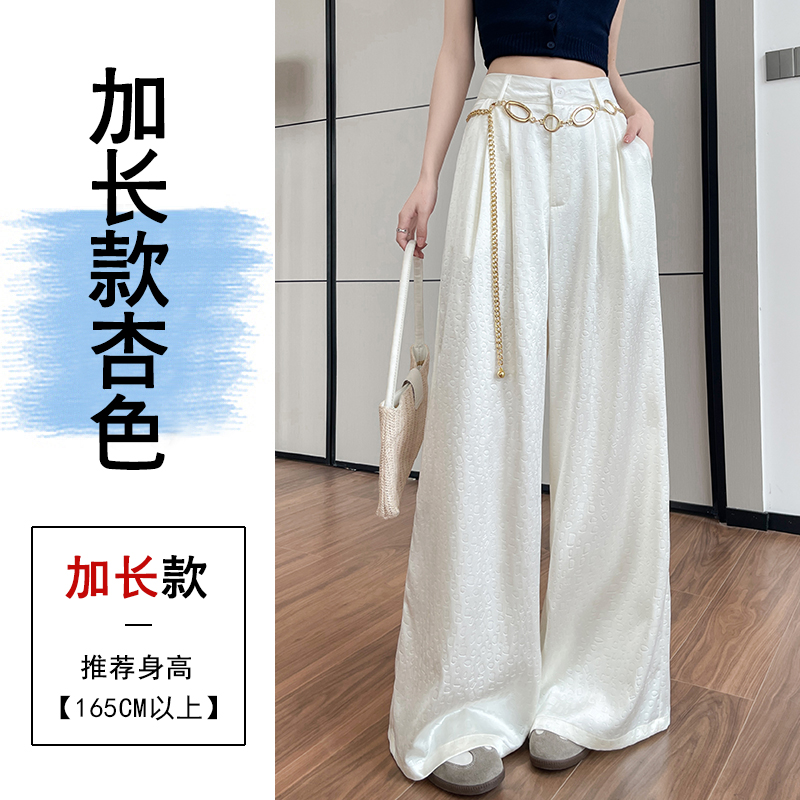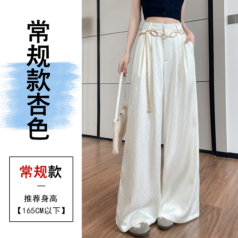 베이지 색 아세트산 새틴 와이드 레깅스 바지 2026 여름 얇은 스타일 하이웨이스트 스팽글 슬림해 보이는 캐주얼 바닥 청소 롱 바지