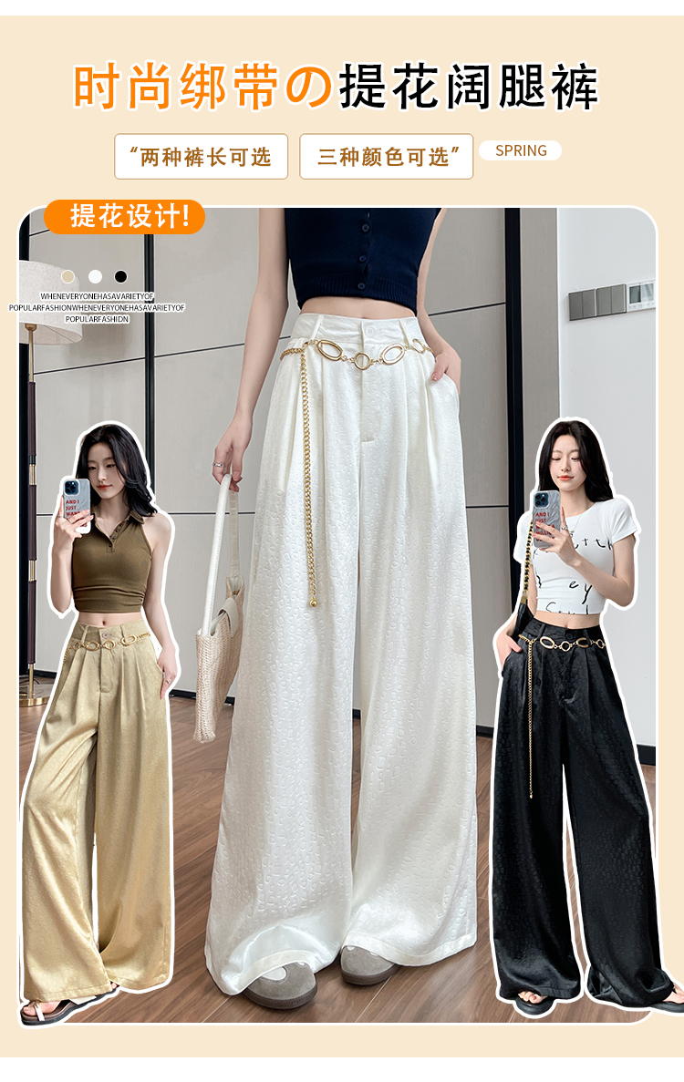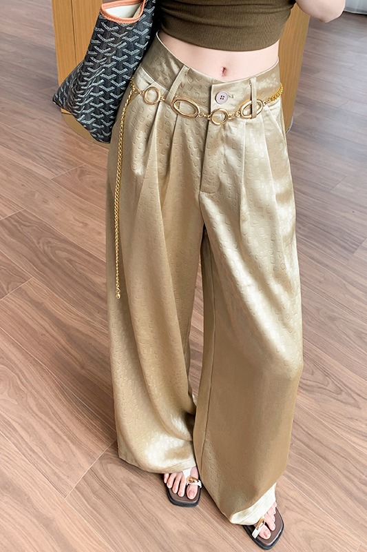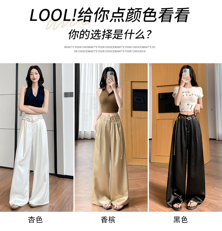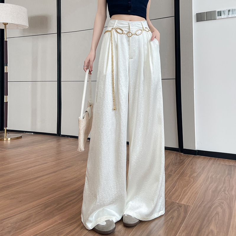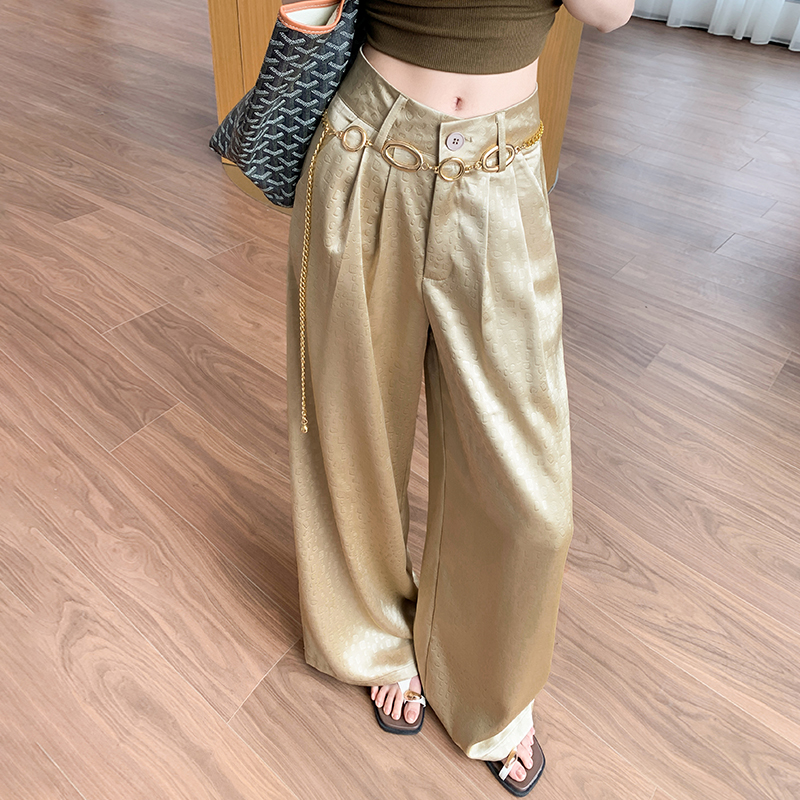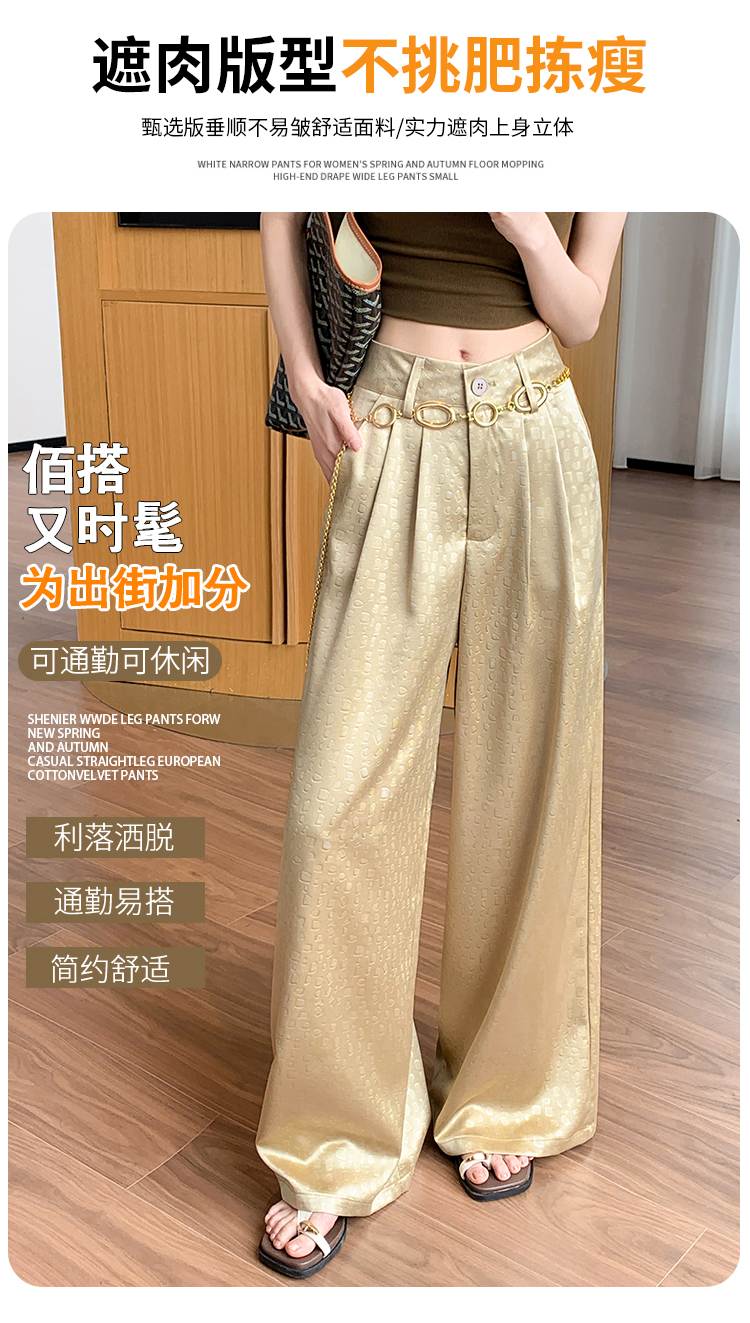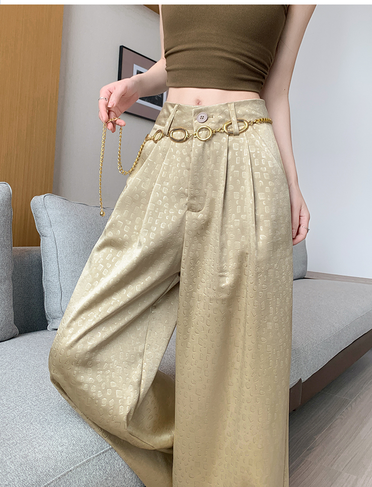 베이지 색 아세트산 새틴 와이드 레깅스 바지 2026 여름 얇은 스타일 하이웨이스트 스팽글 슬림해 보이는 캐주얼 바닥 청소 롱 바지