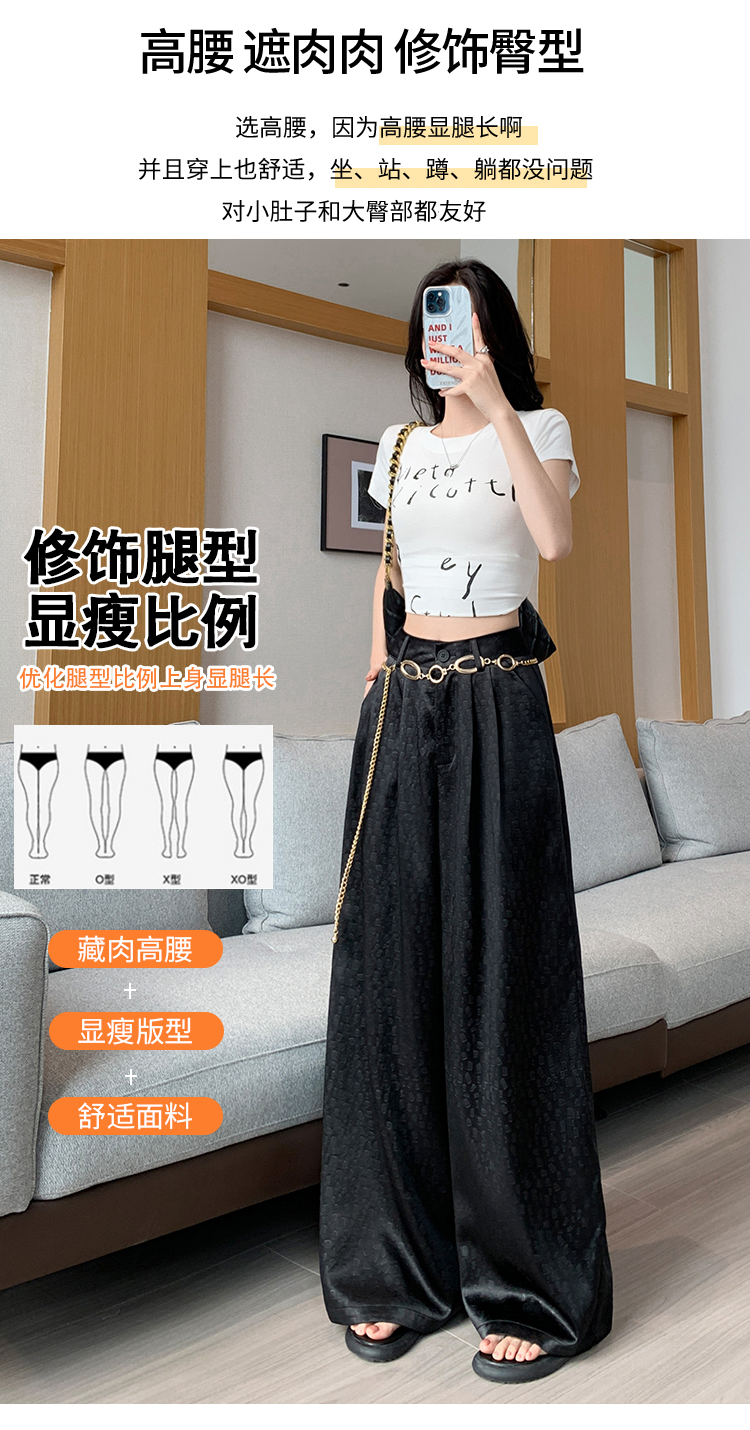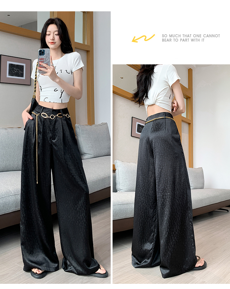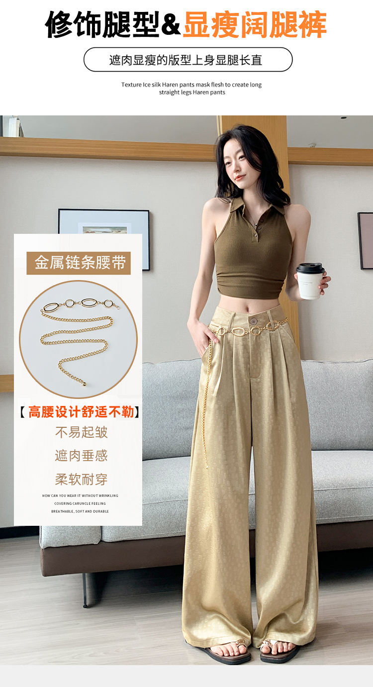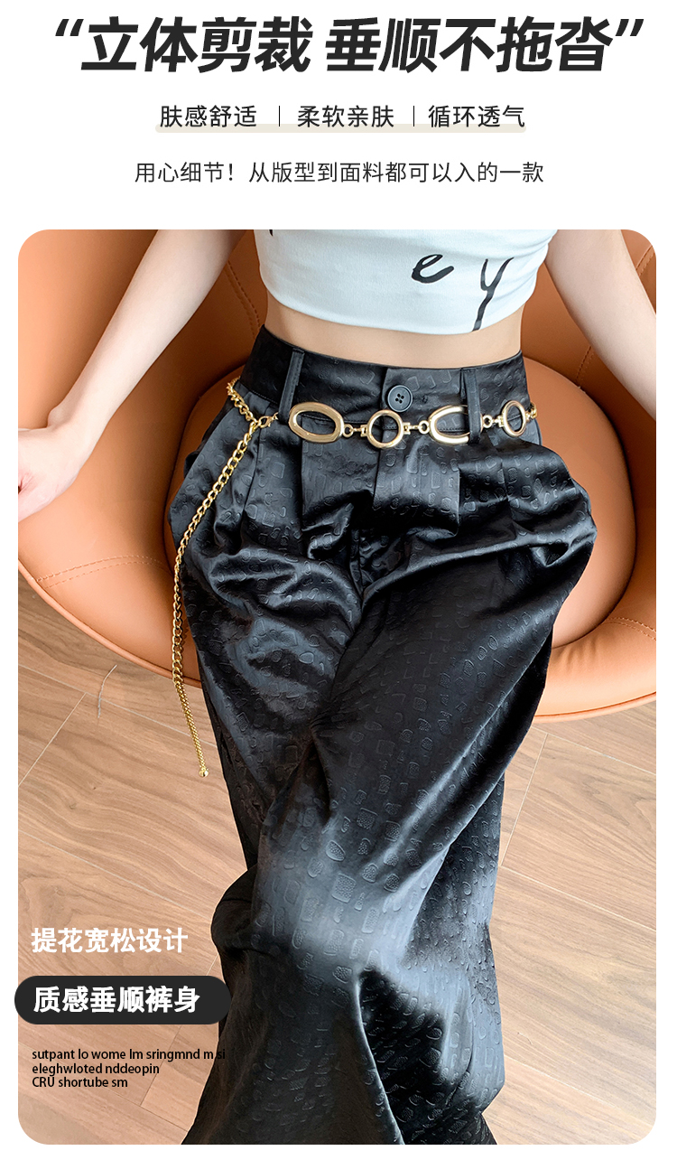 아세트산 새틴 플래시 훈련 와이드 레깅스 바지 여름 2026 새로운 하이웨이스트 도루 센스 얼음 실크 얇은 스타일 스트레이트 캐주얼 바지