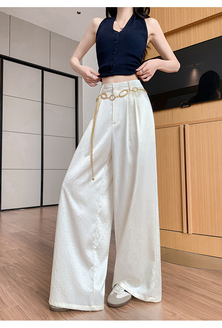 화이트 넓은 다리 정장 여성 2026 봄 여름 새로운 아메리칸 중 하이웨이스트 루즈핏 도루 센스 느슨함 센스 캐주얼 웨이 바지