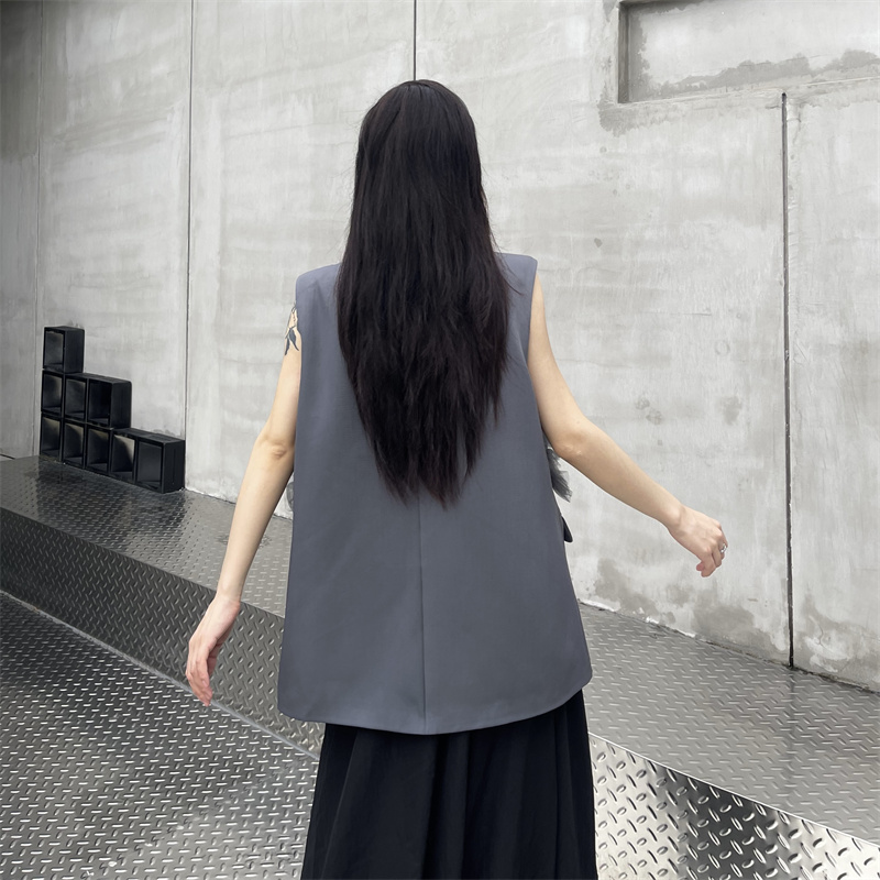 실사 새로운 숙련 된 출퇴근 바람 정장 칼라 못 훈련 이중 버튼 조끼 여성 루즈핏 중간 길이 맨위