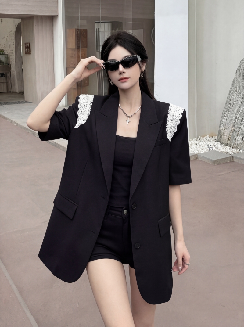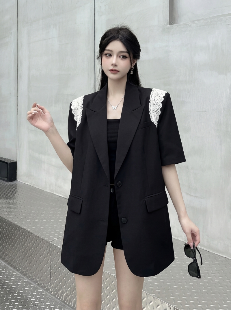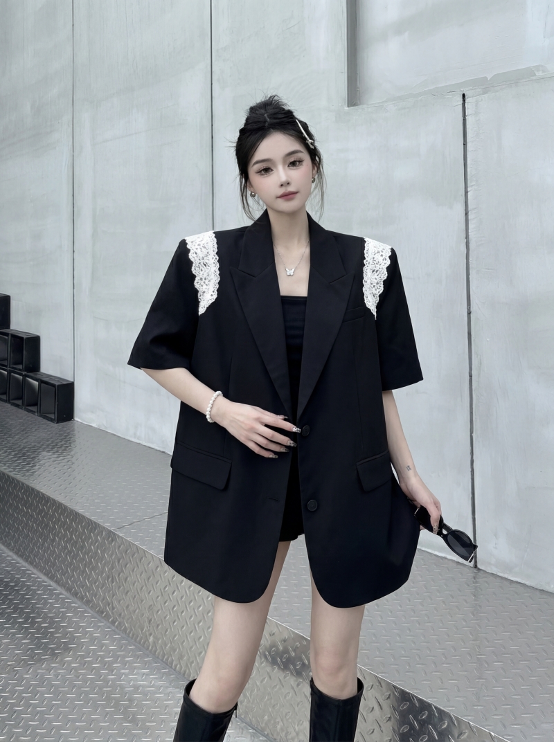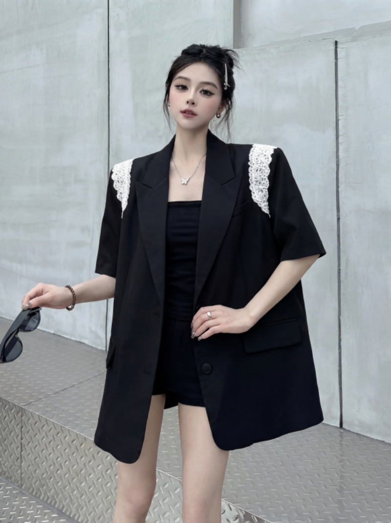 실사 디자인 센스 층 레이스 패치워크 정장 조끼 여자 트렌드 패션 캐주얼 중간 길이 재킷