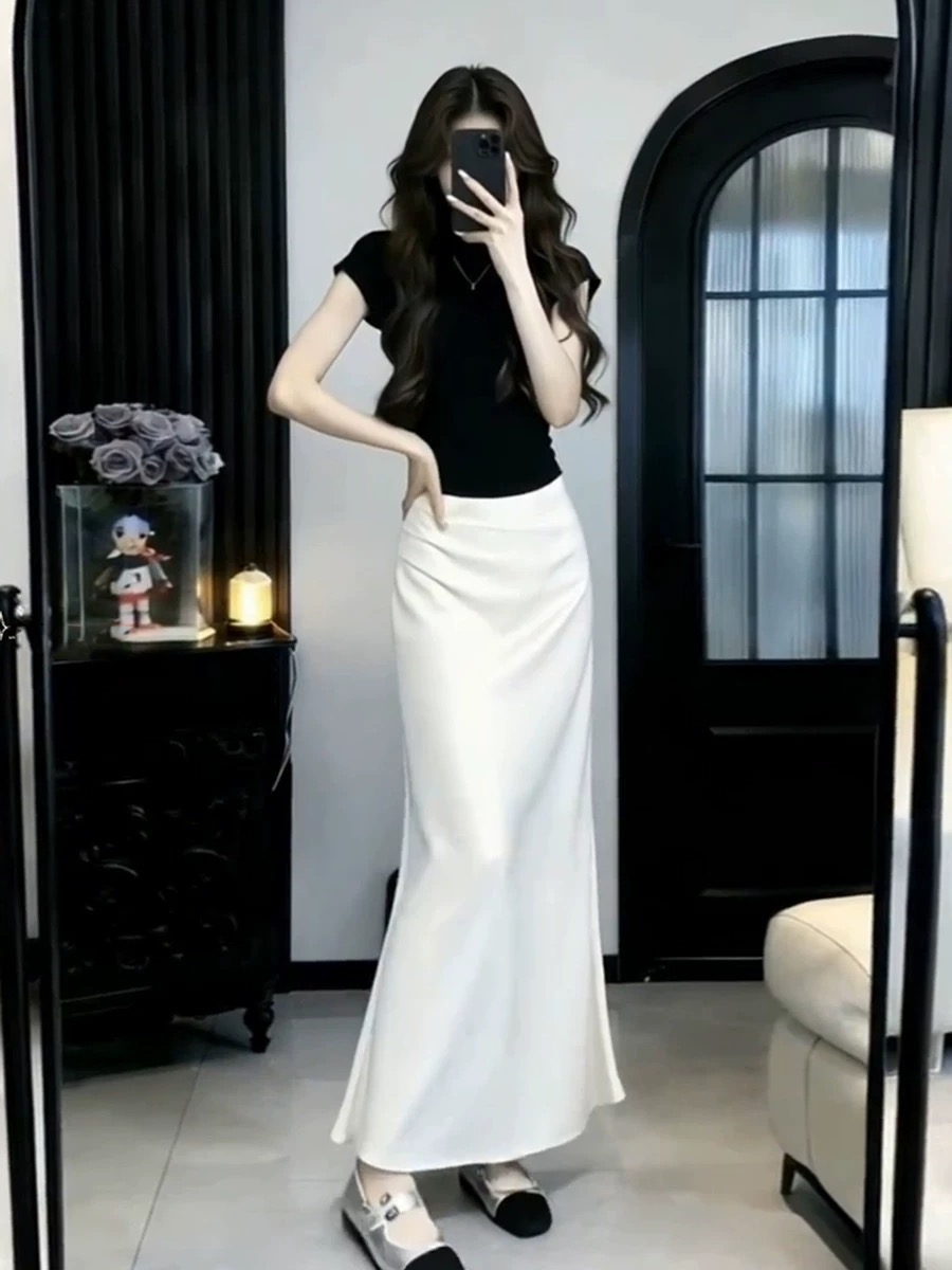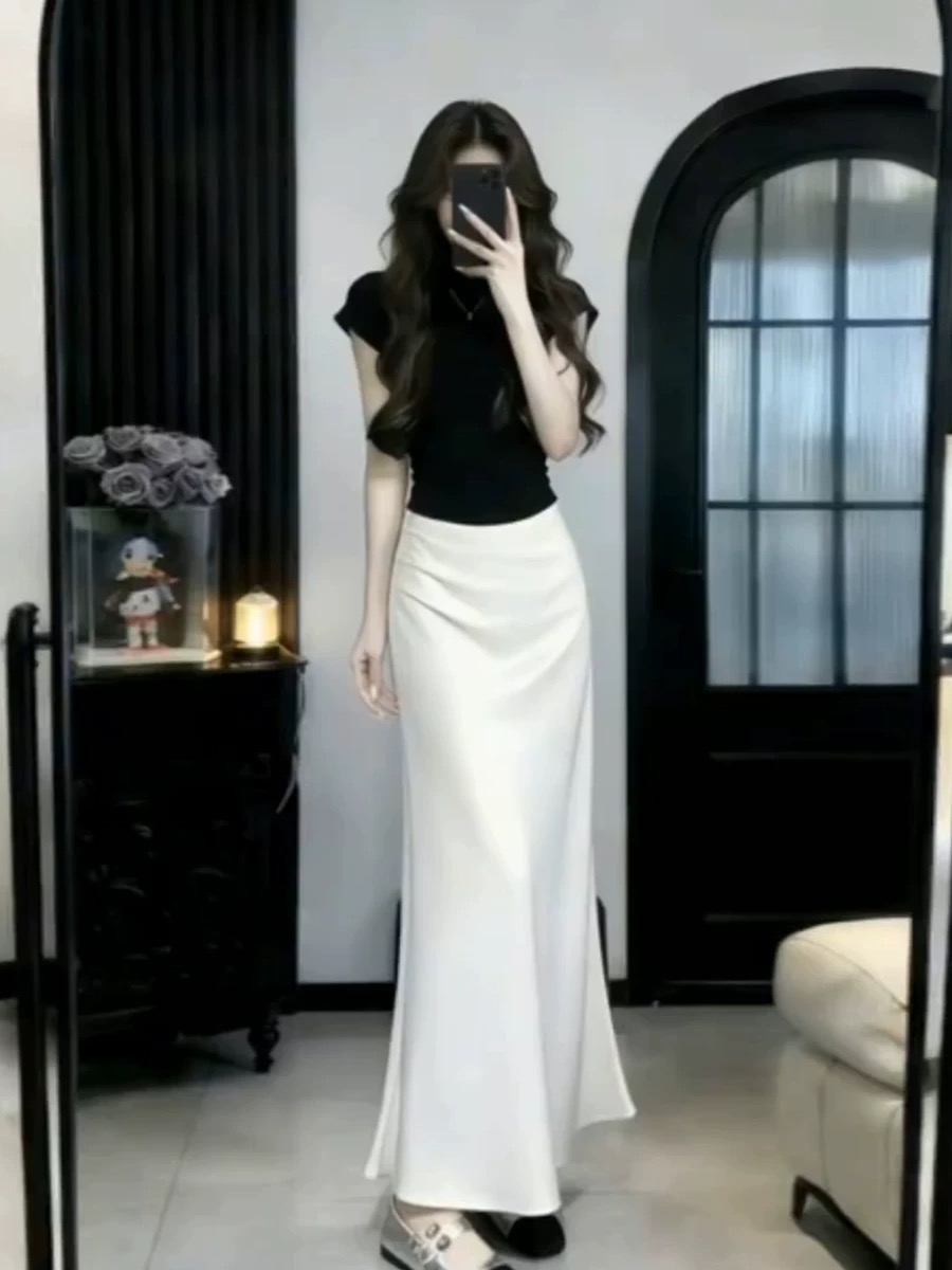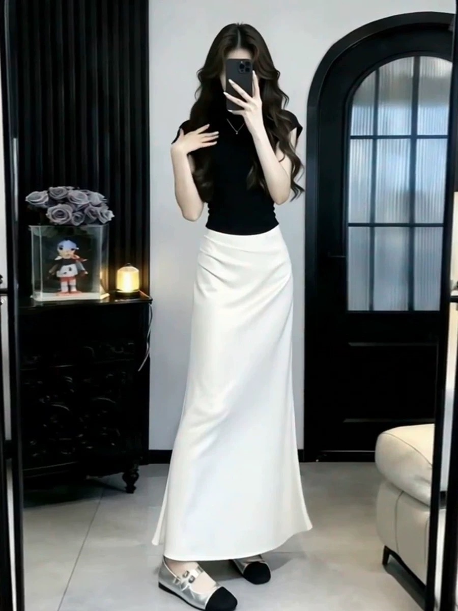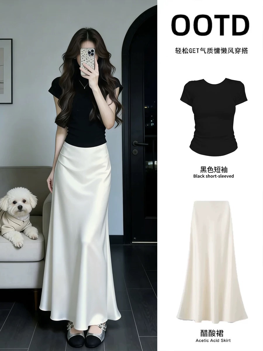 이른 봄 아름다운 세트 아세트산 반신 스커트 롱 스커트 아이들 여름 빛 사람들 코치 착용 가져 가라. 전체 집합 한 부서 ootd