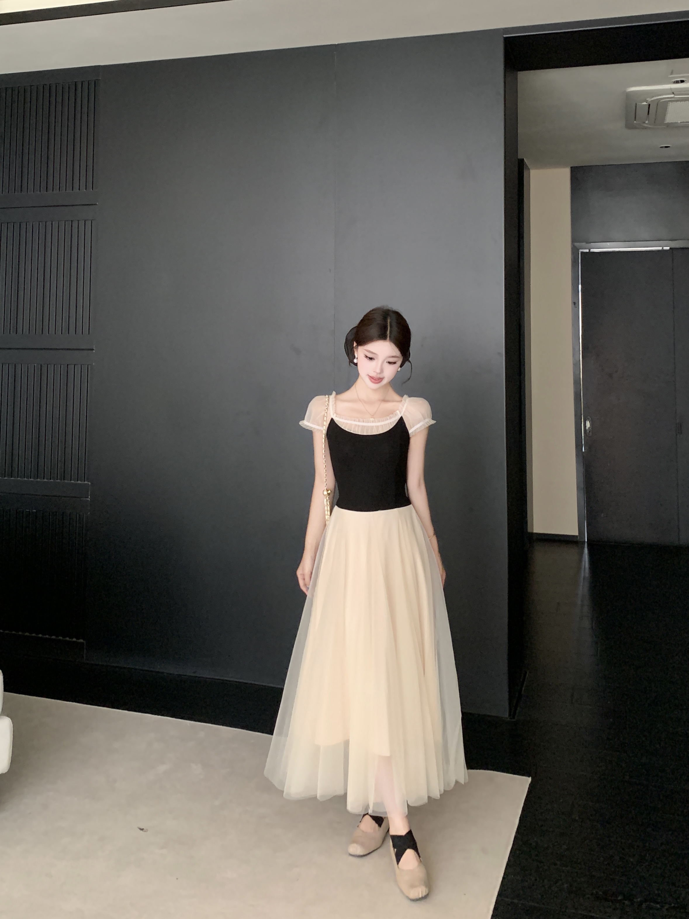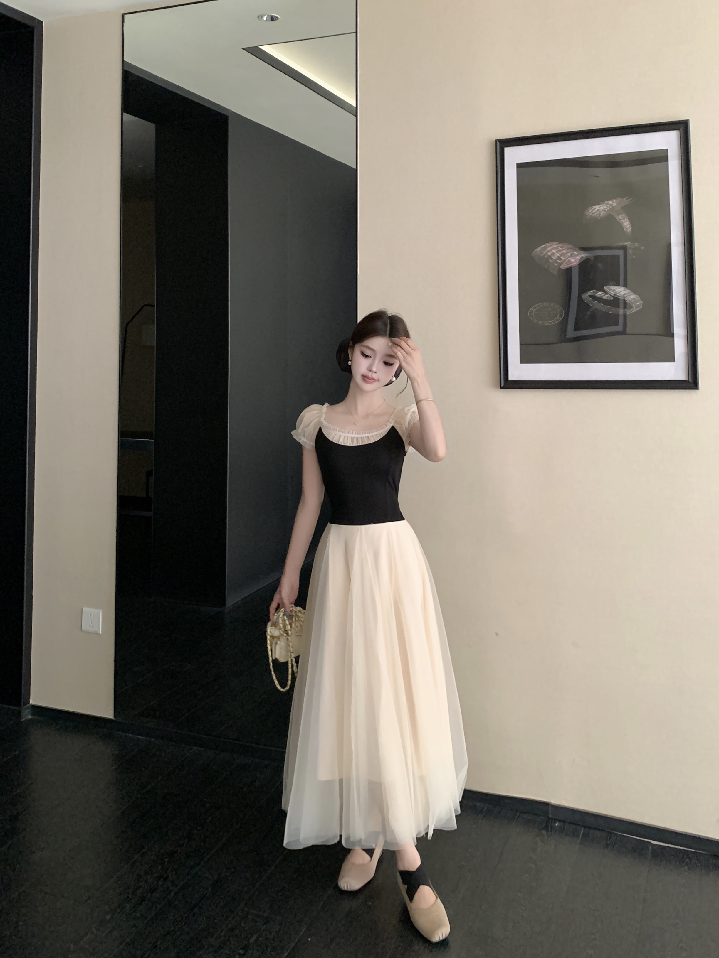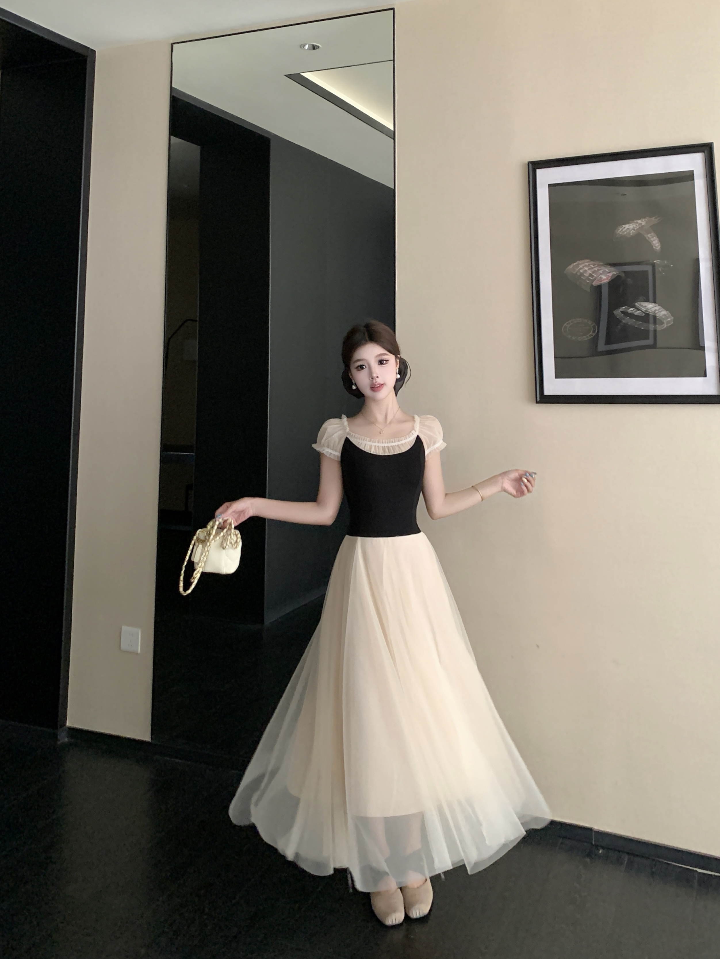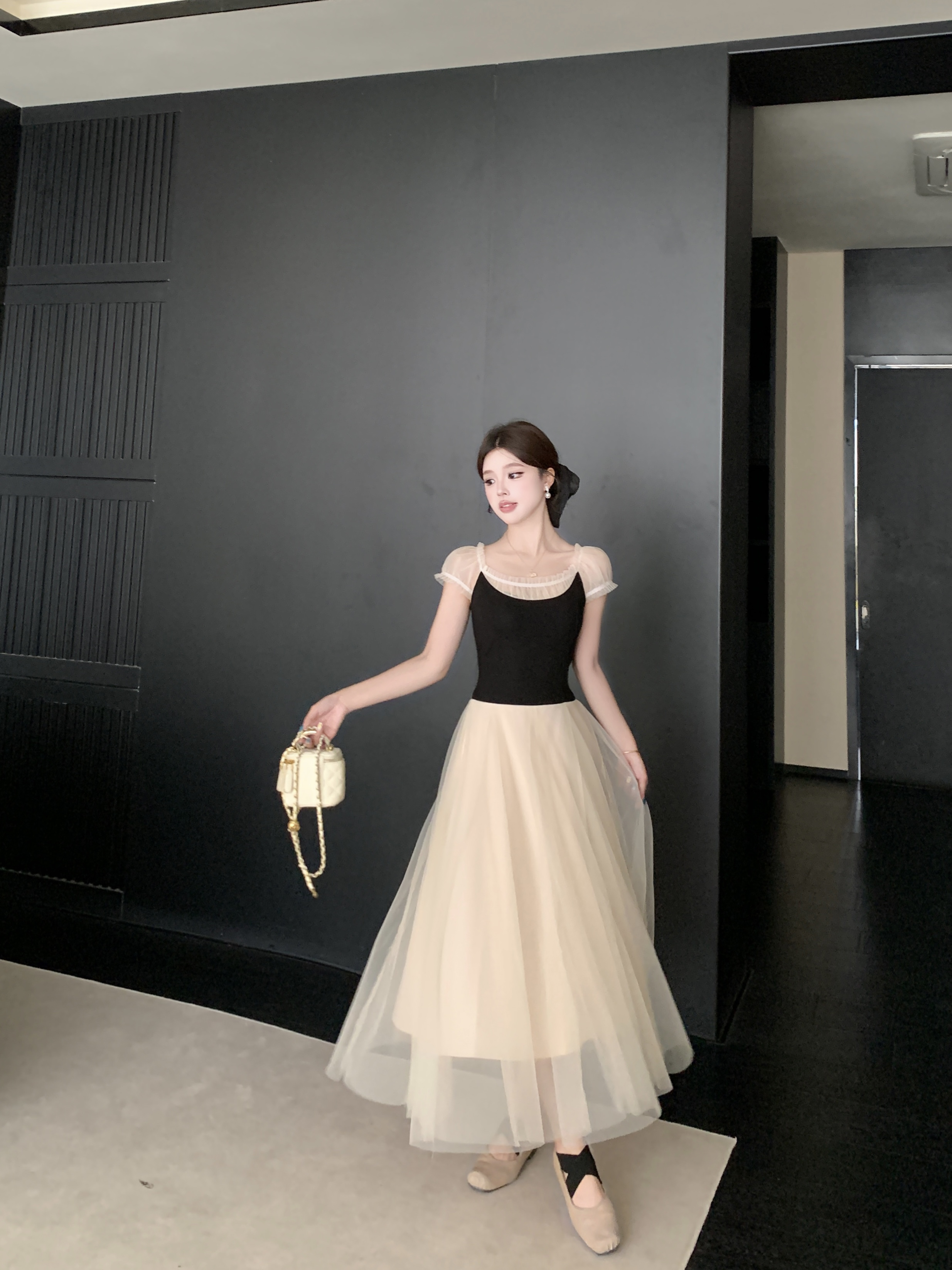 빅 사이즈 2026 백조의 호수 발레 바람 부드러운 바람 프랑스식 품격 요정 치마 패치워크 망사 드레스 롱 스커트 여성