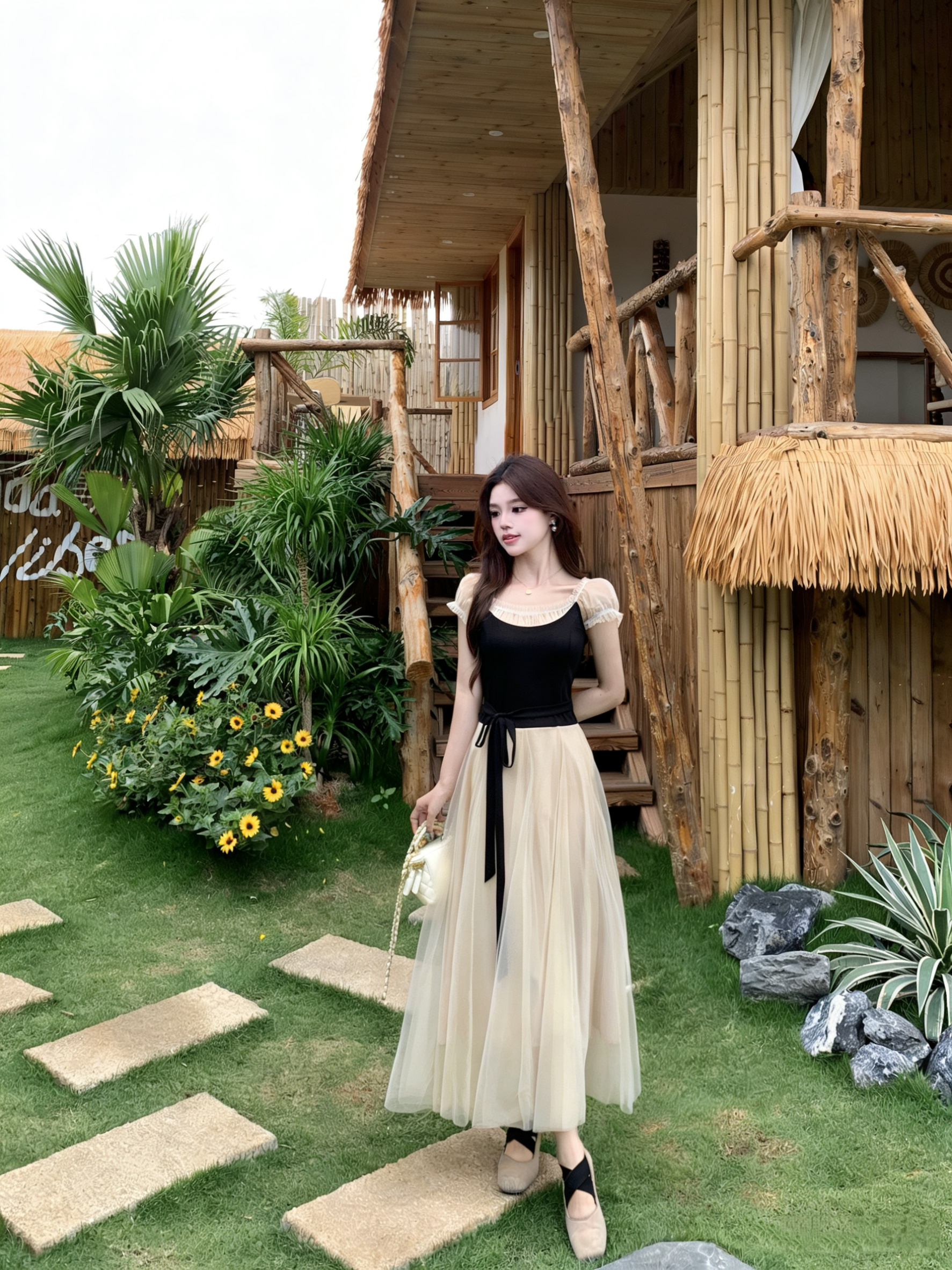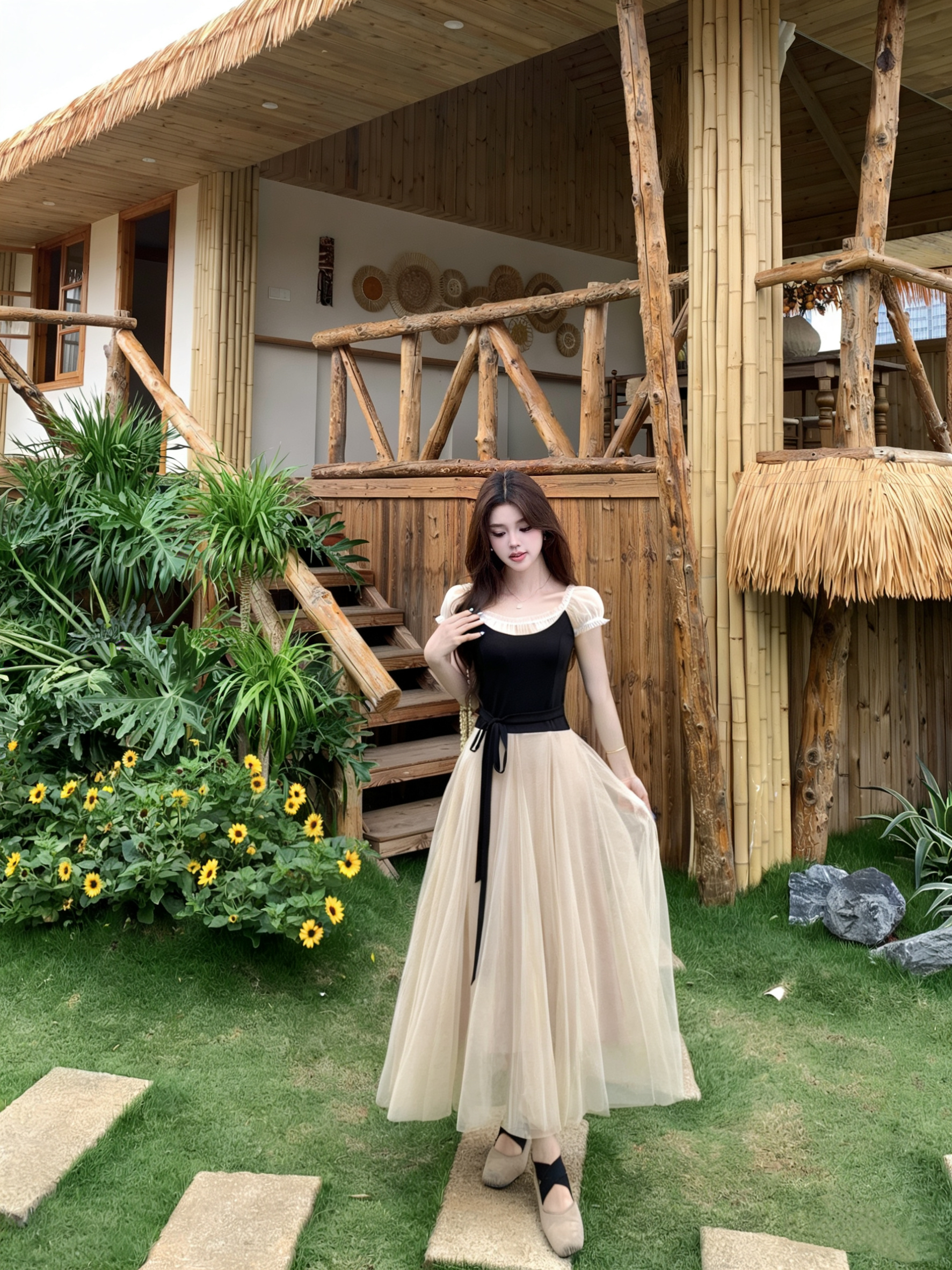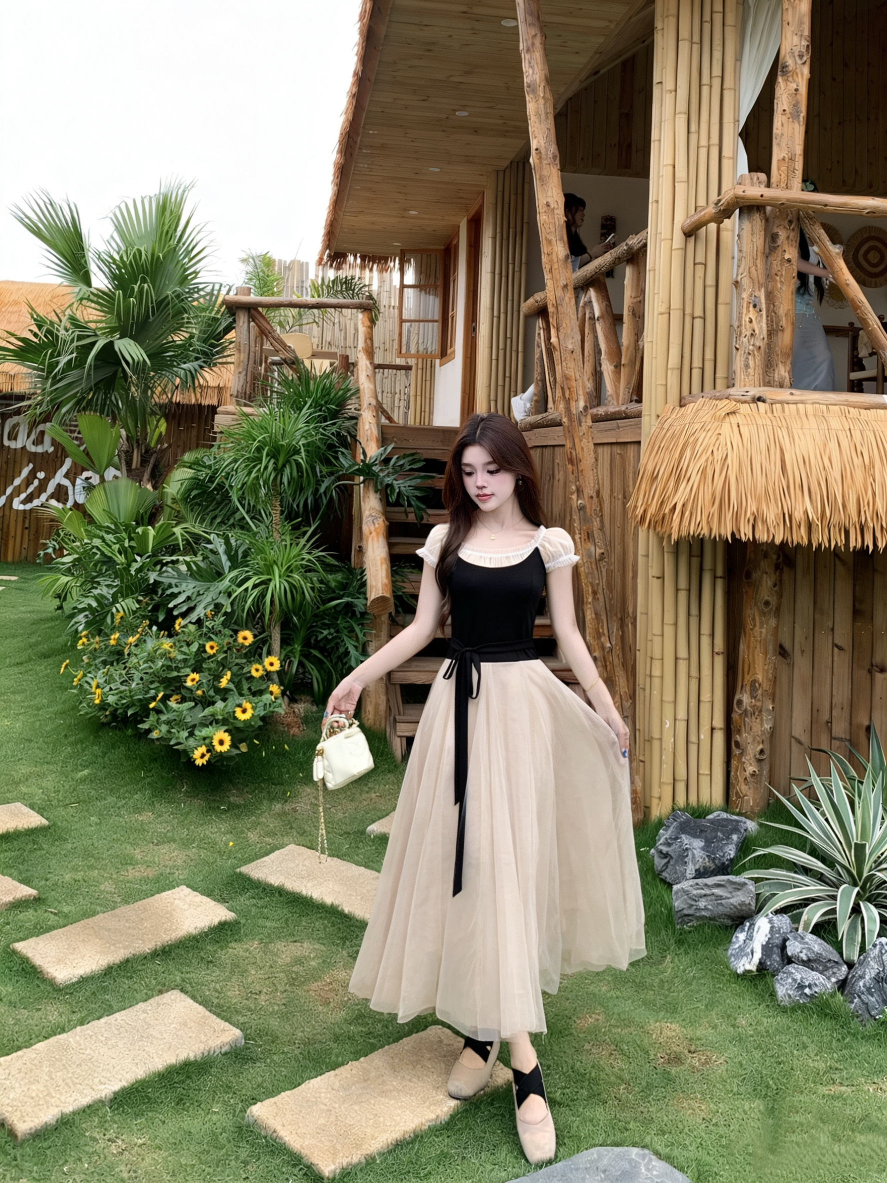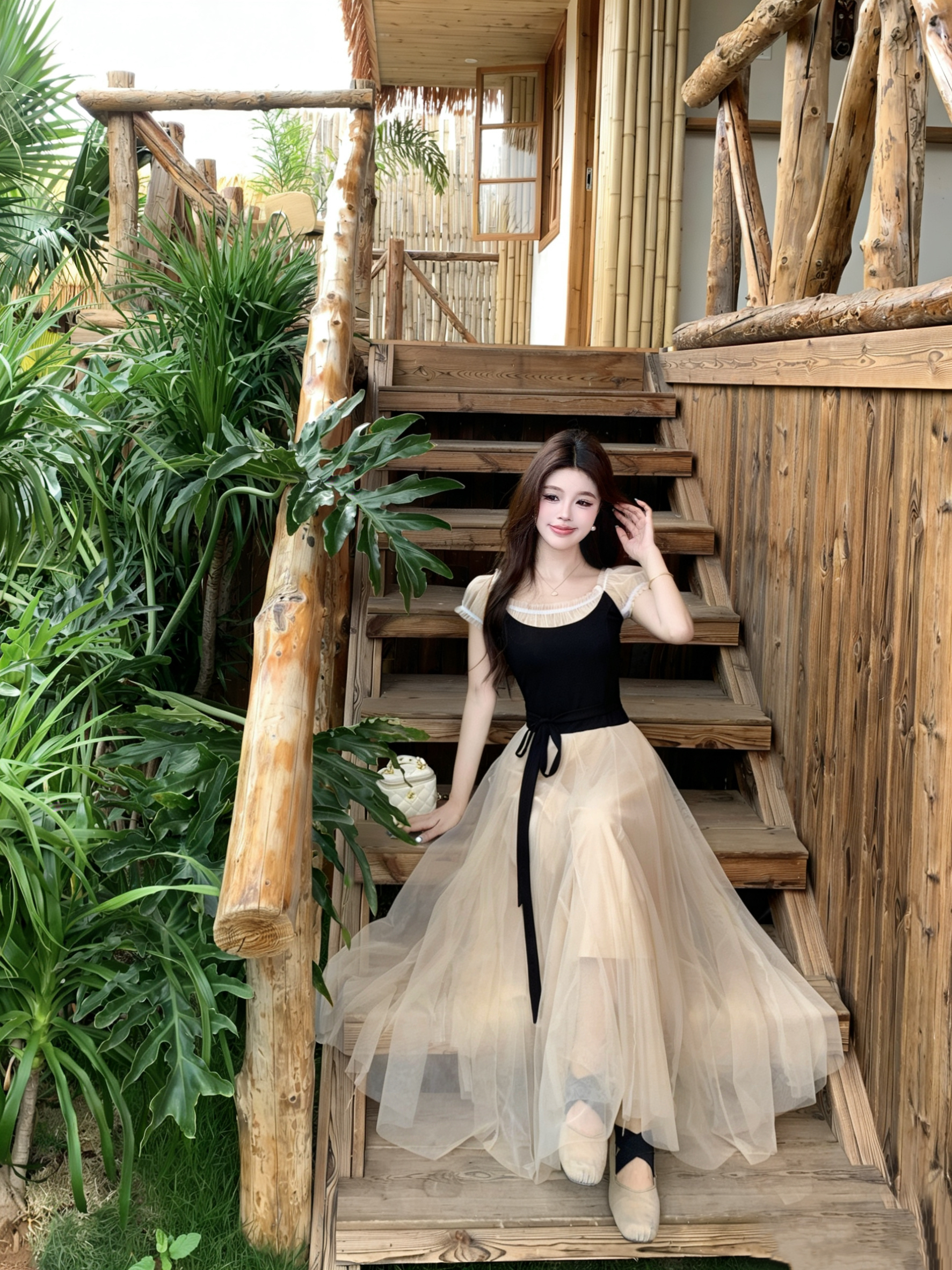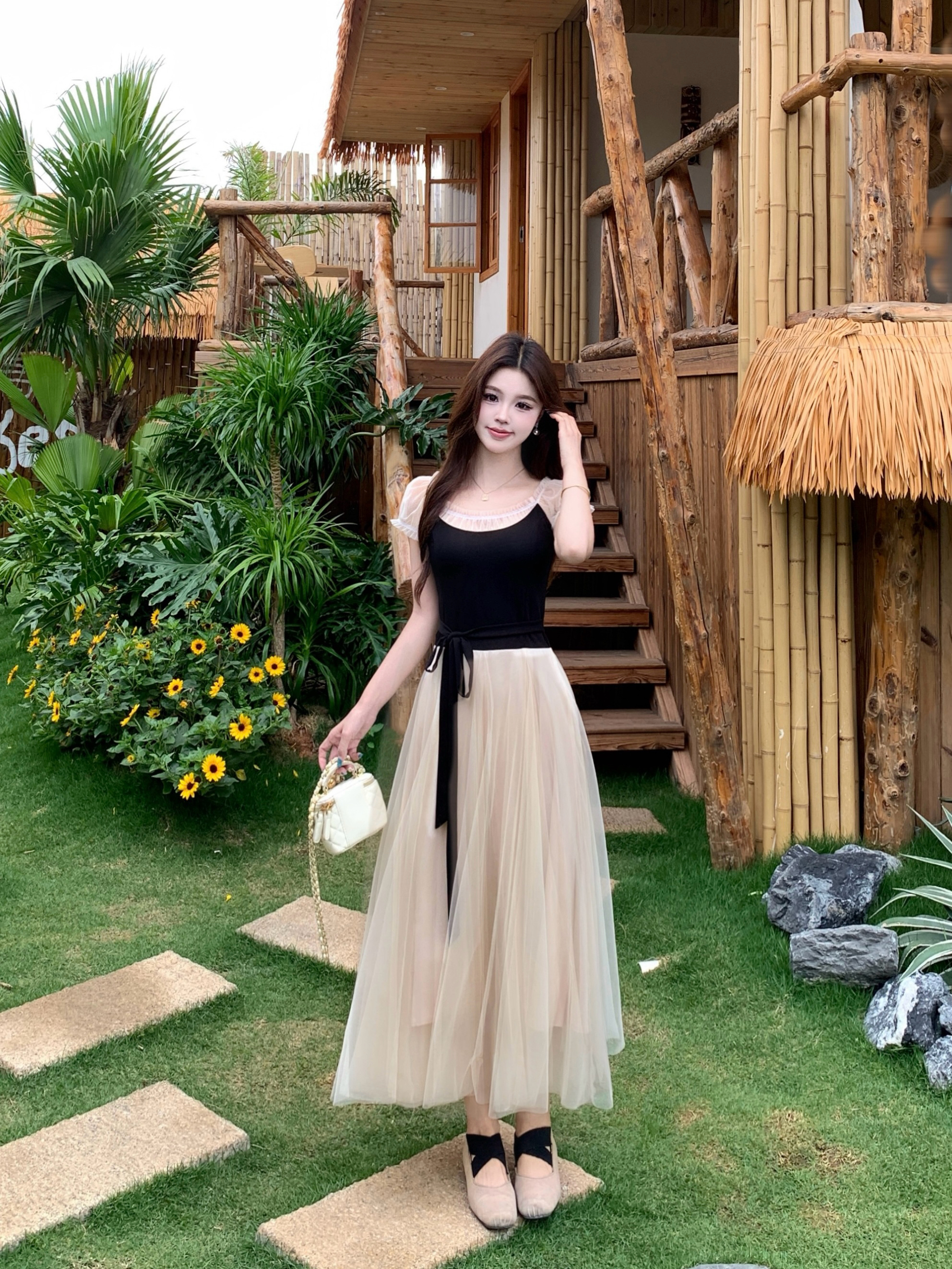 빅 사이즈 2026 백조의 호수 발레 바람 부드러운 바람 프랑스식 품격 요정 치마 패치워크 망사 드레스 롱 스커트 여성