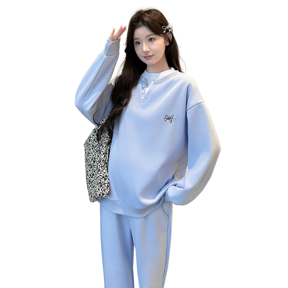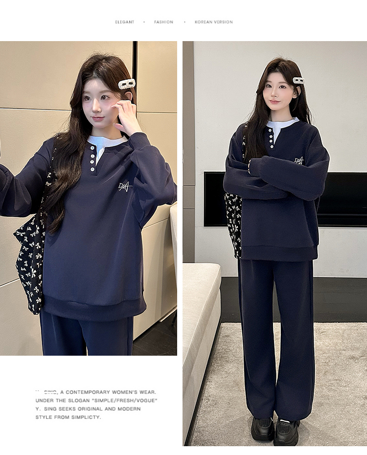 실사 새로운 2026 한 부서 패션 긴팔 시작 후드티 여성 루즈핏 다용도 자수 캐주얼 투피스 세트 세트