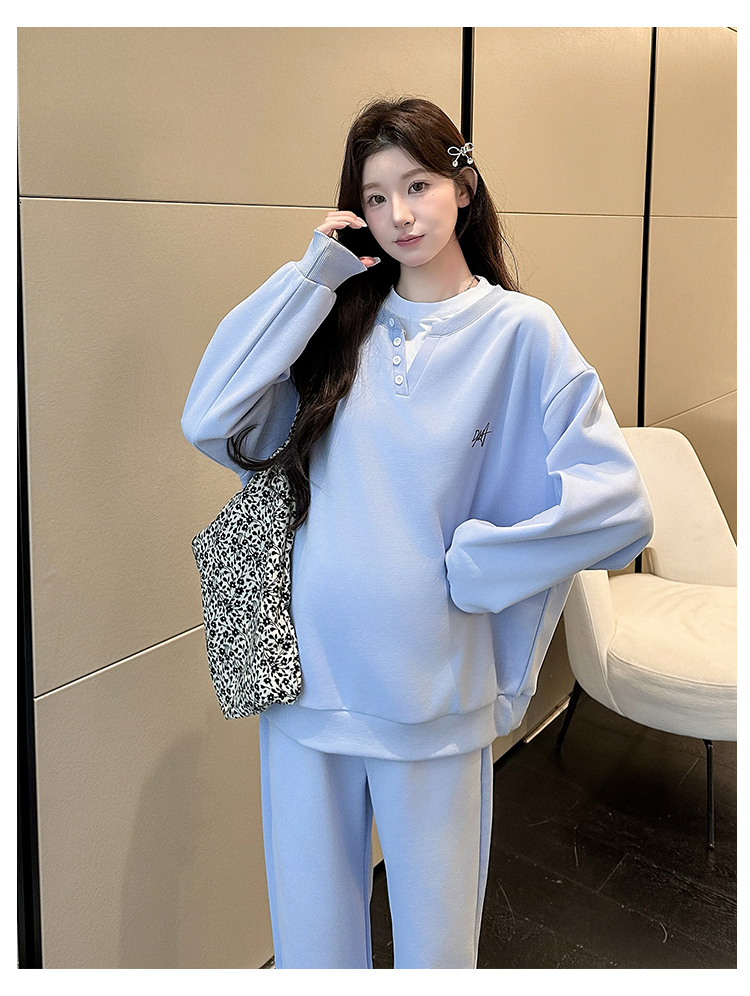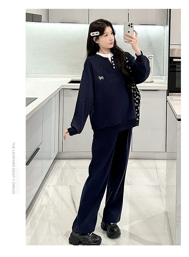 실사 2026 여름 새로운 루즈핏 다용도 임산부 세트 배색 V넥 맨위 복부 지지 반바지 투피스 슈트