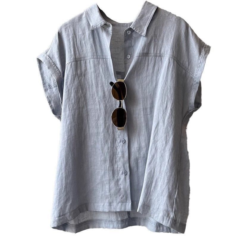 패션 POLO 칼라 반팔 여성 셔츠 2025 여름 새로운 디자인 센스 연령 감소 캐주얼 쇼트 스타일 셔츠 루즈핏 맨위