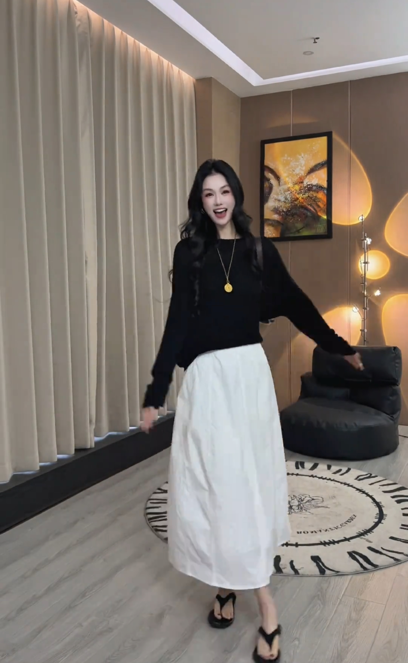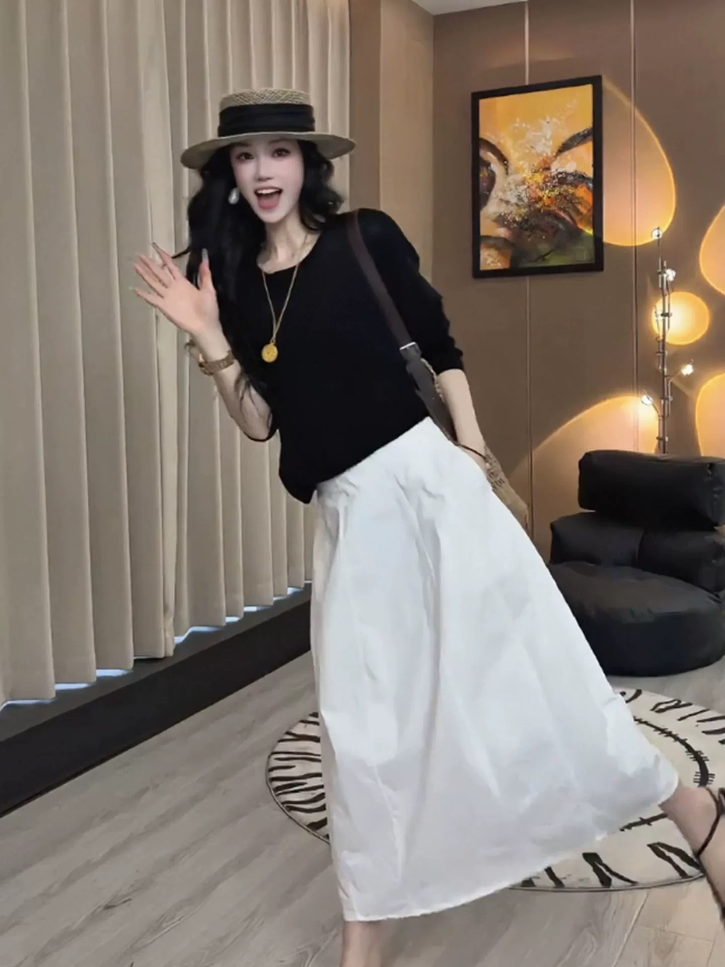 lumien 신제품 얇고 가벼운 쉬폰 주간 실크 불규칙 주름 질감 프로필 모양 슬림해 보이는 반 스커트 맨위
