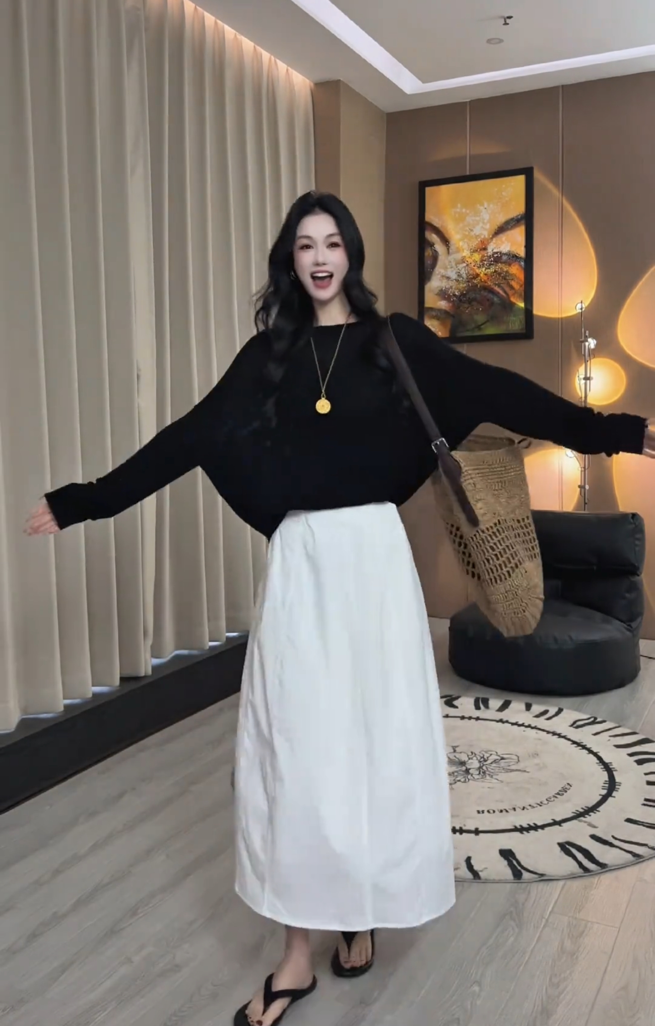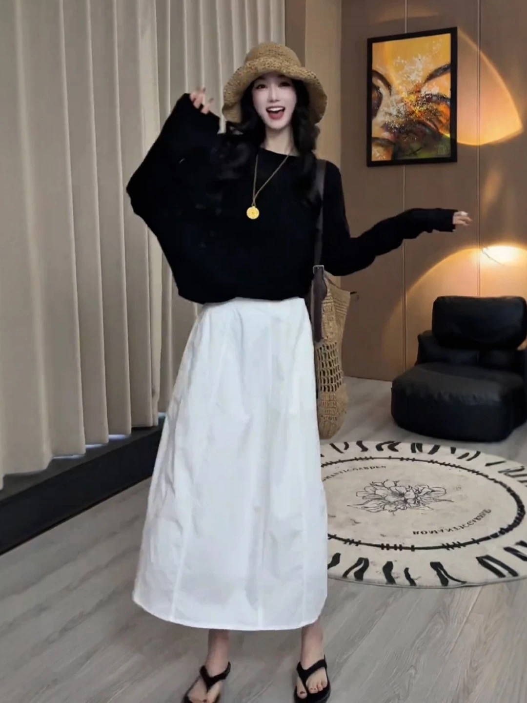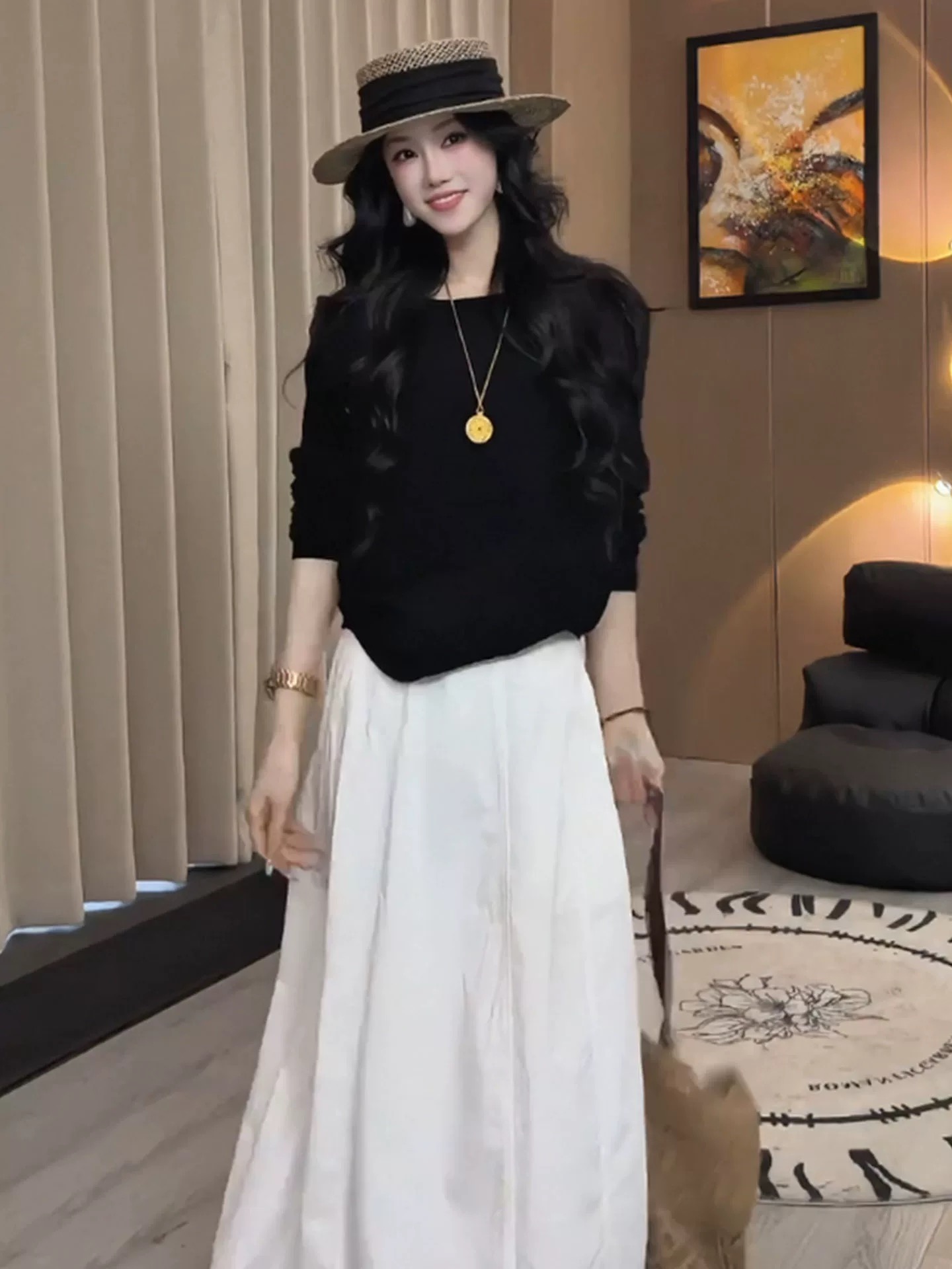 노래 송 봄 여름 새로운 느긋한 슬림해 보이는 느슨함 센스 오픈 가디건 슬립 하이웨이스트 긴 바지 3종 세트 세트