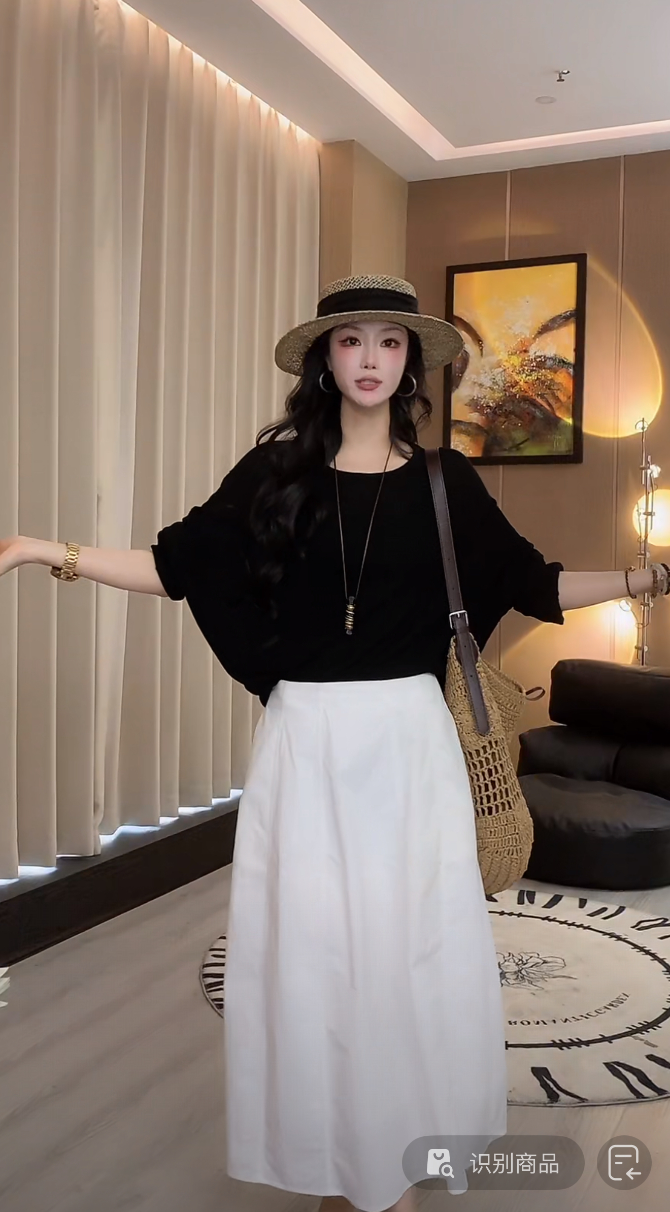 레트로 프린트 하이웨이스트 한 마디 반신 스커트 여름 새로운 고급 센스 자이언트 잘 생긴 슬림해 보이는 품격 길다 치마 세트