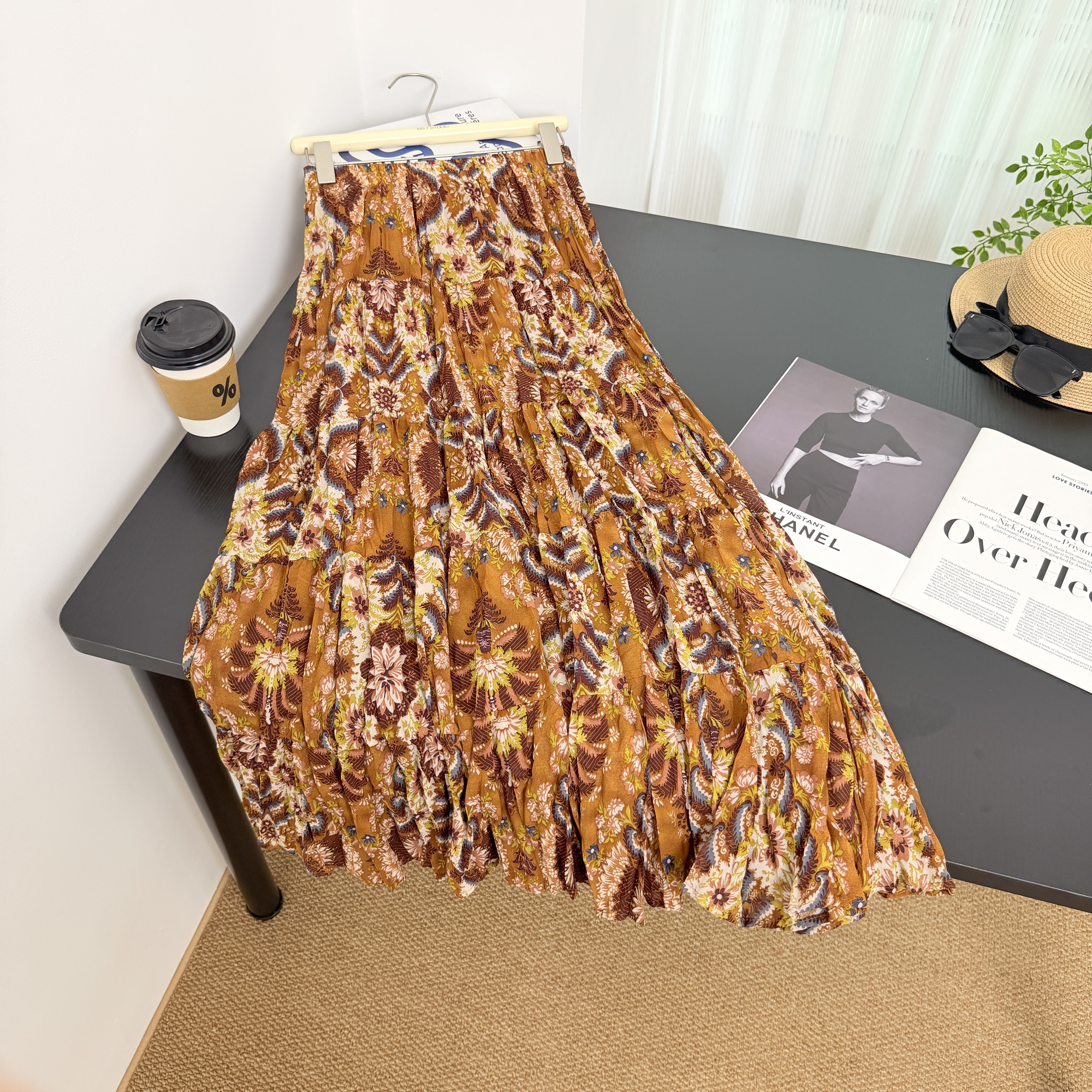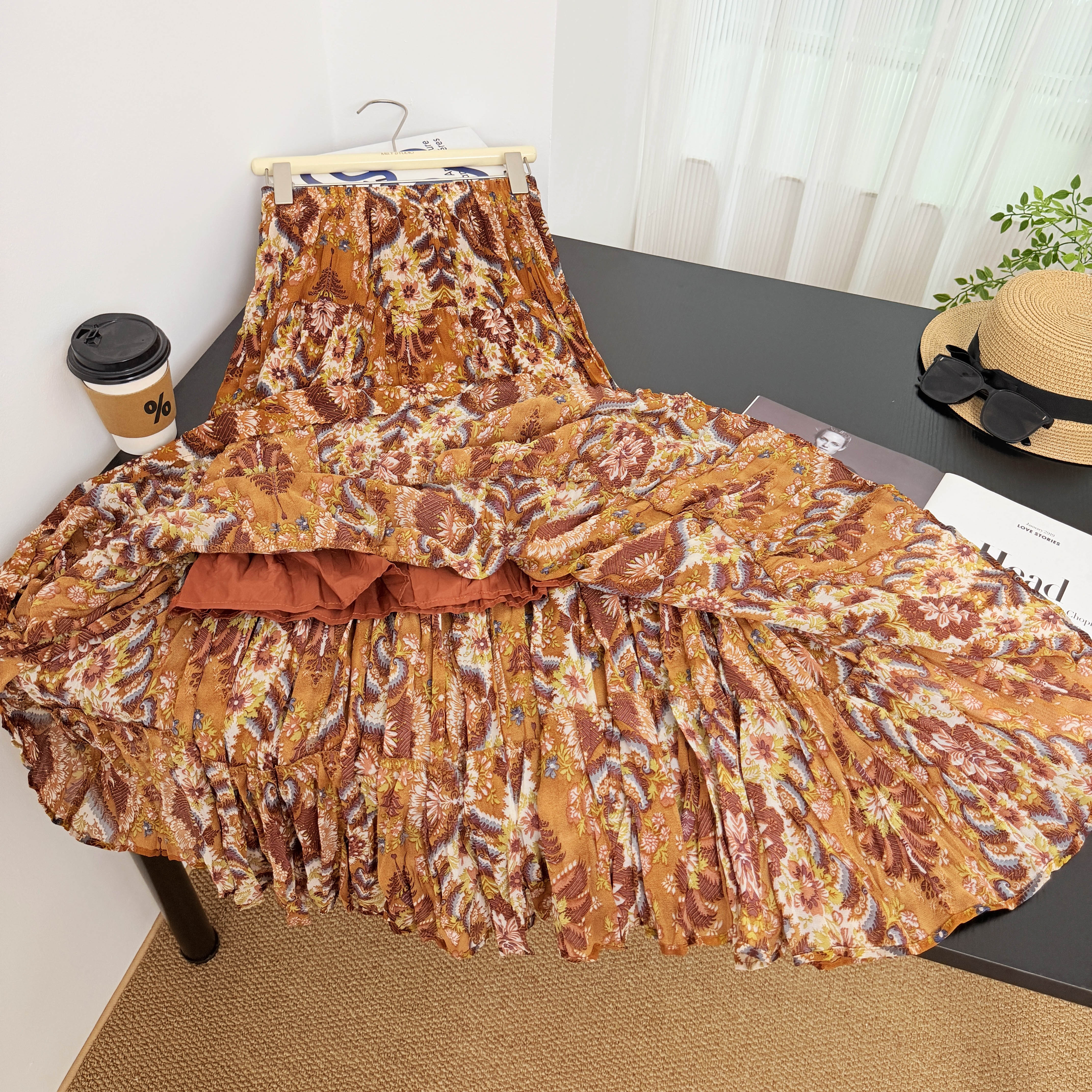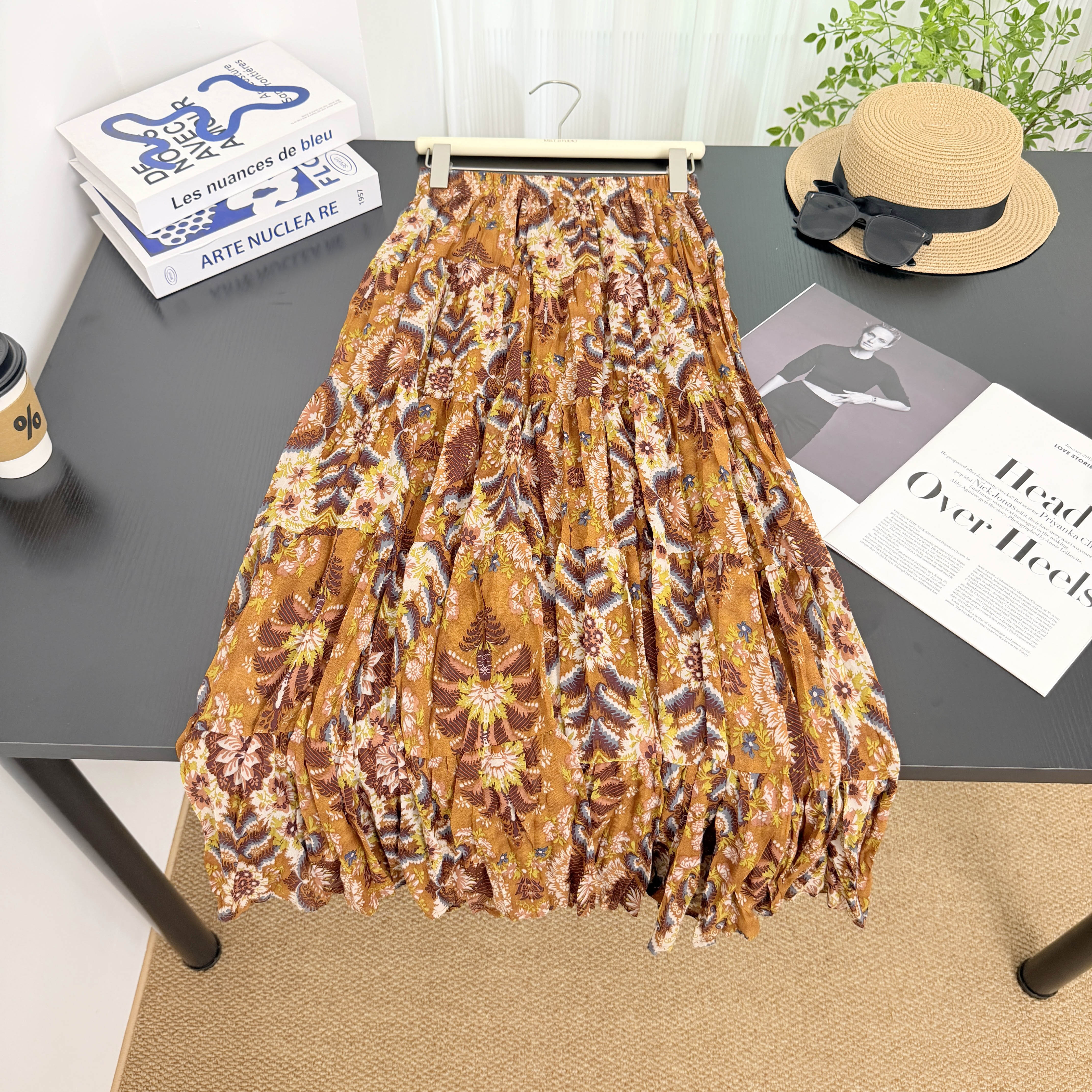 실사 보헤미안 바람 레트로 프린트 A라인 스커트 26 년 여름 새로운 프랑스식 디자인 센스 루즈핏 반신 스커트