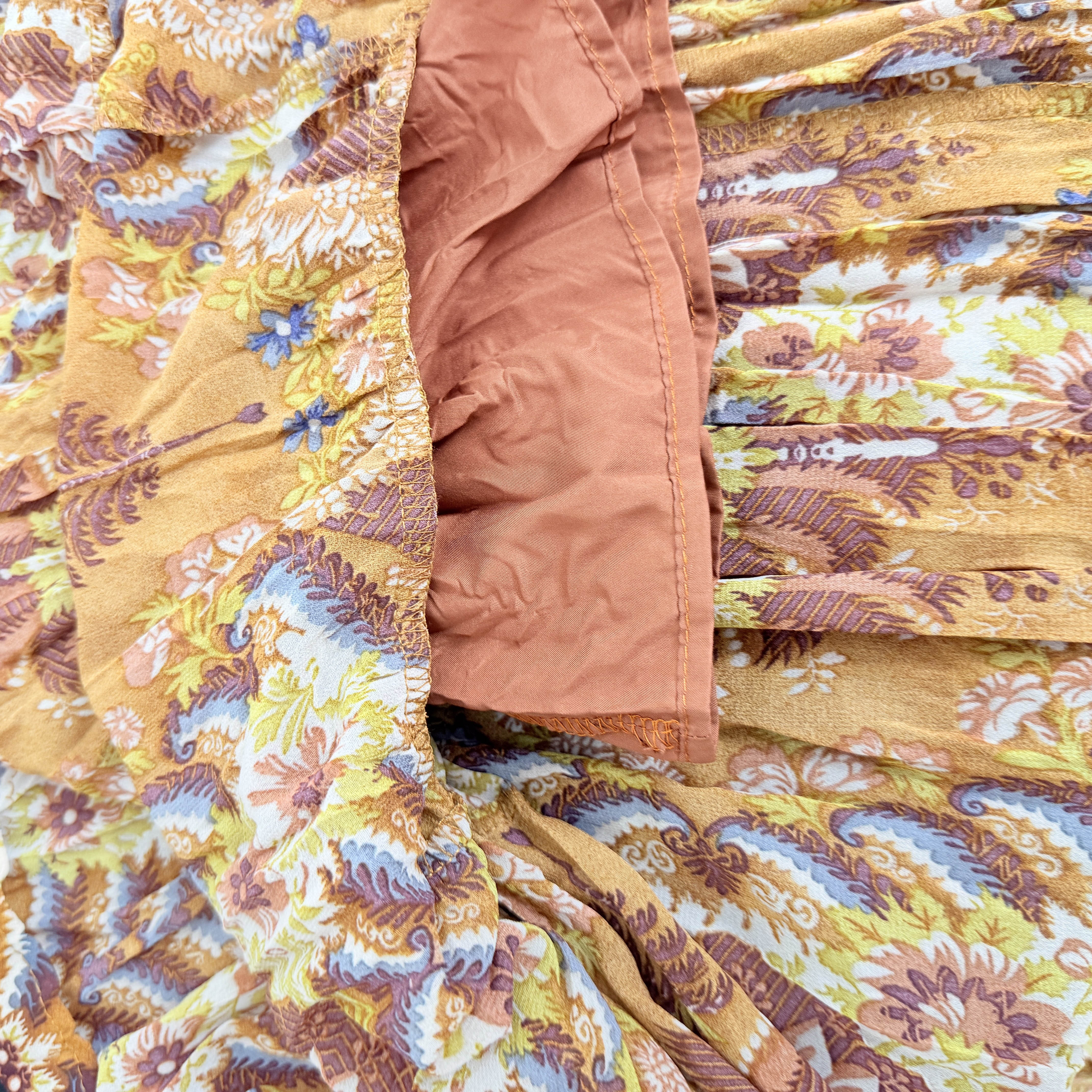 실사 2026 프랑스식 레트로 패치워크 꽃무늬 큰 진자 쉬폰 프린트 주름 하이웨이스트 중간 길이 반신 스커트 롱 스커트
