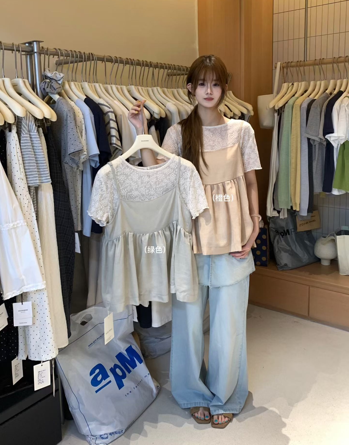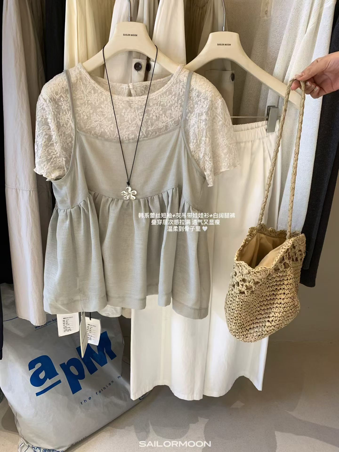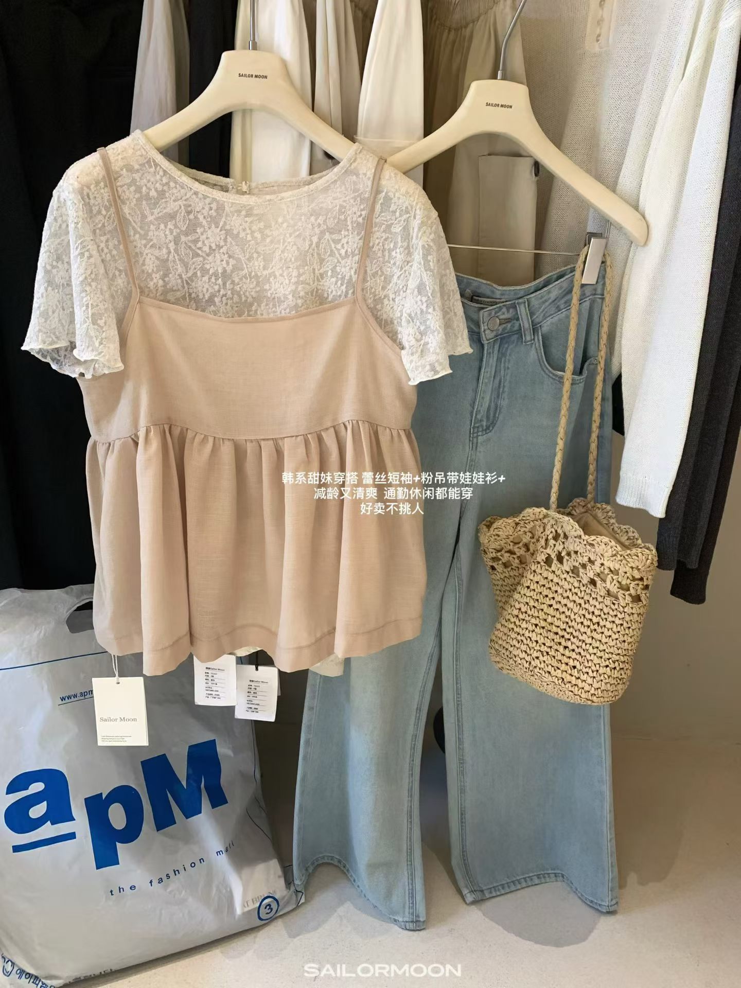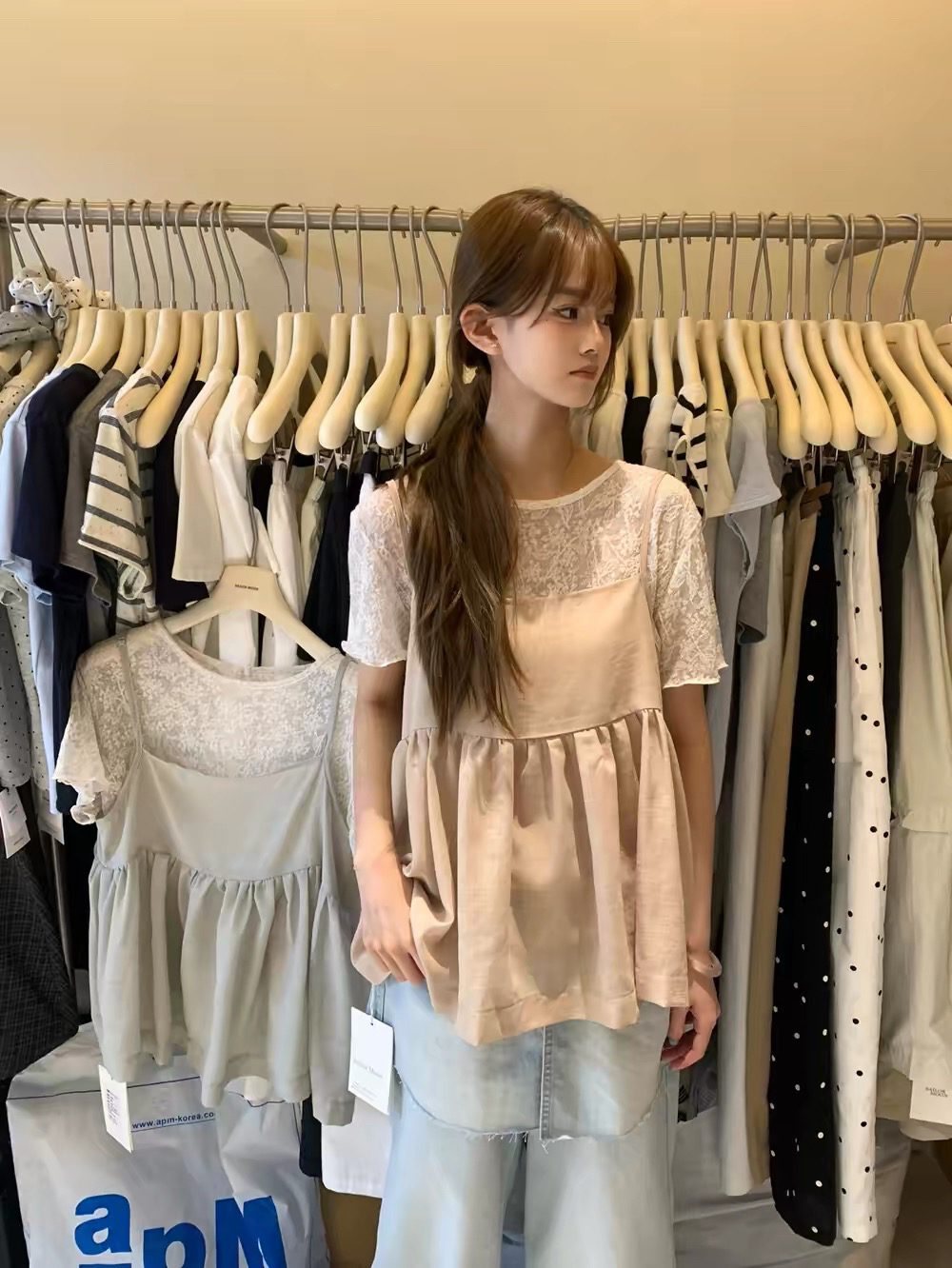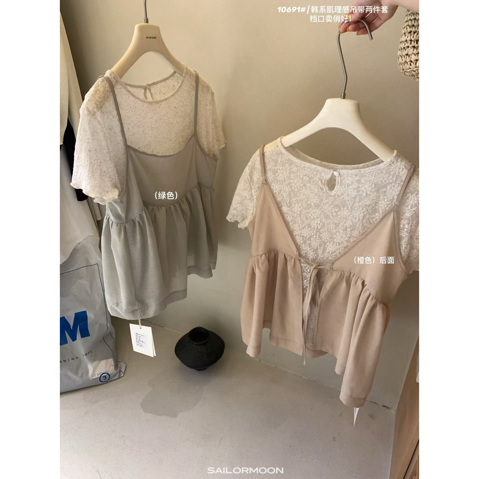 2026 여름 섹션 흔들다 칼라 페이크 레이어드 반팔 티셔츠 여성 순수한 욕망 레이스 조각 페이크 레이어드 작은 셔츠 맨위 여성