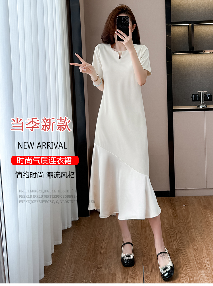실사 2026 여름 새로운 드레스 중간 길이 티셔츠 치마 라운드 넥 반팔 비틀림 품격 빅 사이즈 드레스
