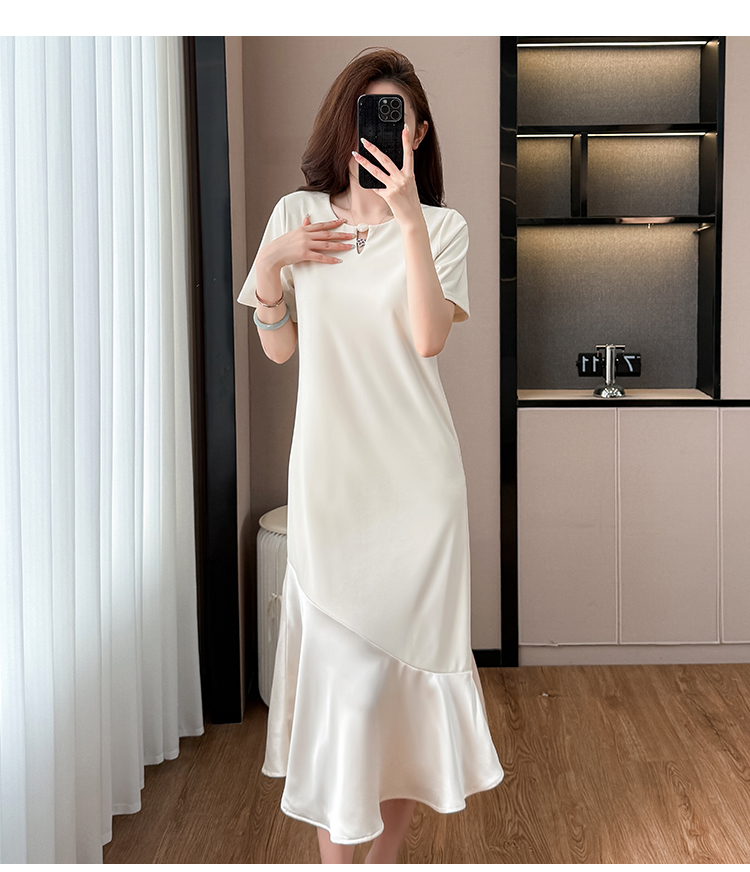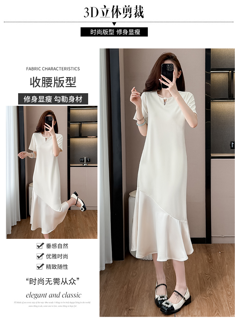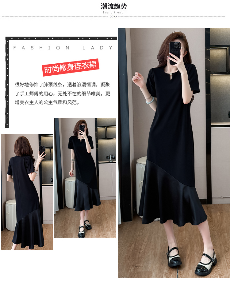 실사 작은 키 구름 실 패치워크 드레스 슬림해 보이는 표지 고기 레이스 커프스 중간 길이 빅 사이즈 티셔츠 치마 여성 여름