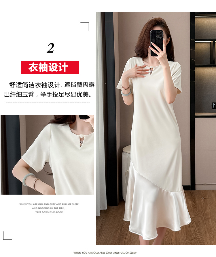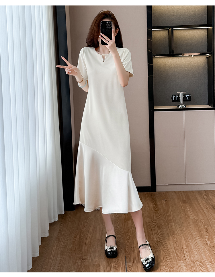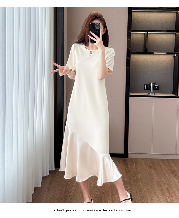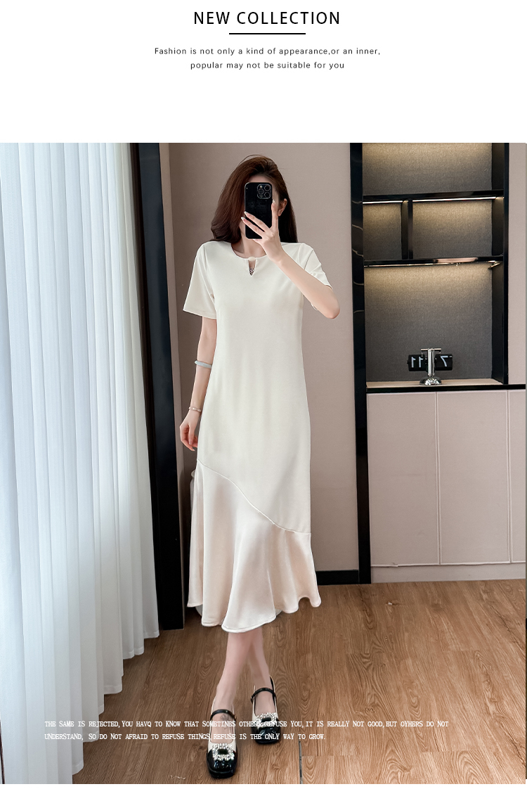 실사 드레스 단추 술 중간 길이 주름 장식 표지 고기 슬림해 보이는 트임 디자인 센스 빅 사이즈 티셔츠 치마