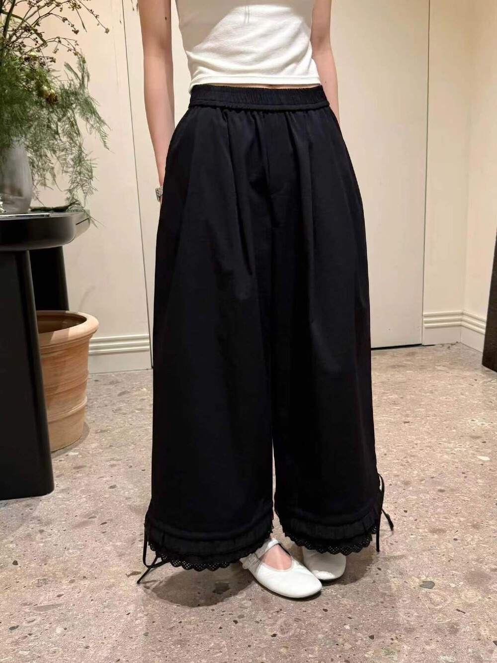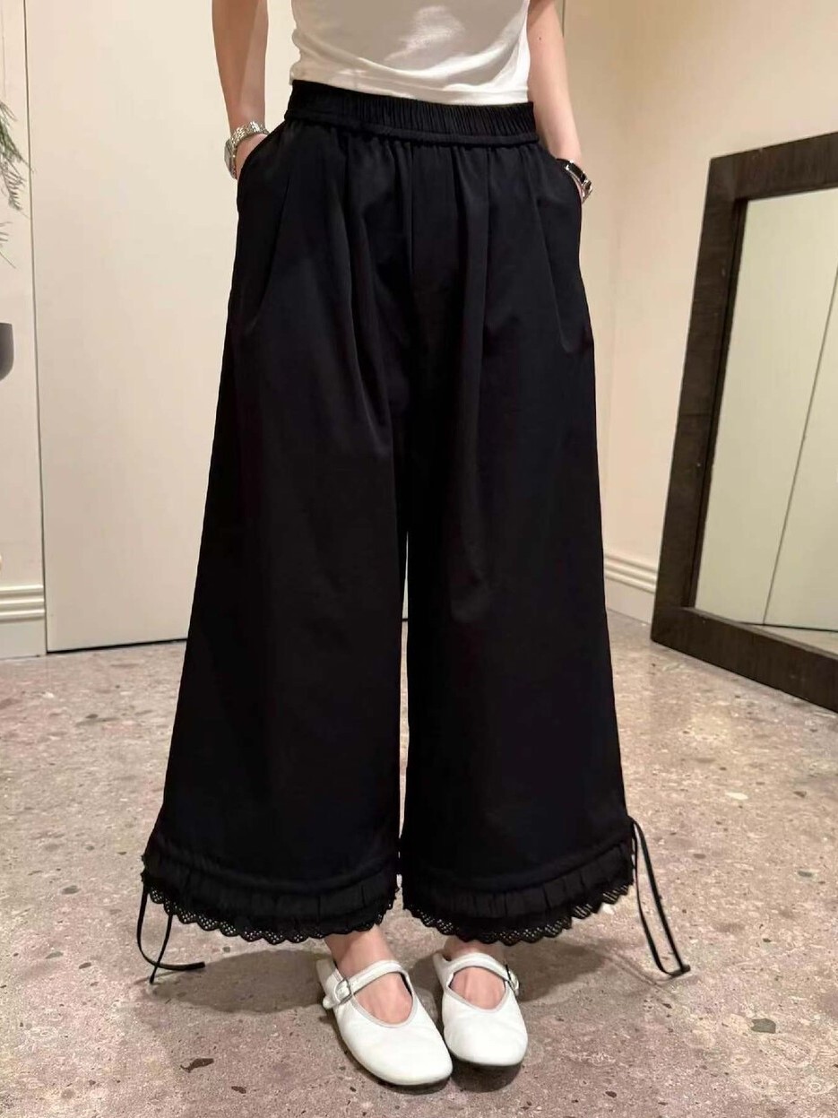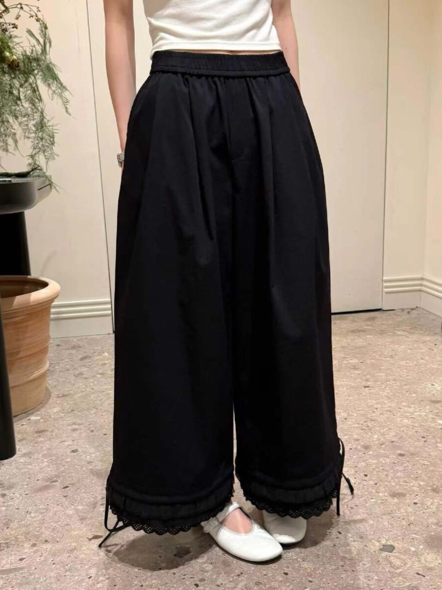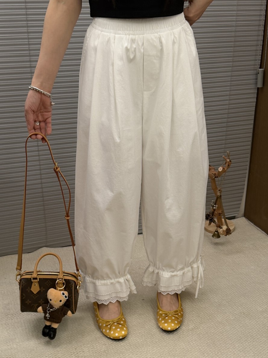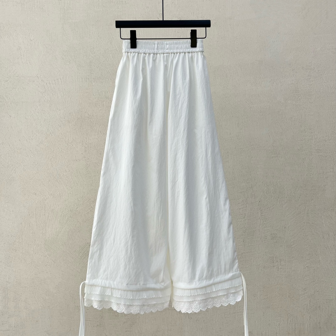 한 부서 미니멀리즘 고급 센스 레이스 레이스 랜턴 와이드 레깅스 바지 새로운 자외선 차단 캐주얼 바지