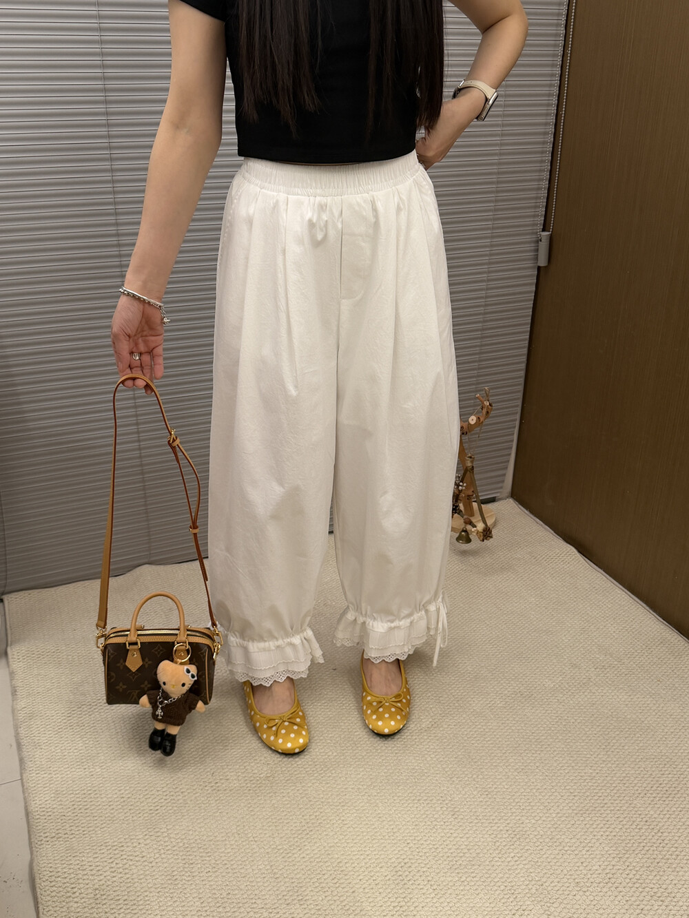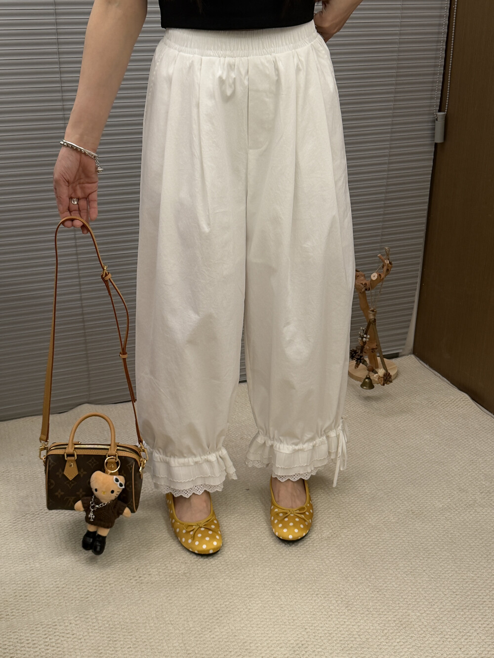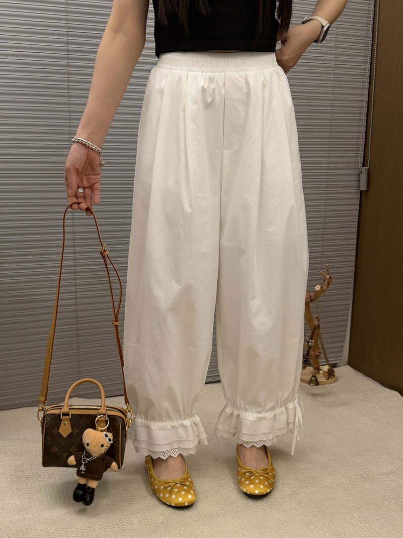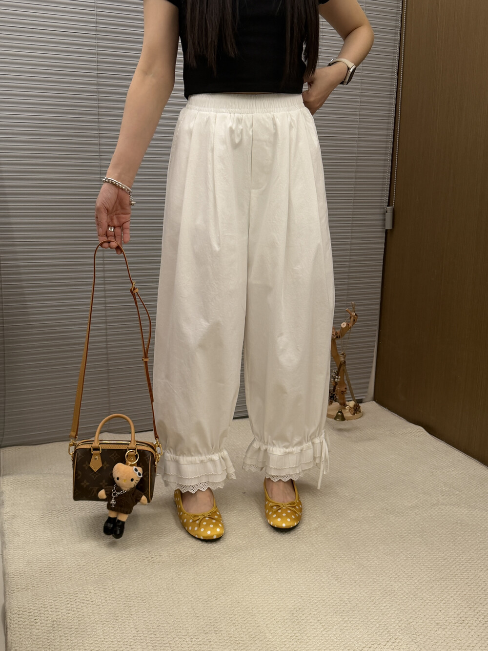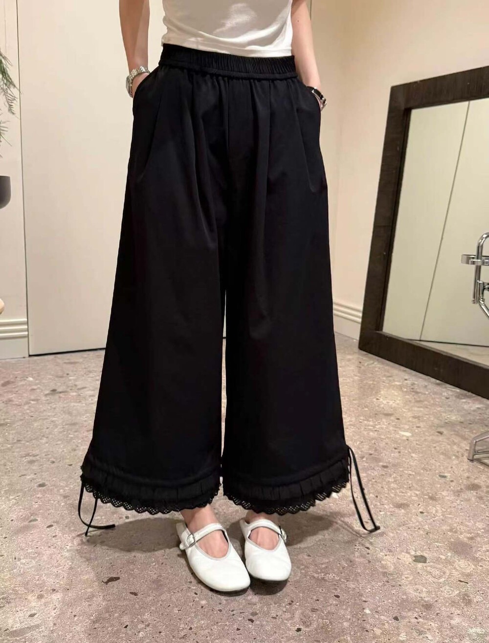 한 부서 미니멀리즘 고급 센스 레이스 레이스 랜턴 와이드 레깅스 바지 새로운 자외선 차단 캐주얼 바지